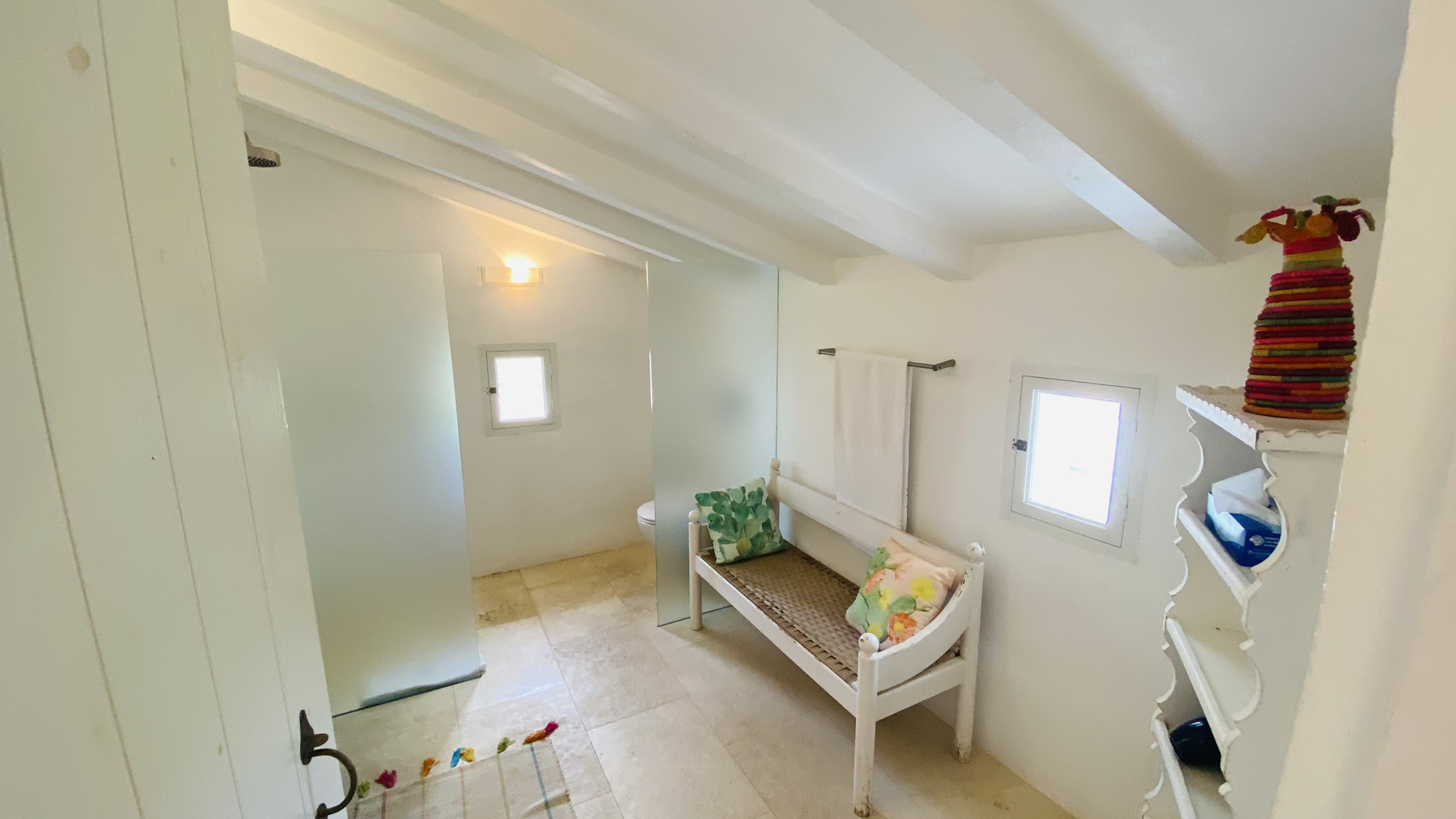 Erdgeschoss: Eingangshalle (Veranda), geräumiges Wohn-/Esszimmer/Küche (durch Bögen getrennt), 1 Eheschlafzimmer mit Klimaanlage und Badezimmer mit Dusche en-suite, 1 Doppelzimmer (mit der Veranda verbunden) mit Badezimmer mit Dusche en-suite, 1 Einzelzimmer (mit der Veranda verbunden) mit Toilette en-suite.