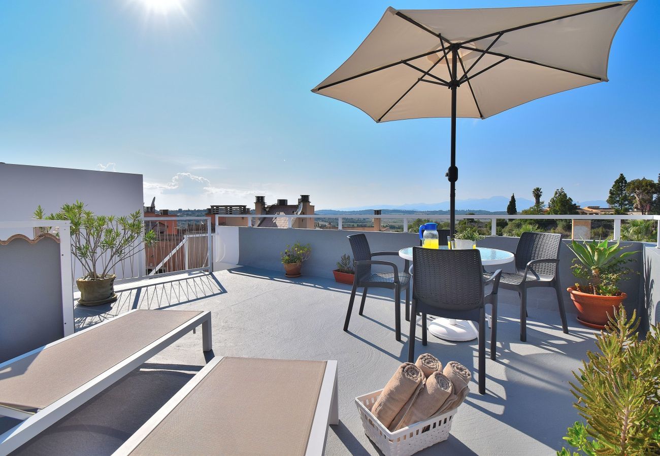 Außerhalb wartet eine 30 m² große Terrasse mit Gartenmöbeln und Grill auf Sie. Ein Parkplatz direkt am Gebäude rundet das Angebot ab. Die Lage ist besonders attraktiv - nur 600 Meter vom Strand von Can Picafort entfernt und mit zahlreichen Restaurants, Supermärkten und Cafés in unmittelbarer Nähe.