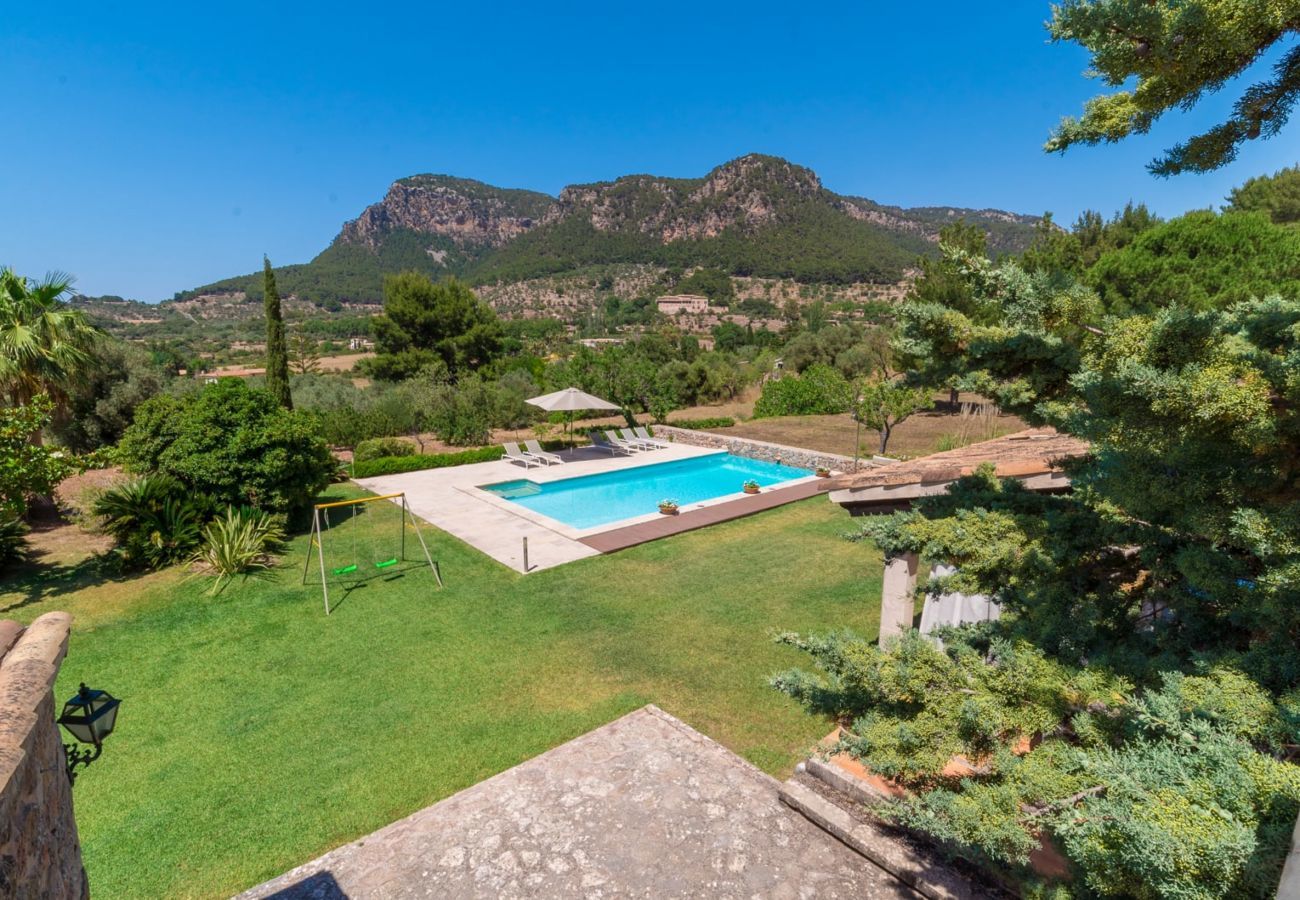 Aber was Son Beltran wirklich auszeichnet, ist sein beeindruckender Außenbereich. Auf einem Grundstück von 15.000 Quadratmetern befinden Sie sich in einem Oase der Ruhe und natürlichen Schönheit. Der große Pool mit 55 Quadratmetern, umgeben von einer Natursteinterrasse, bietet einen Panoramablick auf die Berge, während die verschiedenen möblierten Terrassen ideal sind, um fabelhafte Sonnenuntergänge über dem Meer zu genießen. Darüber hinaus verfügt der Garten über Spielbereiche für Kinder, Schaukeln und einen Grillbereich für Ihre Outdoor-Veranstaltungen.
