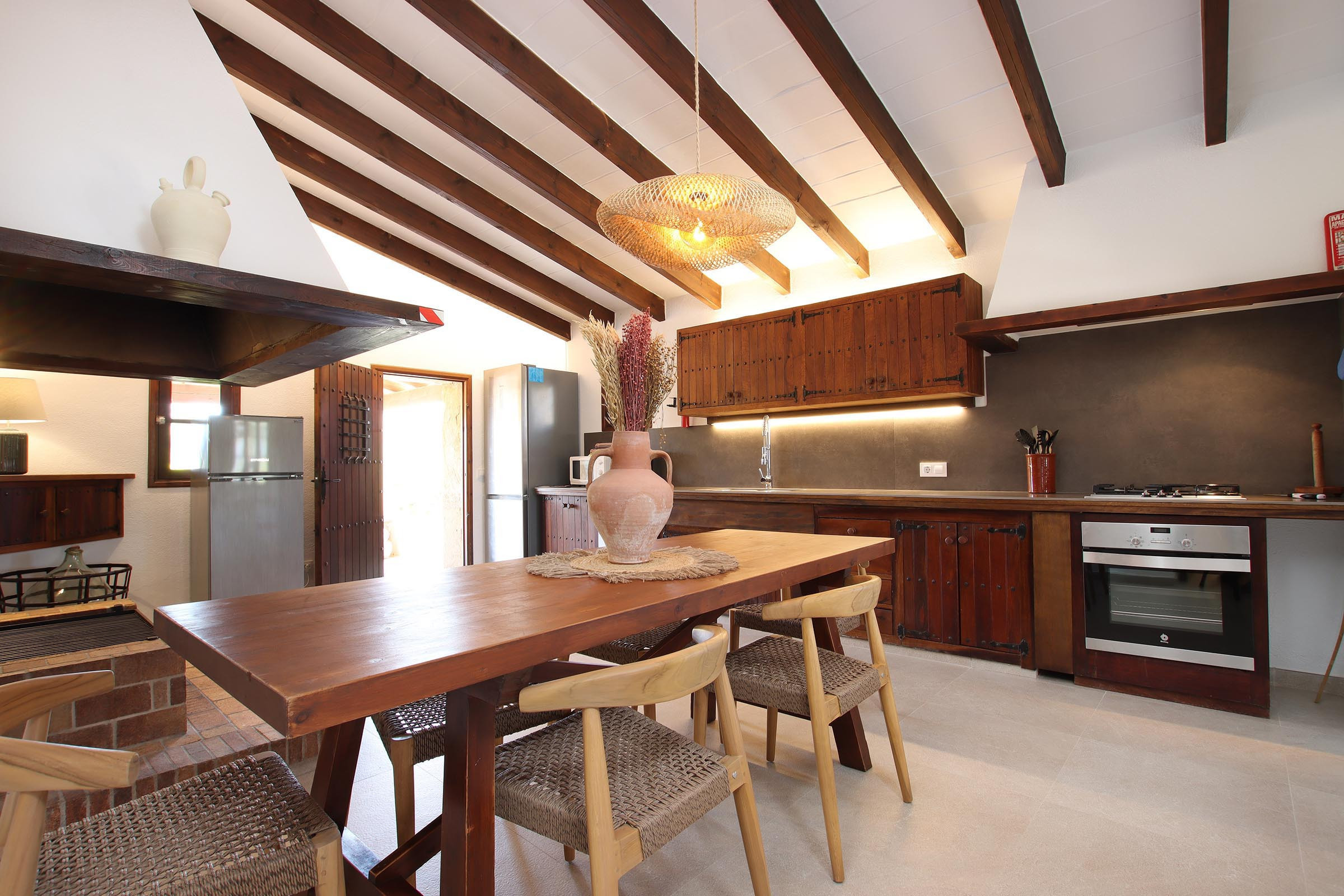 HINWEIS: Im Wohn-/Essbereich befindet sich ein Ofen, der nur dekorativ ist und nicht benutzt werden darf. Das Gleiche gilt für den Kamin in der Küche. Die Grillstelle und der Holzbackofen auf der hinteren Terrasse stehen jedoch den Gästen zur Verfügung.