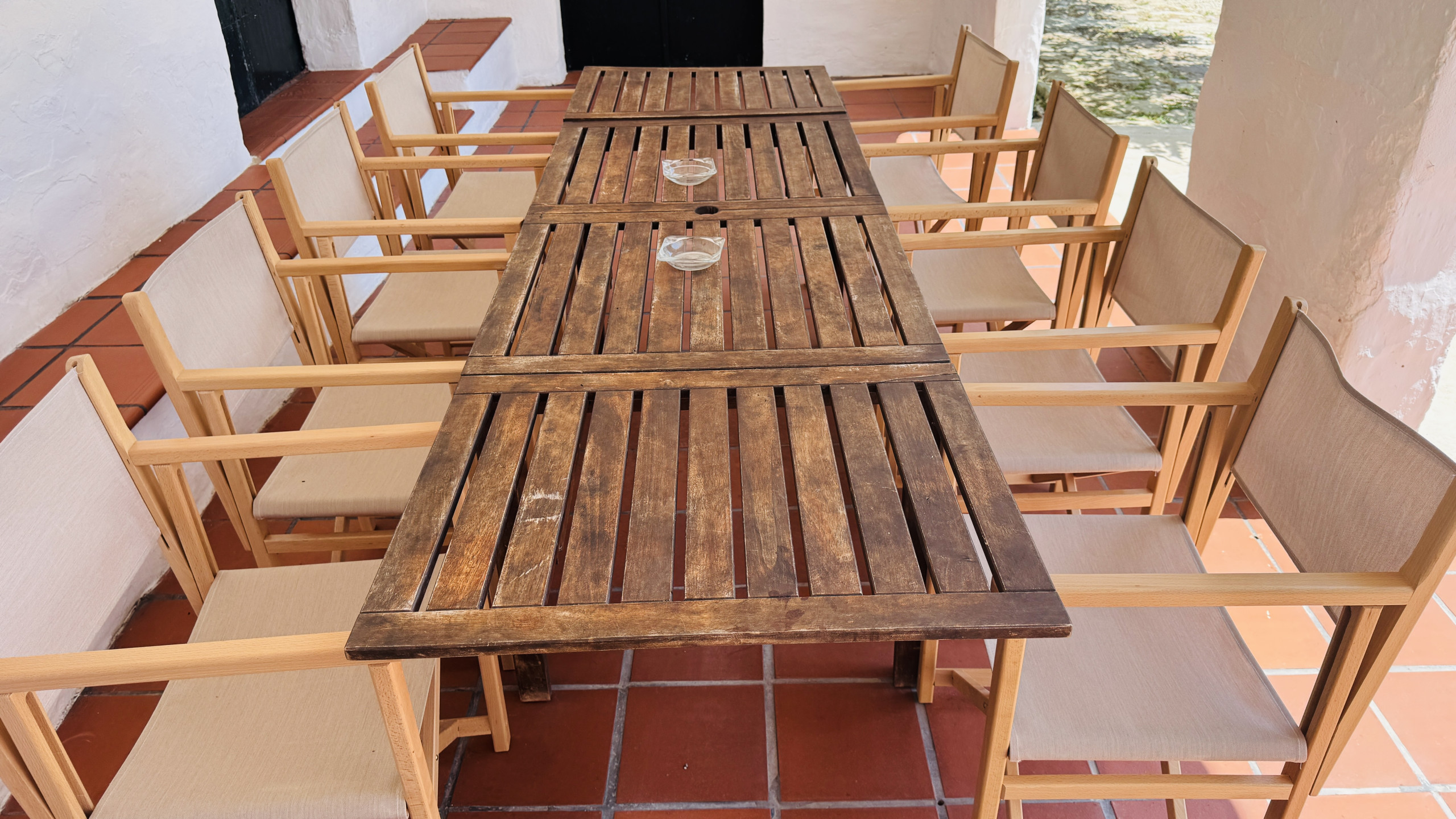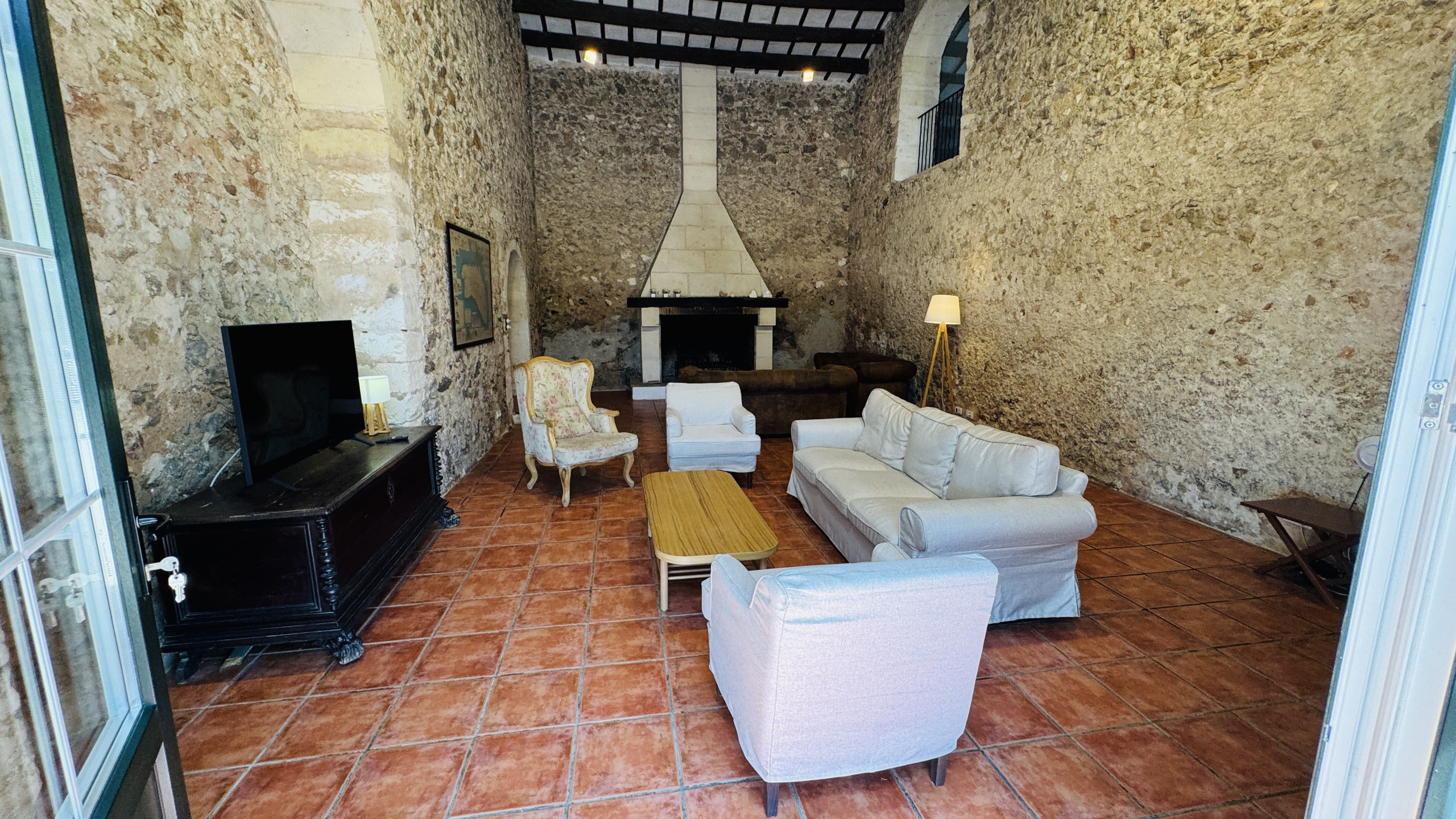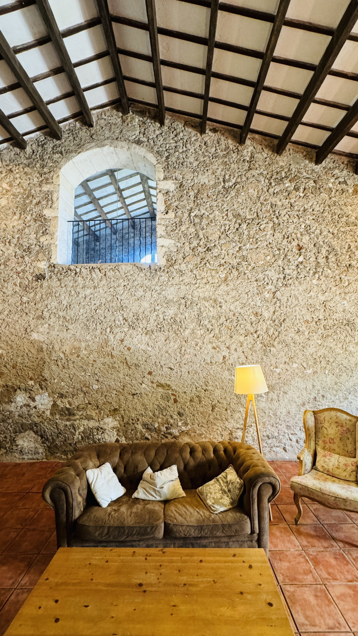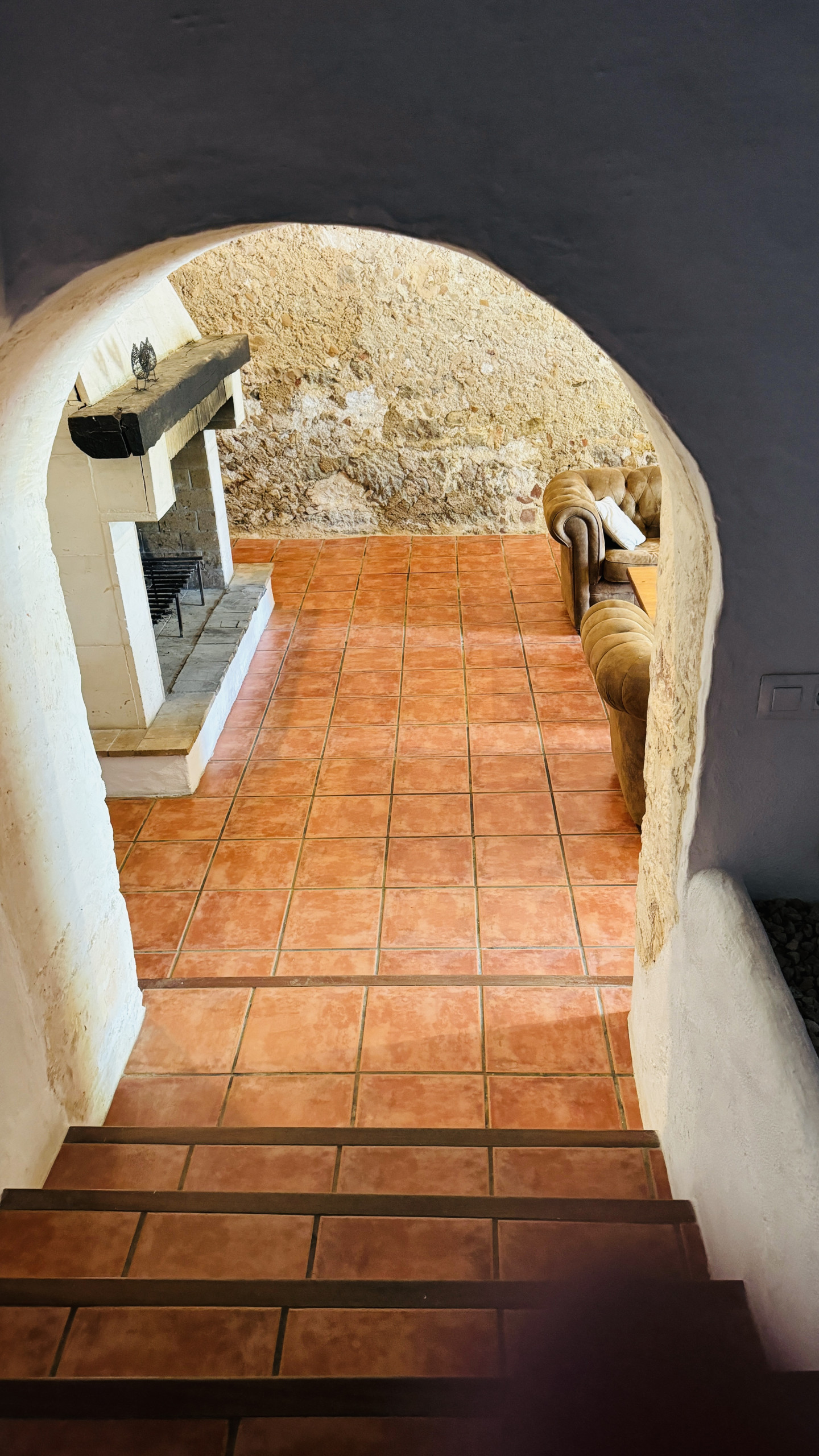 Verteilung: geräumiges Hauptwohnzimmer (mit einer Höhe von 5 m und Steinwänden) mit direktem Zugang nach draußen, großzügiges Esszimmer, große typische menorquinische Küche mit einem "Bauernhoftisch", 2 Doppelzimmer mit Dusche en-suite, 2 Eheschlafzimmer, 1 vollständiges Badezimmer und 1 Badezimmer mit Dusche.