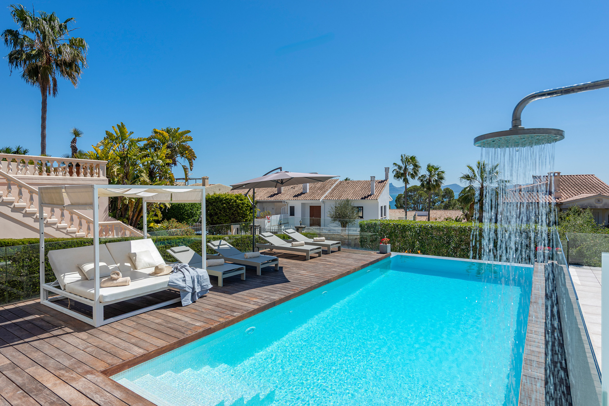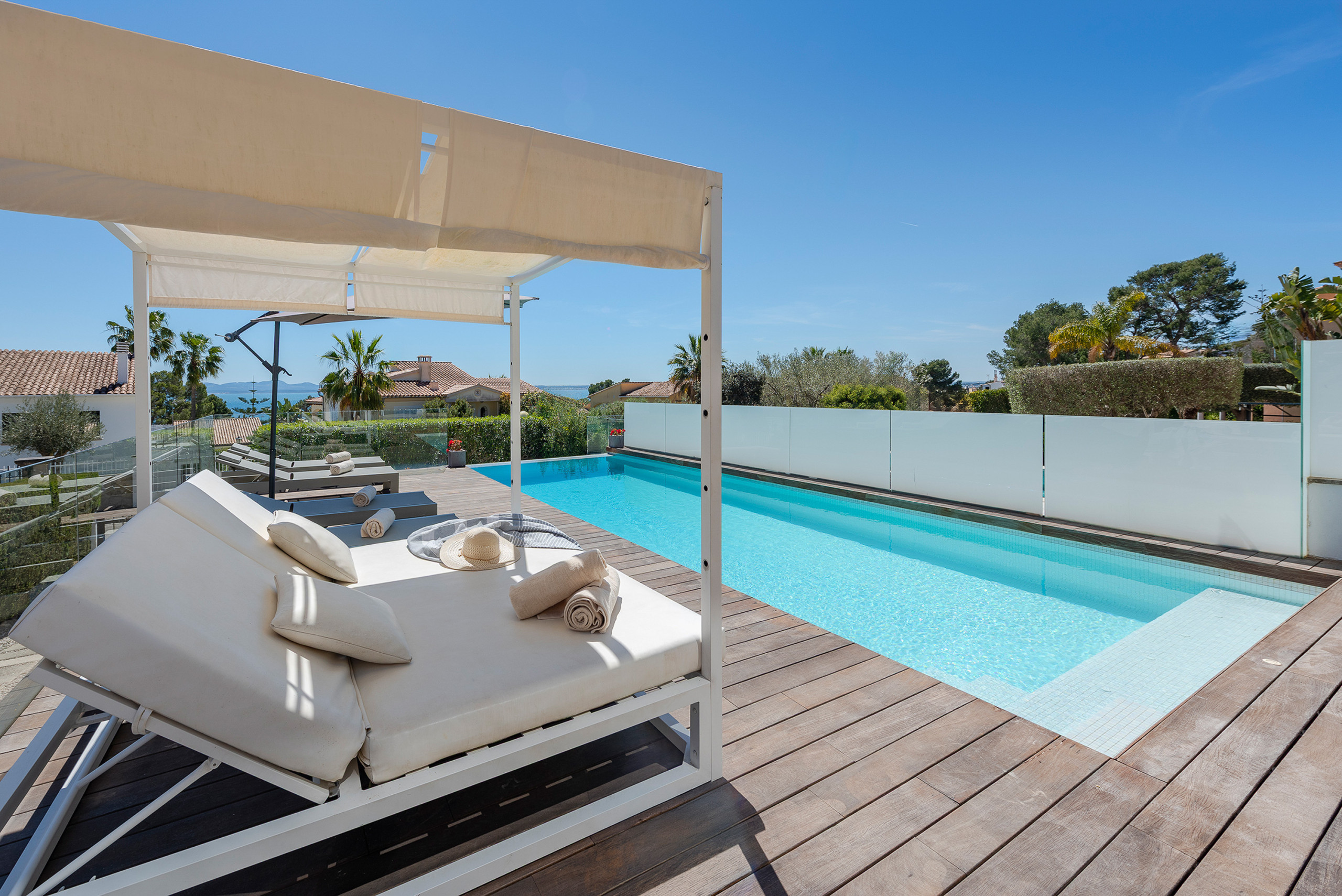 Die Villa liegt in Alcanada, einer ruhigen und beliebten Gegend von Alcudia. Der Strand von Alcanada ist nur 400 Meter entfernt und bekannt für sein klares Wasser. Der Golfplatz Alcanada ist 800 Meter entfernt und zählt zu den besten Golfplätzen der Insel. Der Hafen von Alcudia liegt in 3 km Entfernung und bietet zahlreiche Restaurants, Einkaufsmöglichkeiten und Freizeitangebote. Weitere Strände wie Playa de Muro sind etwa 8 km entfernt. Die Lage eignet sich auch hervorragend für Ausflüge in die Natur oder in die historische Altstadt von Alcudia.