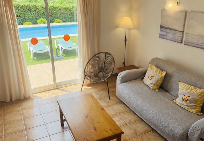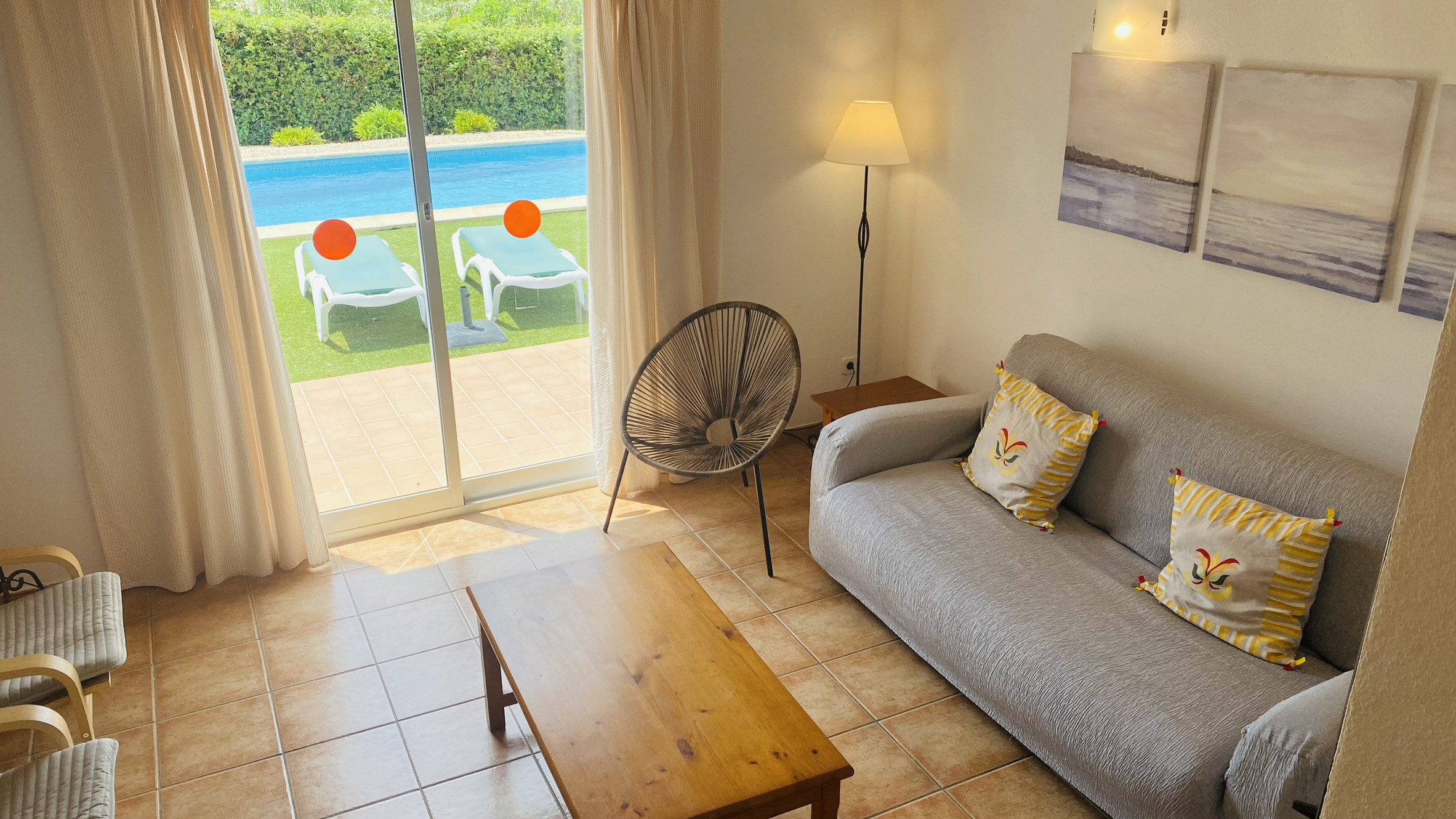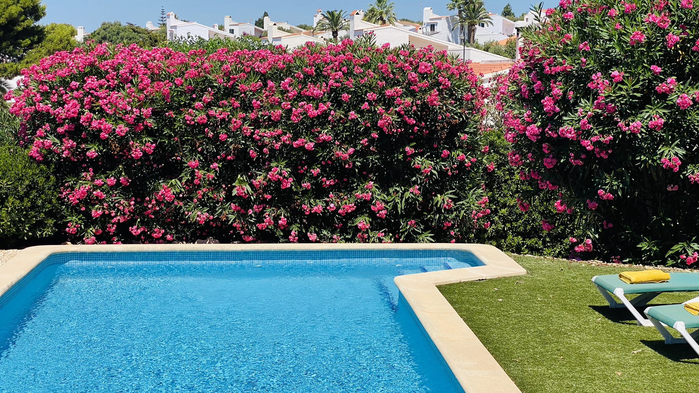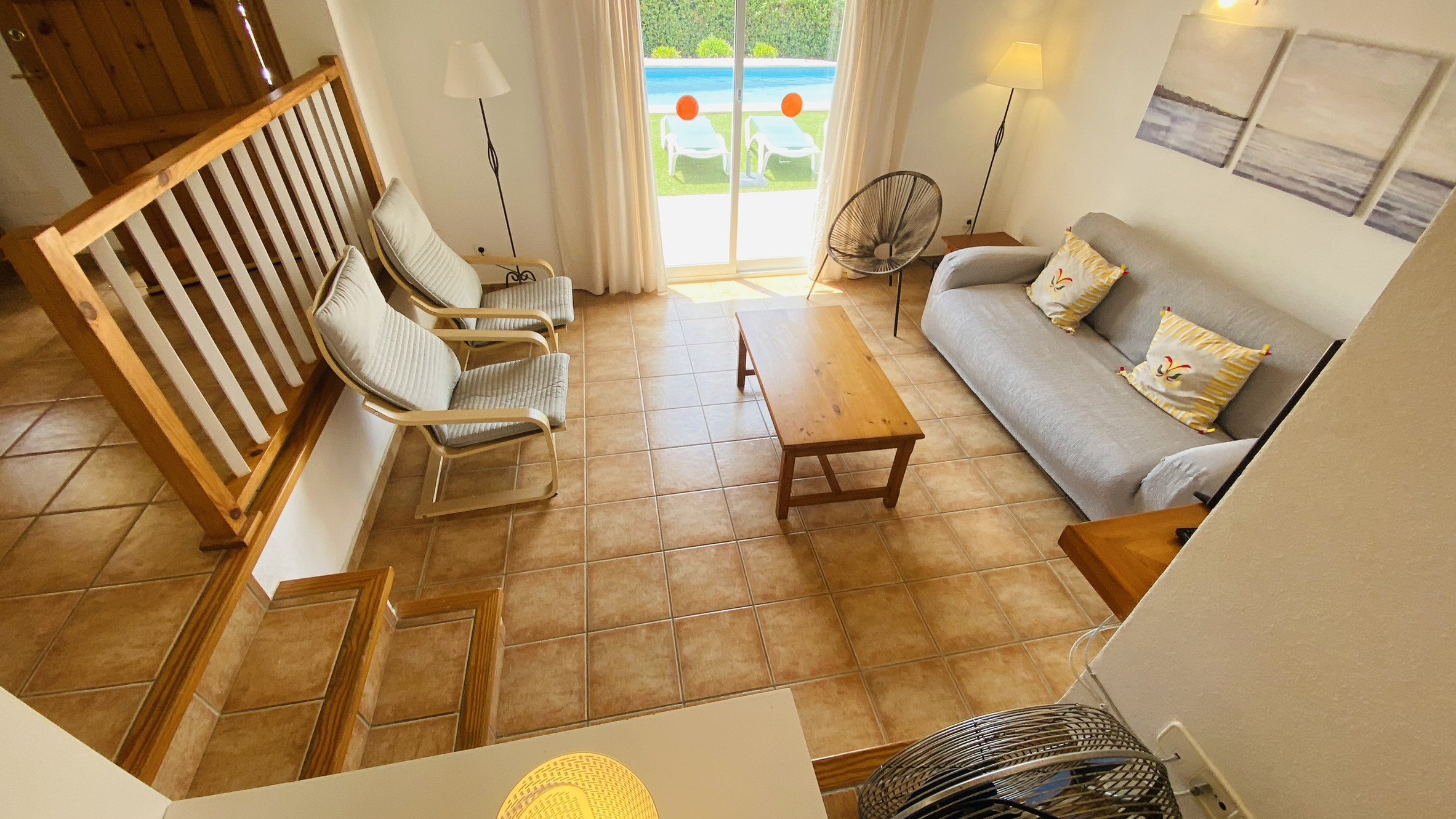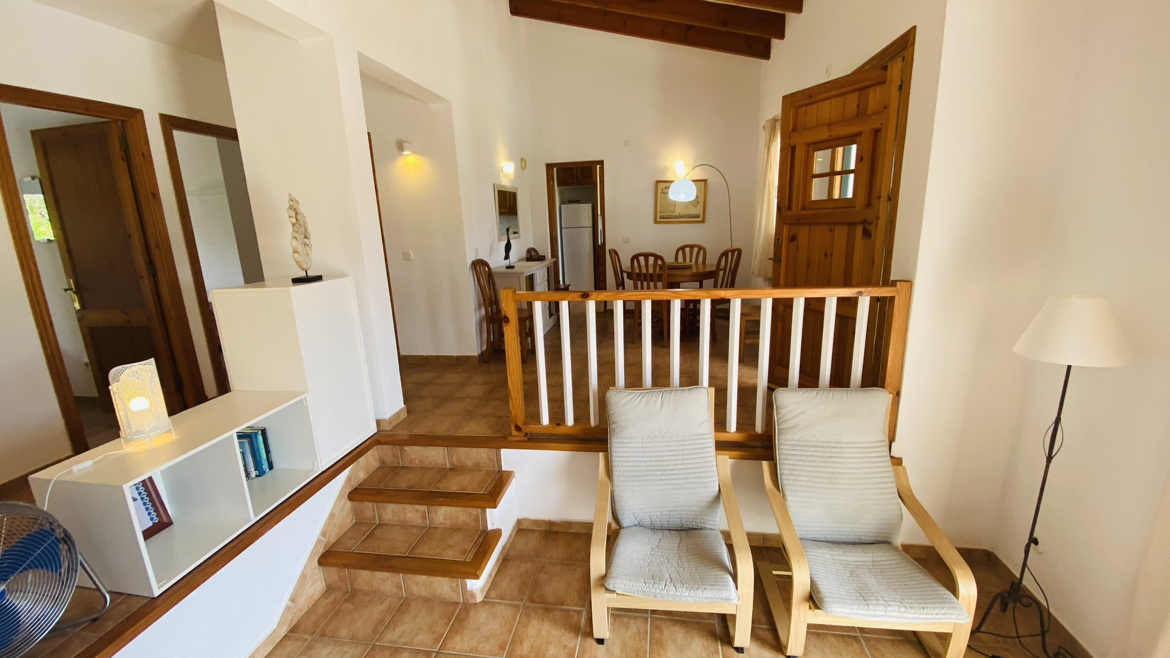 Das Haus verfügt über eine Veranda, die mit dem Esszimmer verbunden ist und mit einem Tisch und Stühlen zum Essen im Schatten ausgestattet ist. Der Pool misst 8m x 5m und ist von einem großen Garten umgeben, mit einheimischer Vegetation und Blumen, künstlichem Rasen und natürlichen Schattenzonen. Es gibt einen gemauerten Grill und Außensofa zum Entspannen im Freien.