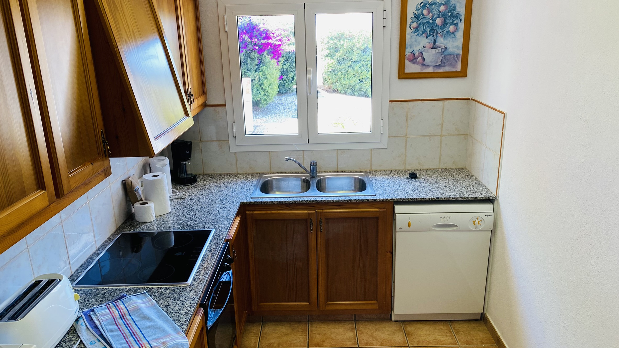 Die amerikanische Küche ist komplett mit modernsten Haushaltsgeräten ausgestattet, einschließlich Waschmaschine, Geschirrspüler, Backofen, Mikrowelle, Kaffeemaschine und einer großen Auswahl an Küchenutensilien. Darüber hinaus verfügt sie über Klimaanlage und Wärmepumpe, um das ganze Jahr über eine perfekte Temperatur zu gewährleisten.
