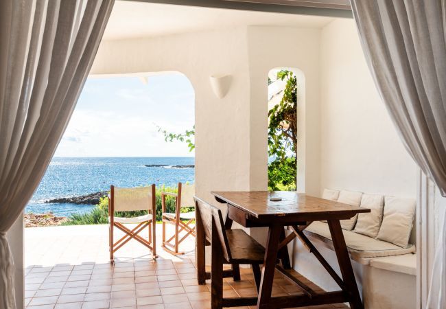 Immobilie in erster Reihe, etwa 10 Meter vom Meer entfernt. Der Strand von Binissafua ist 5 Gehminuten vom Haus entfernt und Binibeca 5 Autominuten. Die Dörfer Sant Lluís oder Sant Climent befinden sich 8 Autominuten entfernt.