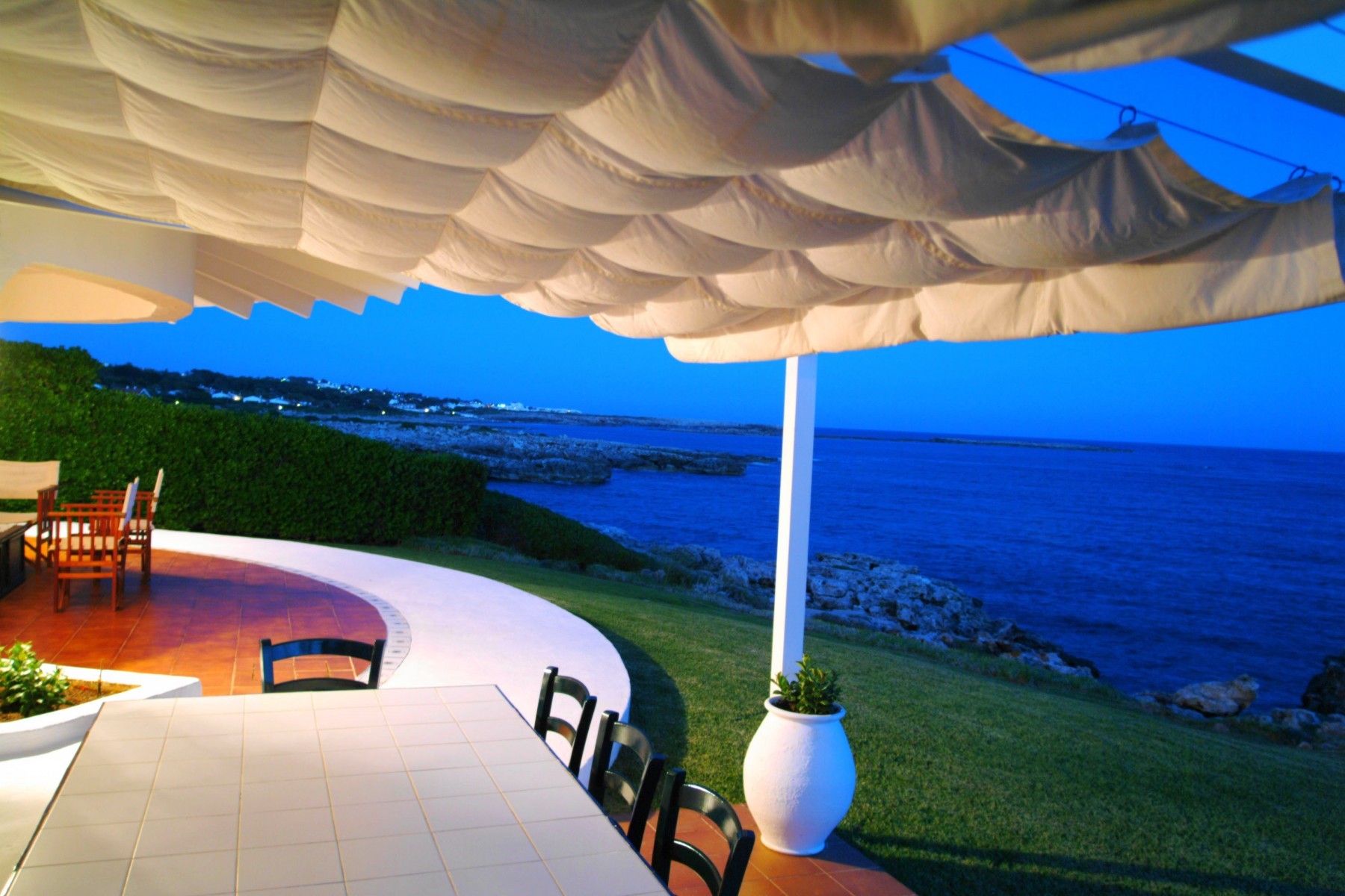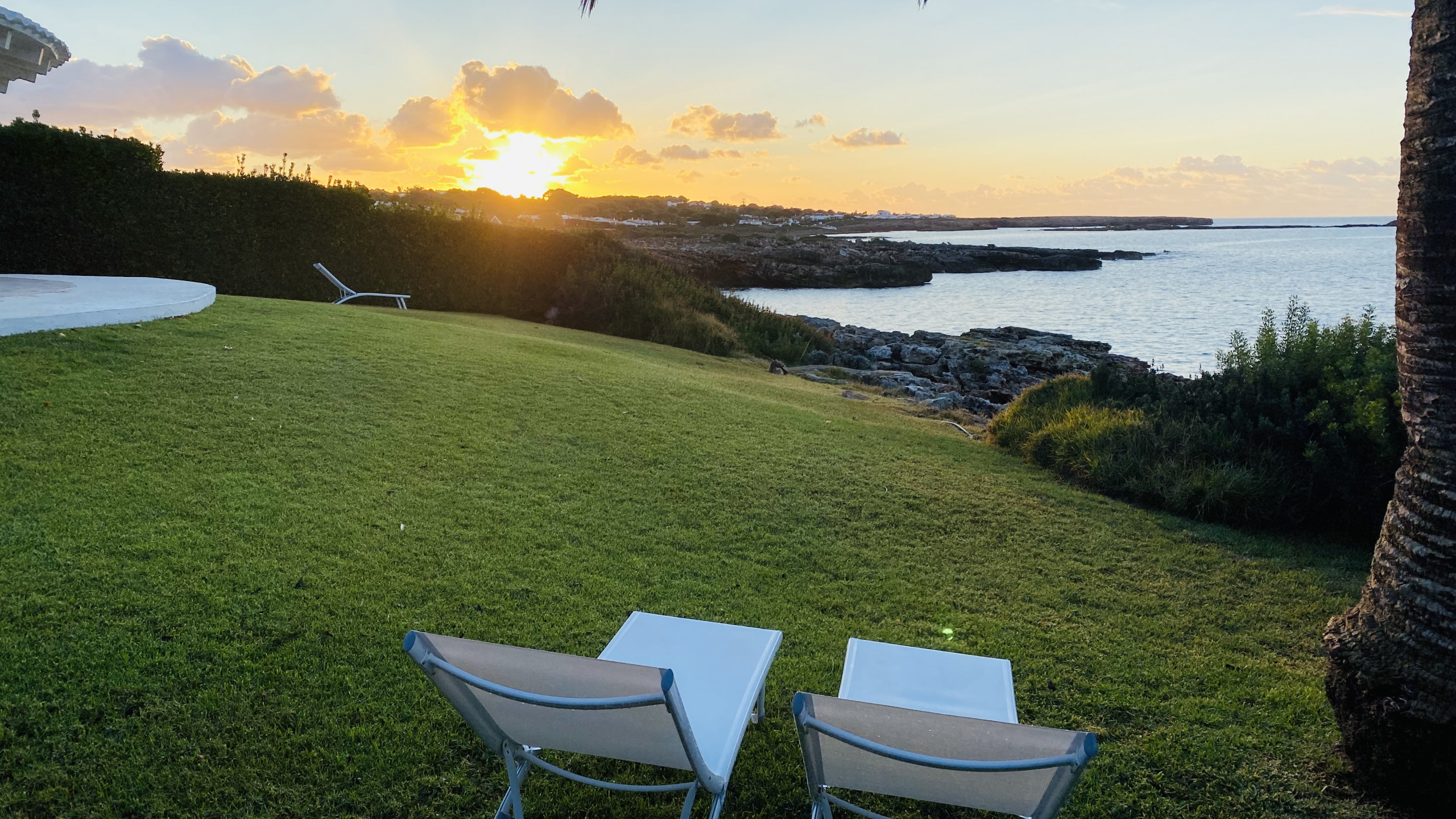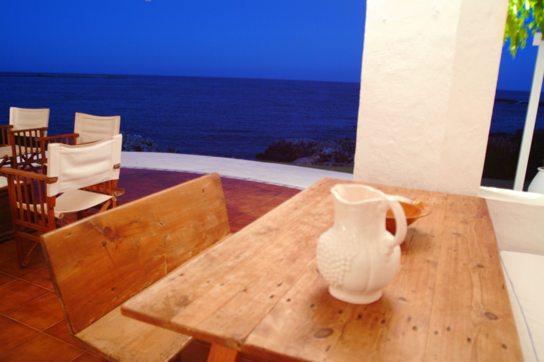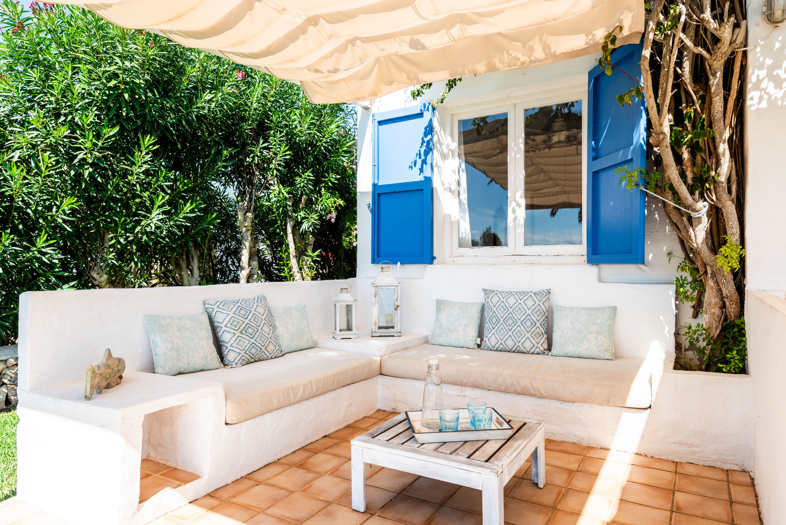 Der Garten hat Rasen bis zu den Felsen, die zum Meer führen, wo man über einige Stufen die kristallklaren Gewässer erreichen kann. Es gibt zwei große überdachte Terrassen mit Sofa, Stühlen und einem Tisch zum Essen oder Entspannen. Von dort aus kann man einen wunderbaren Blick auf die offene See genießen.