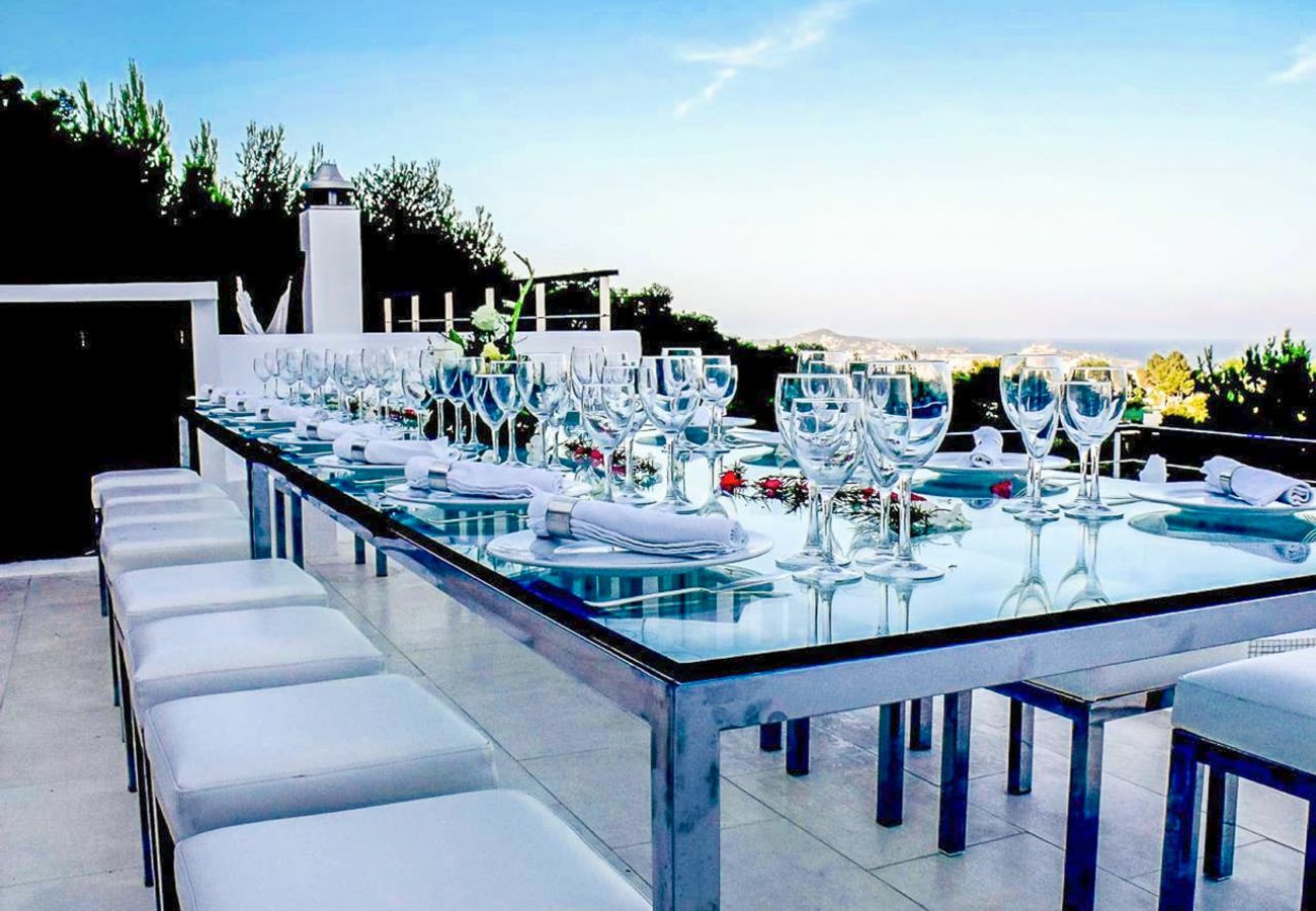 Auf einem 120.000 m² großen Privatgrundstück, 200 Meter über dem Meeresspiegel, bietet die Villa spektakuläre Aussichten auf das Naturschutzgebiet, die Stadt Ibiza, Salinas, Es Codolar und die Insel Formentera.
