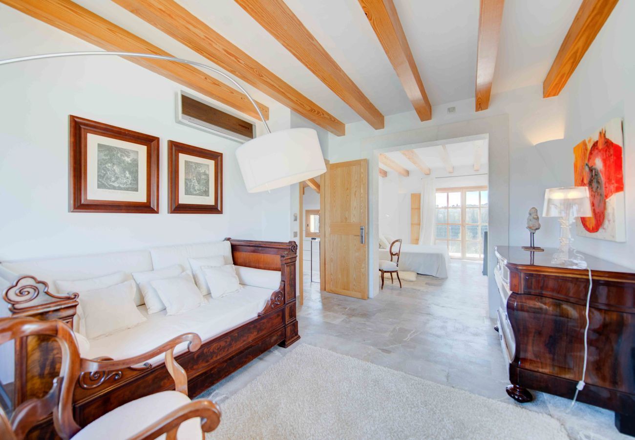 Der Strand, nur 25 km entfernt, ist der berühmte Platja de Muro. Goldener Sand, kristallklares Wasser und eine paradiesische Umgebung erwarten Sie. Für Golfliebhaber bieten Pollensa und Aucanada Plätze nur wenige Minuten vom Meer entfernt.