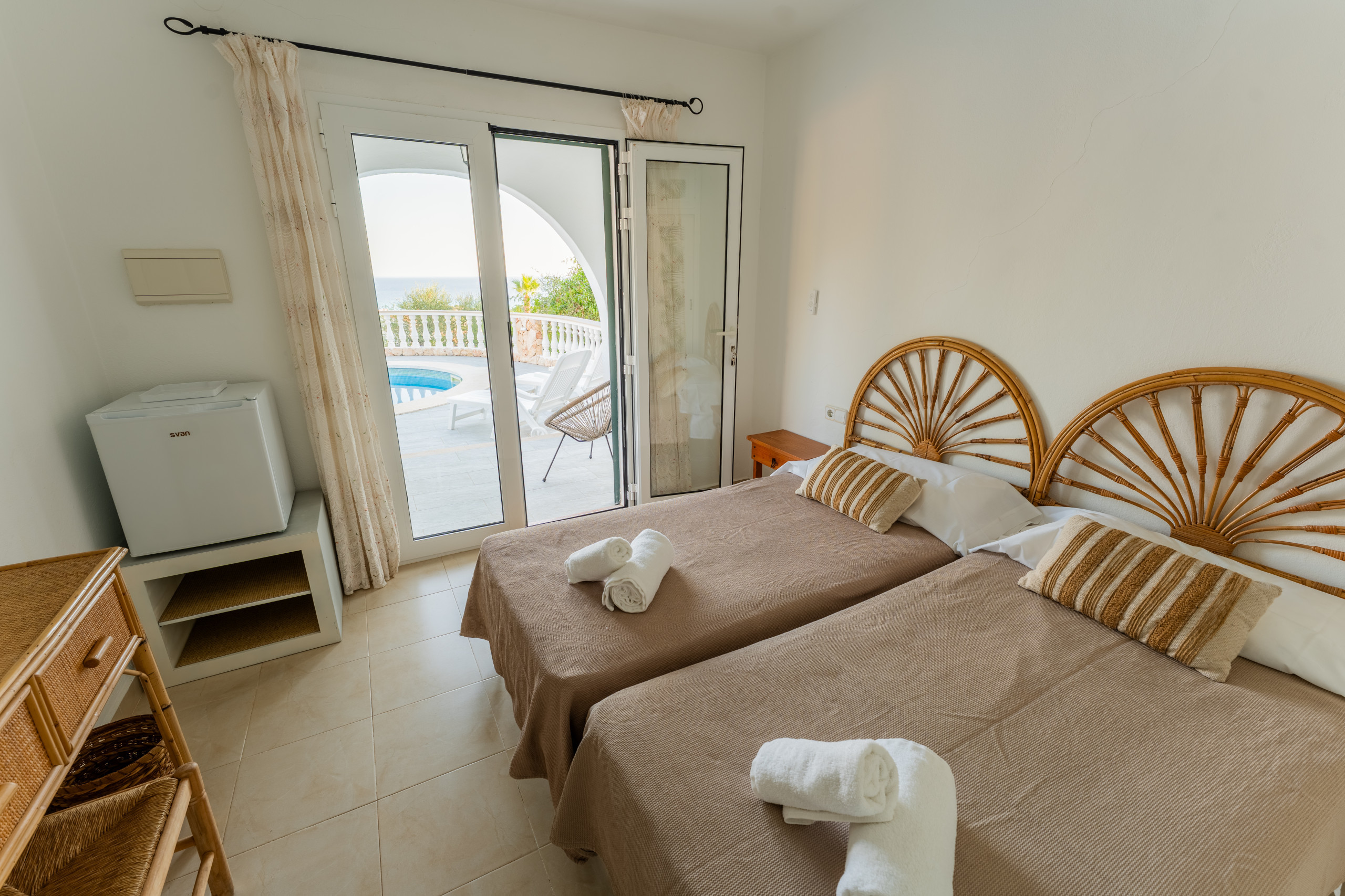 Die Villa verfügt über 5 Schlafzimmer mit 7 Betten (1 Doppelbett und 6 Einzelbetten), was eine bequeme Verteilung für Familiengruppen ermöglicht. Jedes Zimmer ist mit Klimaanlage ausgestattet, um maximalen Komfort an den heißesten Tagen zu gewährleisten.