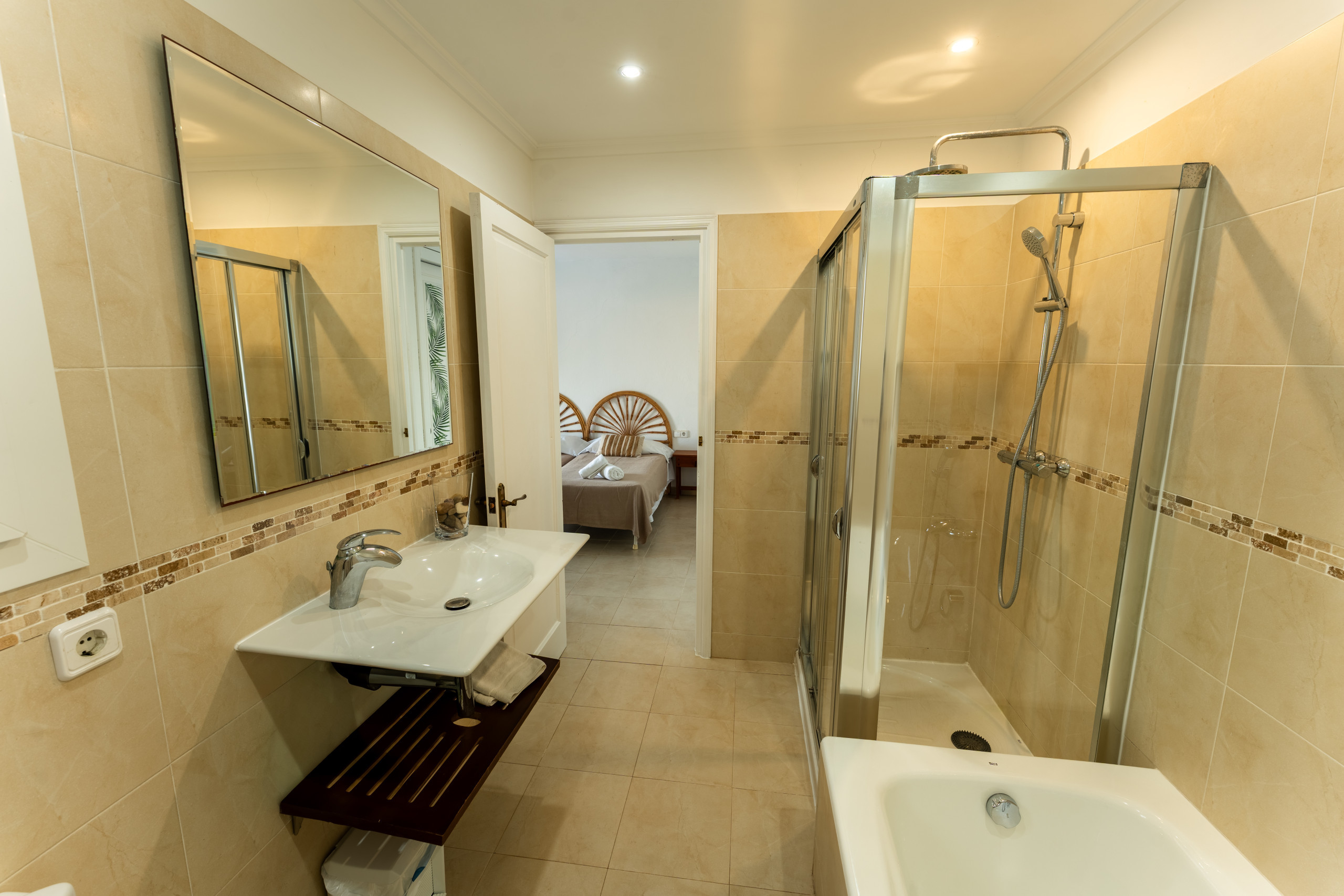 2. Im Untergeschoss gibt es ein Doppelzimmer und ein Zimmer mit zwei Einzelbetten und ein unabhängiges Bad (separate Badewanne und Dusche), das von beiden Schlafzimmern gemeinsam genutzt wird.