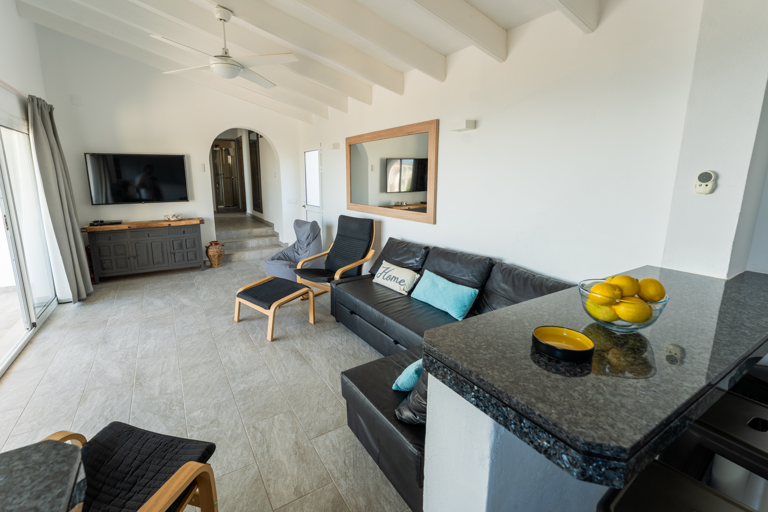 Mit Platz für 8 Personen verfügt die Villa über 4 Schlafzimmer, ausgestattet mit 1 Kingsize-Bett und 6 Einzelbetten, ideal für Familien- oder Freundesgruppen. Hervorgehoben wird ihr Innendesign, das sorgfältig und geschmackvoll möbliert ist und eine gemütliche und moderne Atmosphäre schafft.