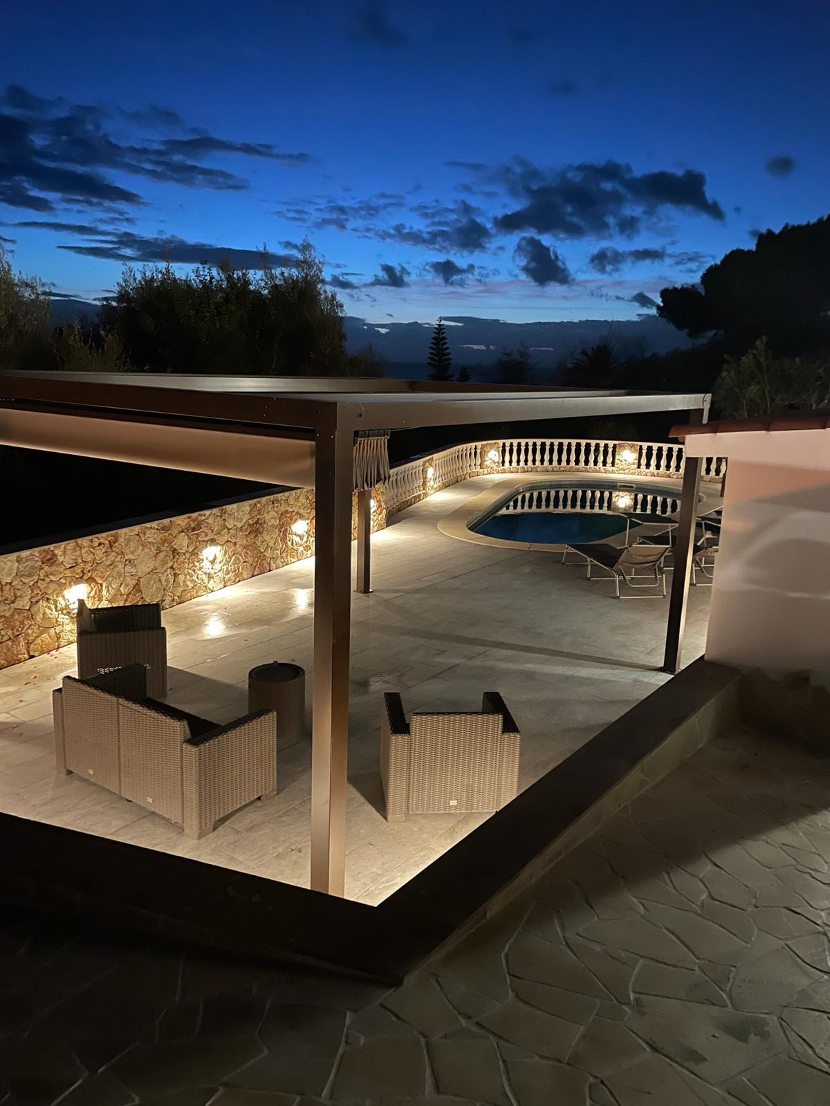 Die Immobilie verfügt über einen privaten Pool, der perfekt ist, um sich an heißen Sommertagen abzukühlen. Die geräumige Terrasse bietet einen unglaublichen Außenbereich, um unvergessliche Sonnenuntergänge mit Blick aufs Meer zu genießen.