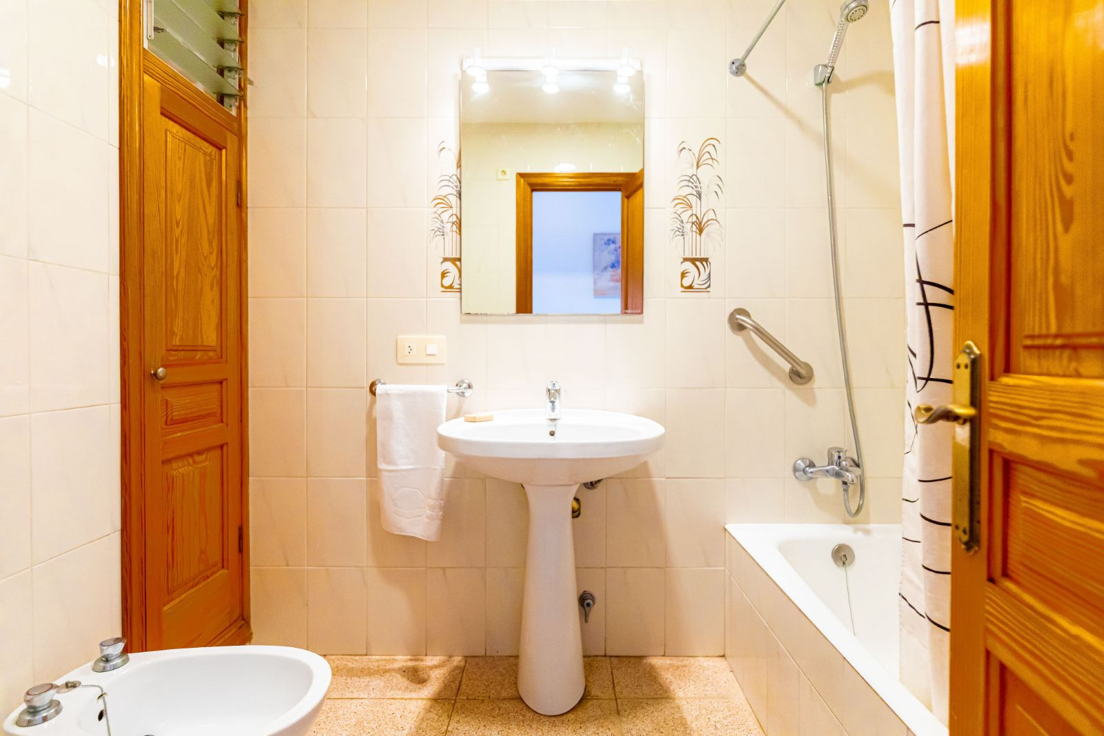 Die Küche ist komplett ausgestattet mit modernen Haushaltsgeräten wie Waschmaschine, Geschirrspüler, Backofen, Mikrowelle, Kaffeemaschine und anderen notwendigen Utensilien zum Kochen. Darüber hinaus verfügt sie über Klimaanlage in der gesamten Wohnung und WLAN, um verbunden zu bleiben.