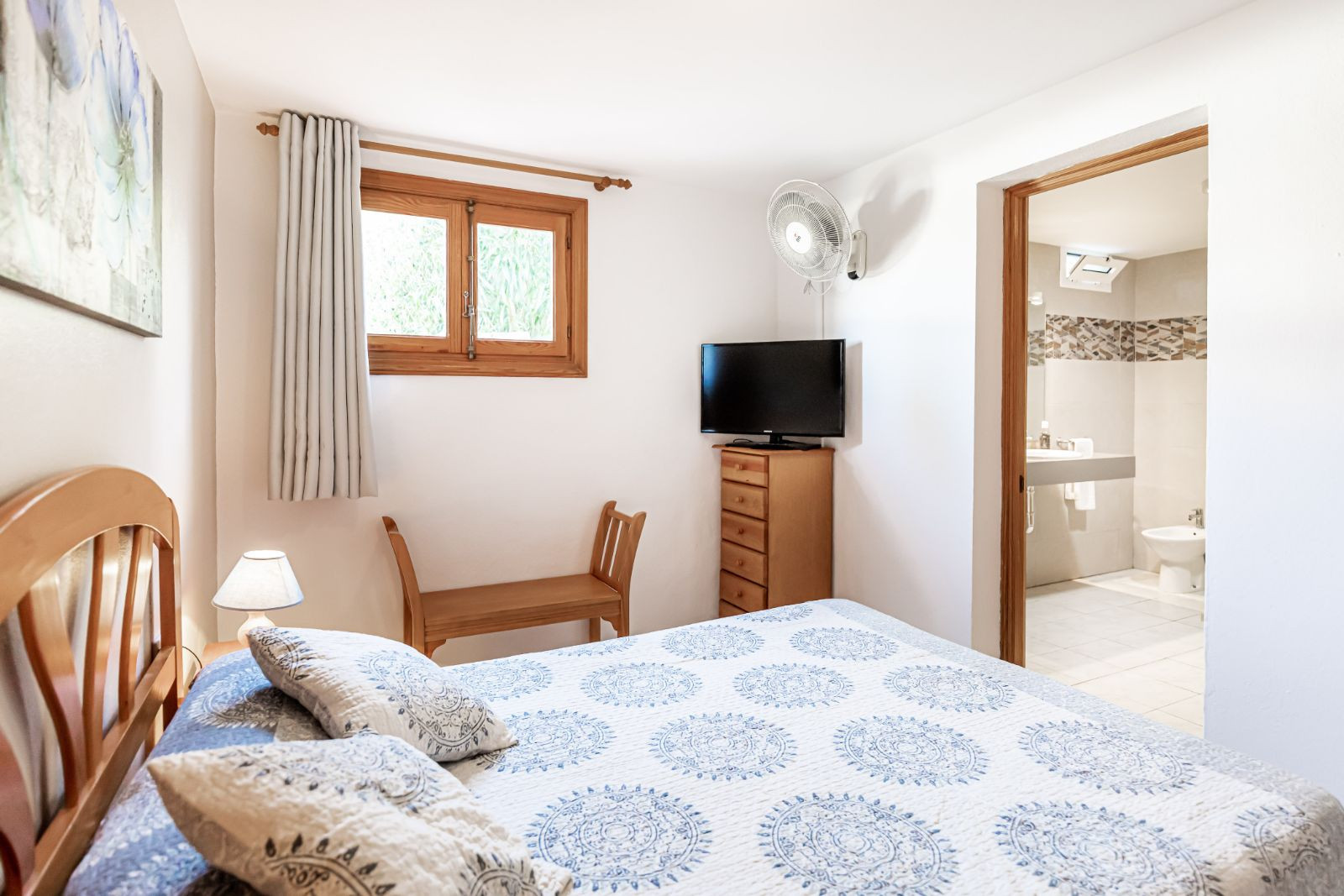 1 Doppelzimmer (zwei Einzelbetten) mit Klimaanlage und Toilette (Waschbecken und WC) en suite.