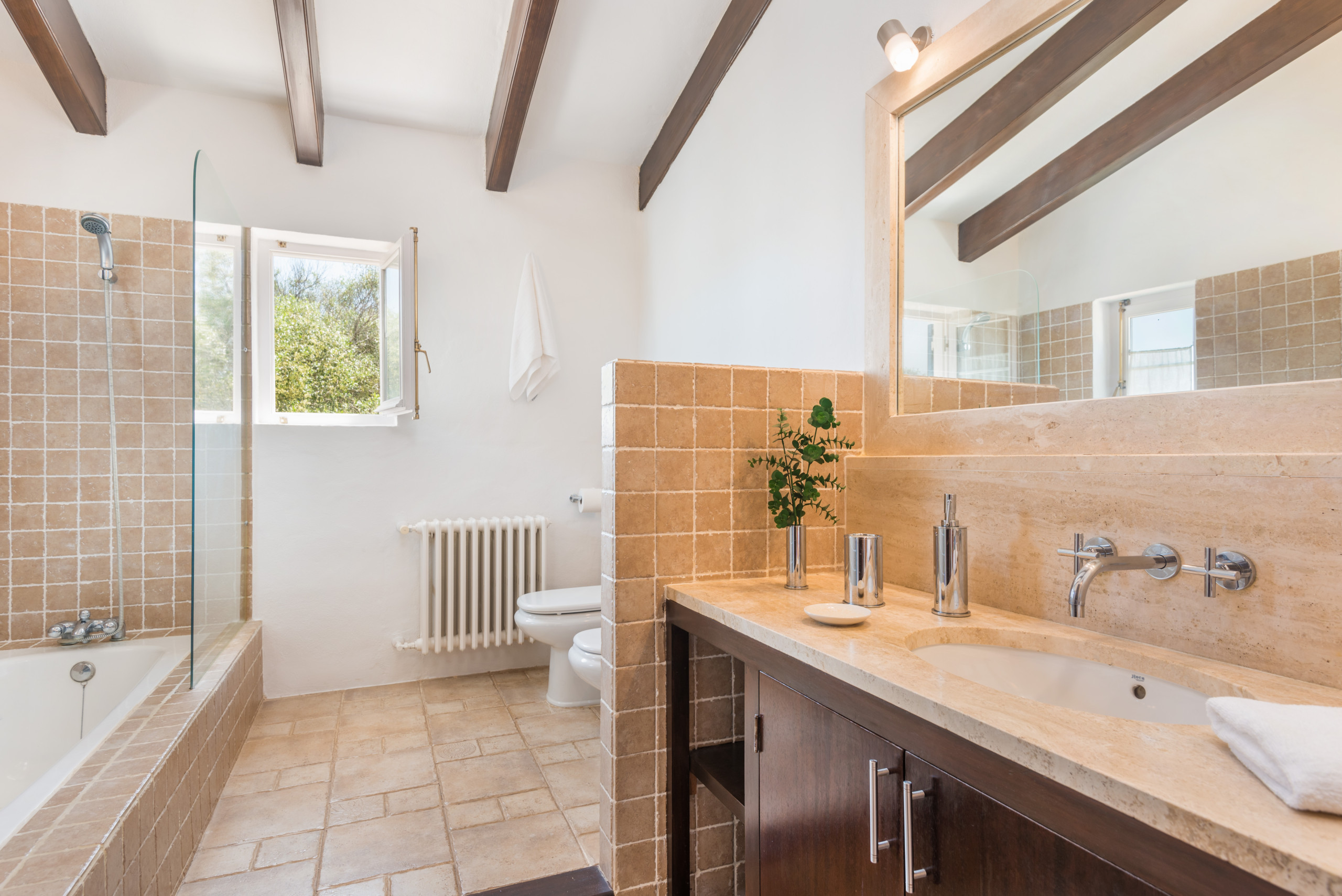 La casa ofrece un espacio increíblemente acogedor y está amueblada con gusto, ideal para familias o grupos que buscan una experiencia cómoda y relajante. Dispone de 4 baños (3 con ducha y 1 con bañera), lo que garantiza comodidad y privacidad para todos los huéspedes.