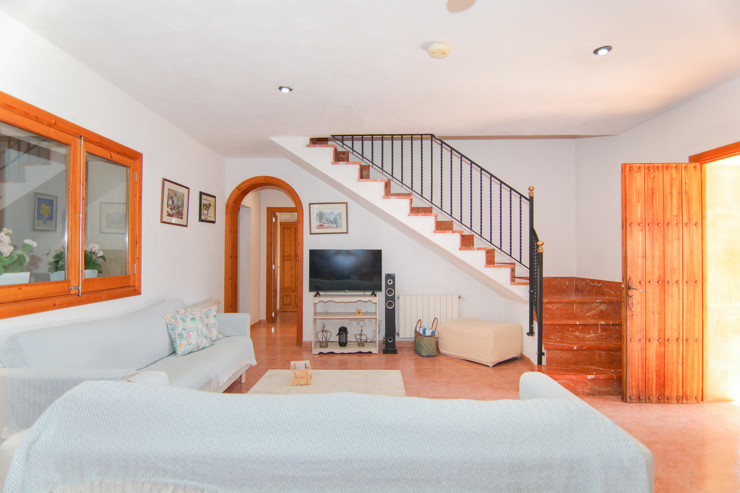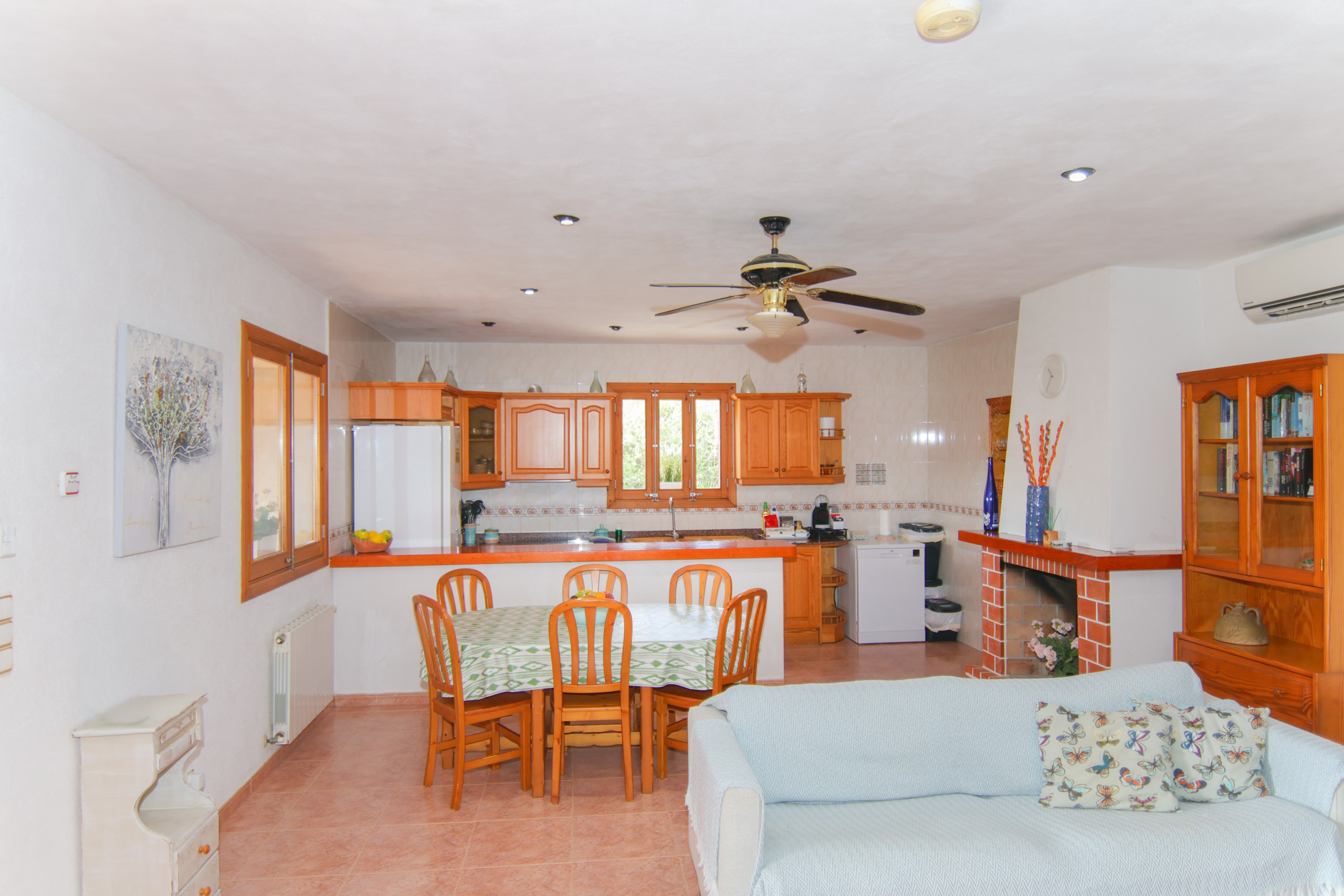 La típica finca mallorquina tiene 120 m² de espacio habitable y está preparada para 6 personas. Ofrece un acogedor salón-comedor con sofás, TV vía satélite y WiFi. La cocina totalmente equipada se encuentra junto a la confortable sala de estar donde hay una gran mesa .