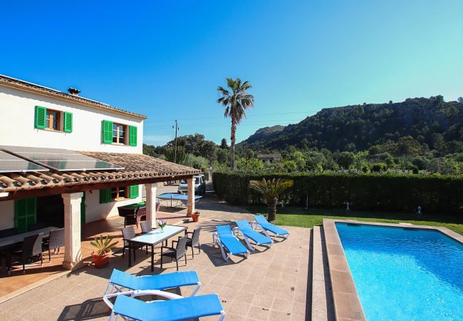 La casa esta rodeada de jardines y una piscina de generosas dimensiones y dos niveles de profundidad. Se compone de cinco habitación dobles, dos baños con ducha y uno mas con bañera, una cocina totalmente equipada, aire acondicionado frio/calor, wifi, una amplia terraza con mobiliario exterior y zona de barbacoa, donde disfrutar con la familia y amigos de un agradable atardecer con sus vistas a las montañas. Ademas dispone de una mesa de ping-pong para los más inquietos de la familia.
