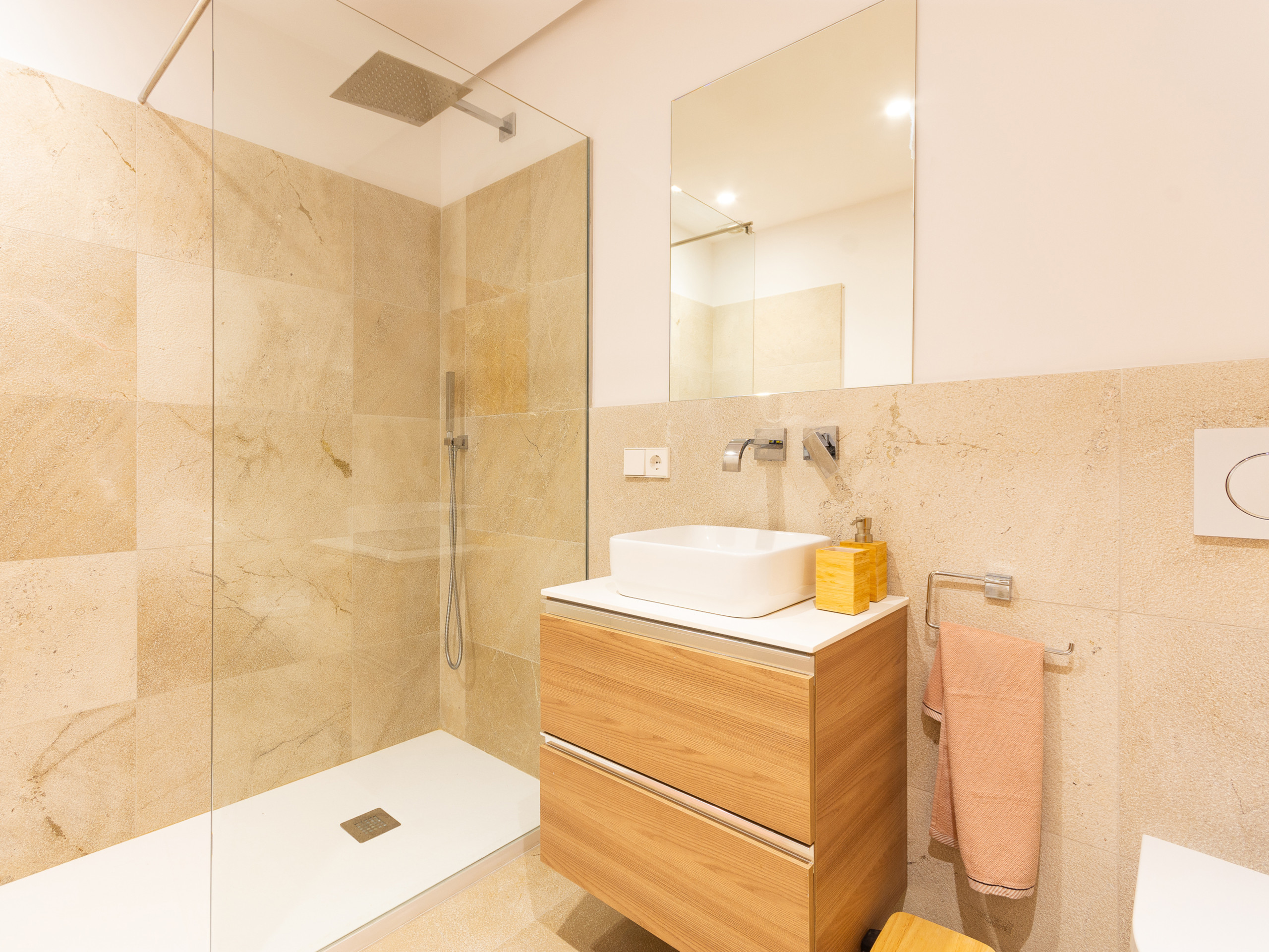 El moderno interior de 208 m² se distribuye en 2 plantas. En la zona inferior hay un acogedor rincón de TV con cómodos sofas y acceso a la terraza. El luminoso comedor abierto está integrado en la sala de estar. La cocina está separado de la zona común, pero tiene acceso directo al comedor y está equipada con todo lo que necesita en una cocina que funcione bien. En la planta baja también hay 1 gran habitación doble y un baño. La otra zona de dormir se encuentra en la planta superior y consta de 3 dormitorios dobles modernos y 2 baños preciosos. Todas las áreas de la casa están equipadas con aire acondicionado y diseñadas con gran atención al detalle. A petición, proporcionamos cunas y tronas para nuestros huéspedes más pequeños. Por supuesto, Internet wifi gratuito es parte del equipamiento básico. Todo el mobiliario ha sido elegido con un diseño moderno y confortable, proporcionando así la base ideal para unas vacaciones relajantes ...