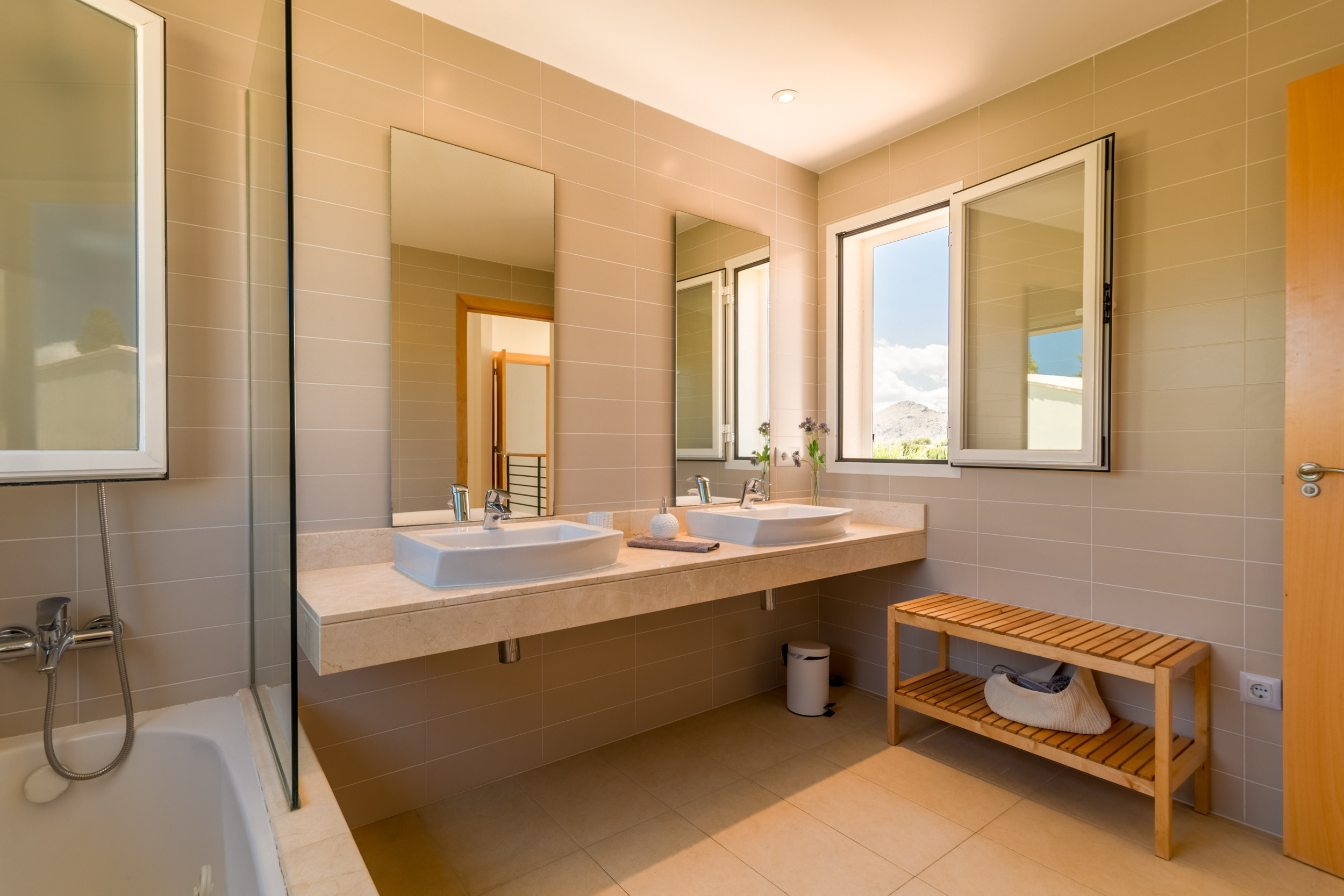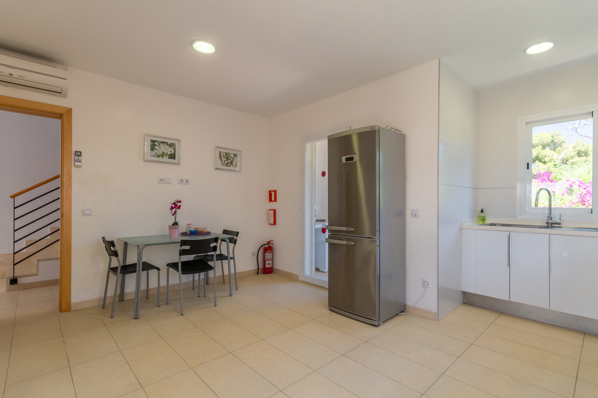 El moderno interior de 208 m² se distribuye en 2 plantas. En la zona inferior hay un acogedor rincón de TV con cómodos sofas y acceso a la terraza. El luminoso comedor abierto está integrado en la sala de estar. La cocina está separado de la zona común, pero tiene acceso directo al comedor y está equipada con todo lo que necesita en una cocina que funcione bien. En la planta baja también hay 1 gran habitación doble y un baño. La otra zona de dormir se encuentra en la planta superior y consta de 3 dormitorios dobles modernos y 2 baños preciosos. Todas las áreas de la casa están equipadas con aire acondicionado y diseñadas con gran atención al detalle. A petición, proporcionamos cunas y tronas para nuestros huéspedes más pequeños. Por supuesto, Internet wifi gratuito es parte del equipamiento básico. Todo el mobiliario ha sido elegido con un diseño moderno y confortable, proporcionando así la base ideal para unas vacaciones relajantes ...