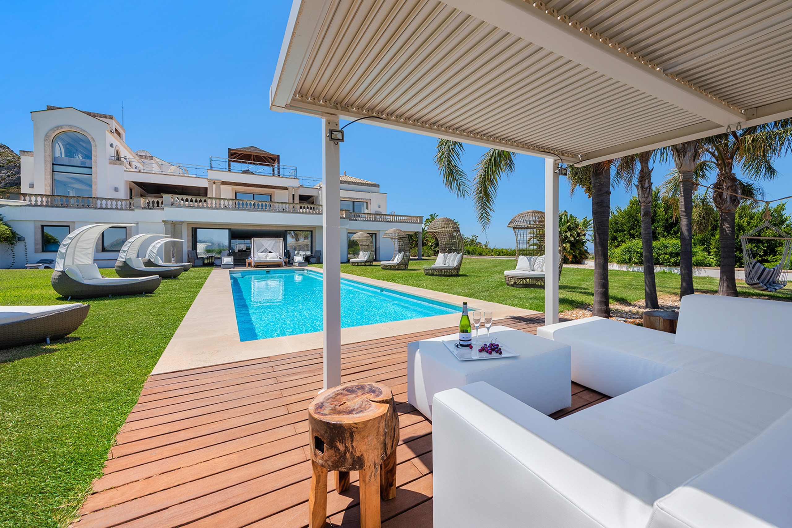 Ubicada en el encantador pueblo de Alcudia y situada sobre la montaña de Bonaire, 'Voltor Paradise' ofrece espectaculares vistas al mar, la bahía de Pollensa, las majestuosas montañas y la bahía de Alcudia. Esta mansión cuenta con preciosos jardines, un helipuerto, una piscina exterior de 14 metros con vistas al mar, una pista de tenis, amplias terrazas y porches. Además, su SPA de lujo incluye una piscina climatizada de 12 metros, jacuzzi, sauna, baño turco y duchas de contraste, así como un tanque de aislamiento sensorial para relajarte y un gimnasio para mantenerte en forma.