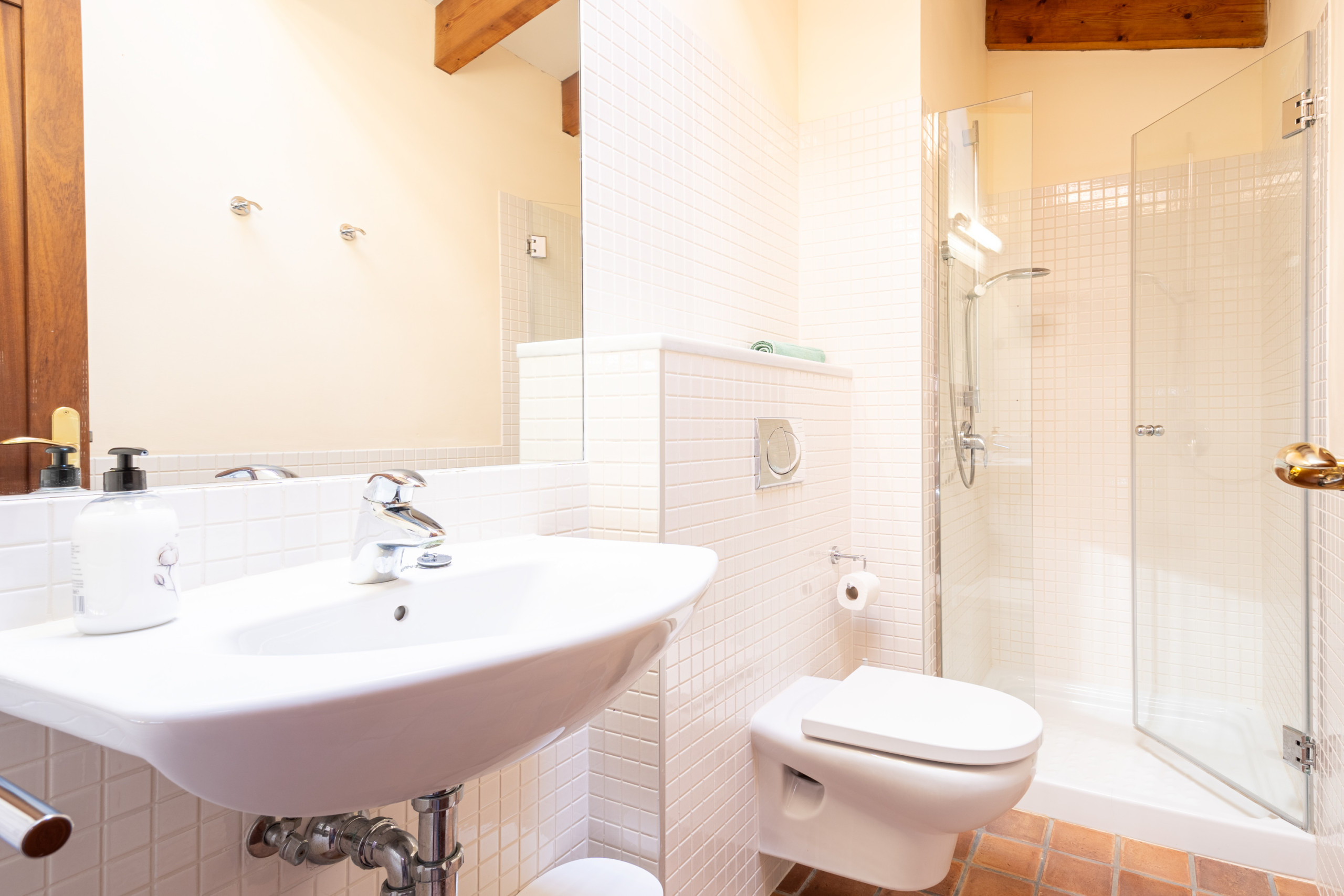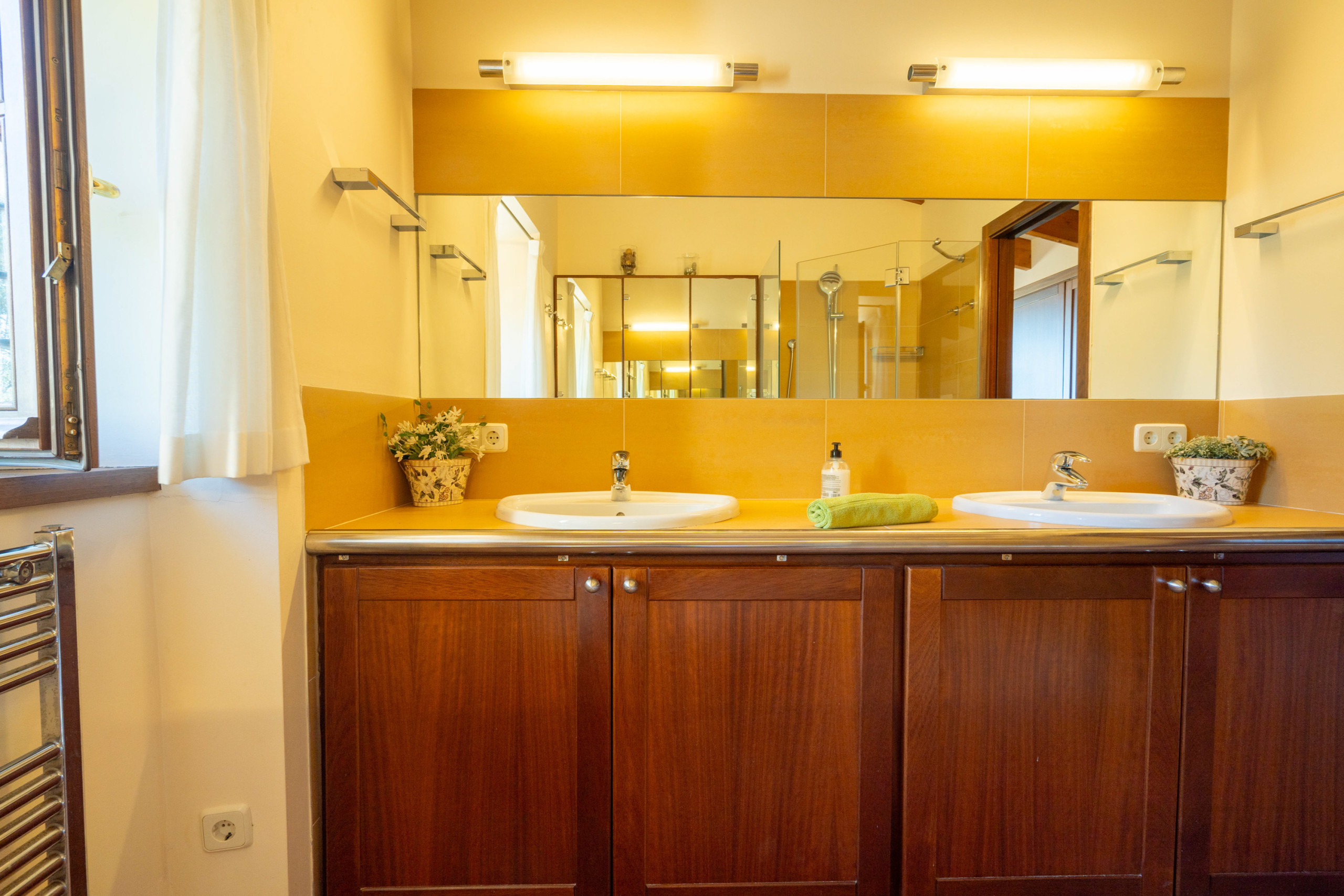 La finca consta de dos casas independientes, cada una con su propia cocina y sala de estar. La casa principal te recibe con una amplia entrada, chimenea y una moderna cocina equipada con todas las comodidades. En la planta baja, encontrarás una habitación espaciosa con baño en suite y una sala de televisión. Subiendo las escaleras, descubrirás tres habitaciones adicionales, todas con baño en suite. La casa más pequeña cuenta con un salón comedor, cocina con office y dos habitaciones dobles, ambas con baño en suite. En total, la villa cuenta con 6 dormitorios y tiene capacidad para 12 personas.