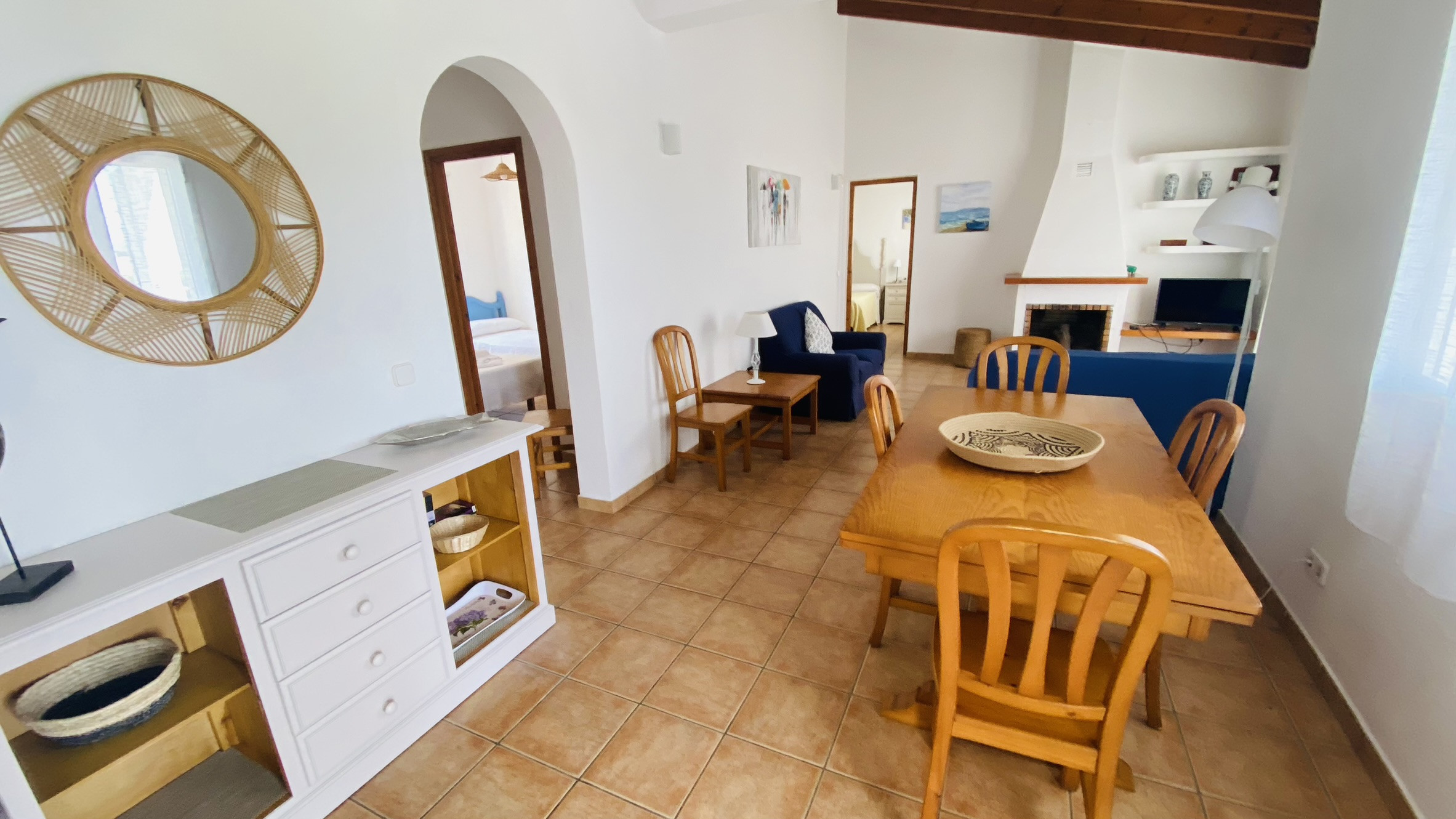 La villa admite mascotas (máximo 1) y está preparada para que disfrutes de unas vacaciones únicas en Menorca. Cuenta con parking privado para 2 vehículos y WiFi para mantenerte conectado. ¡Tu hogar perfecto te espera en Binibeca!