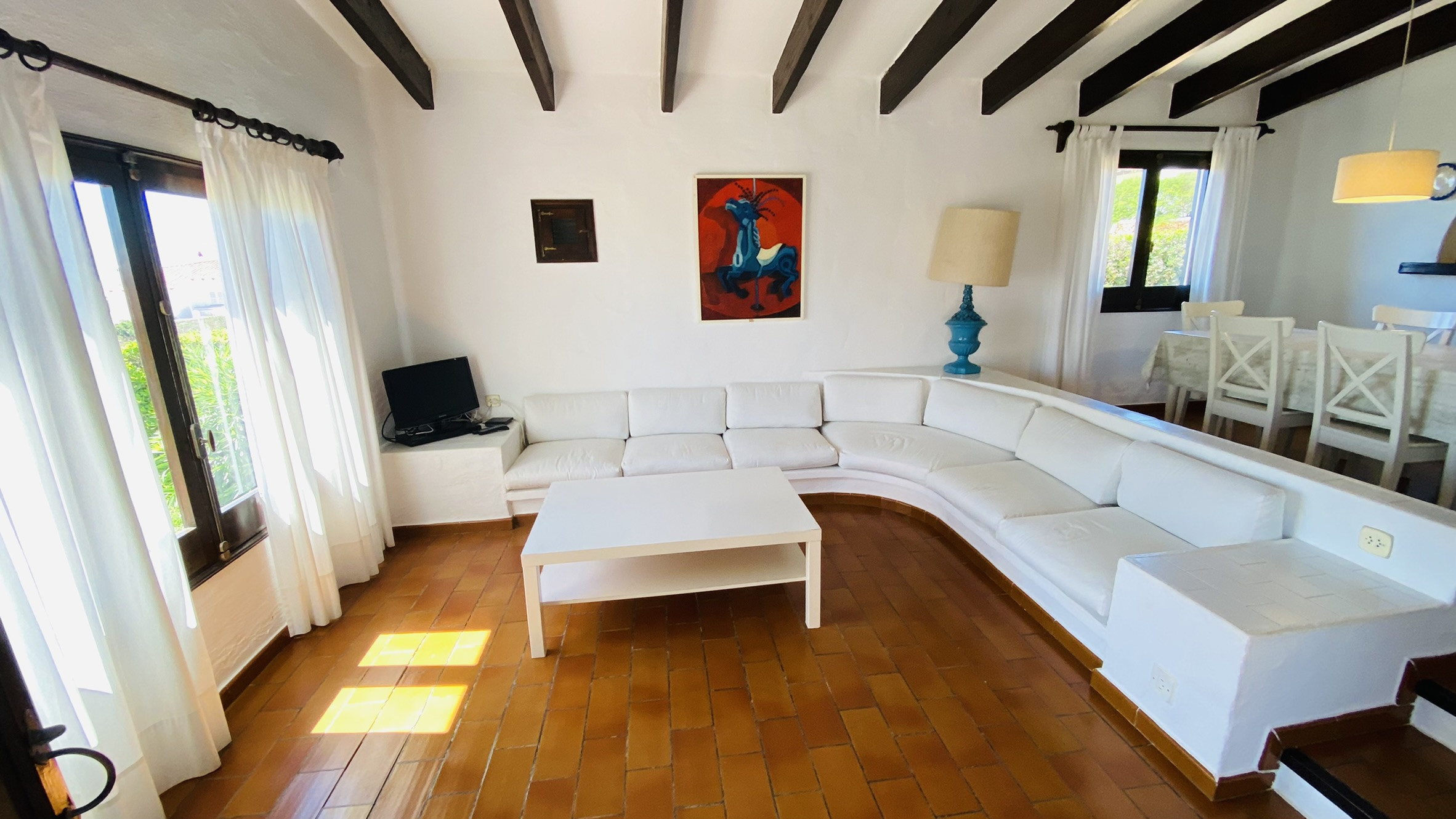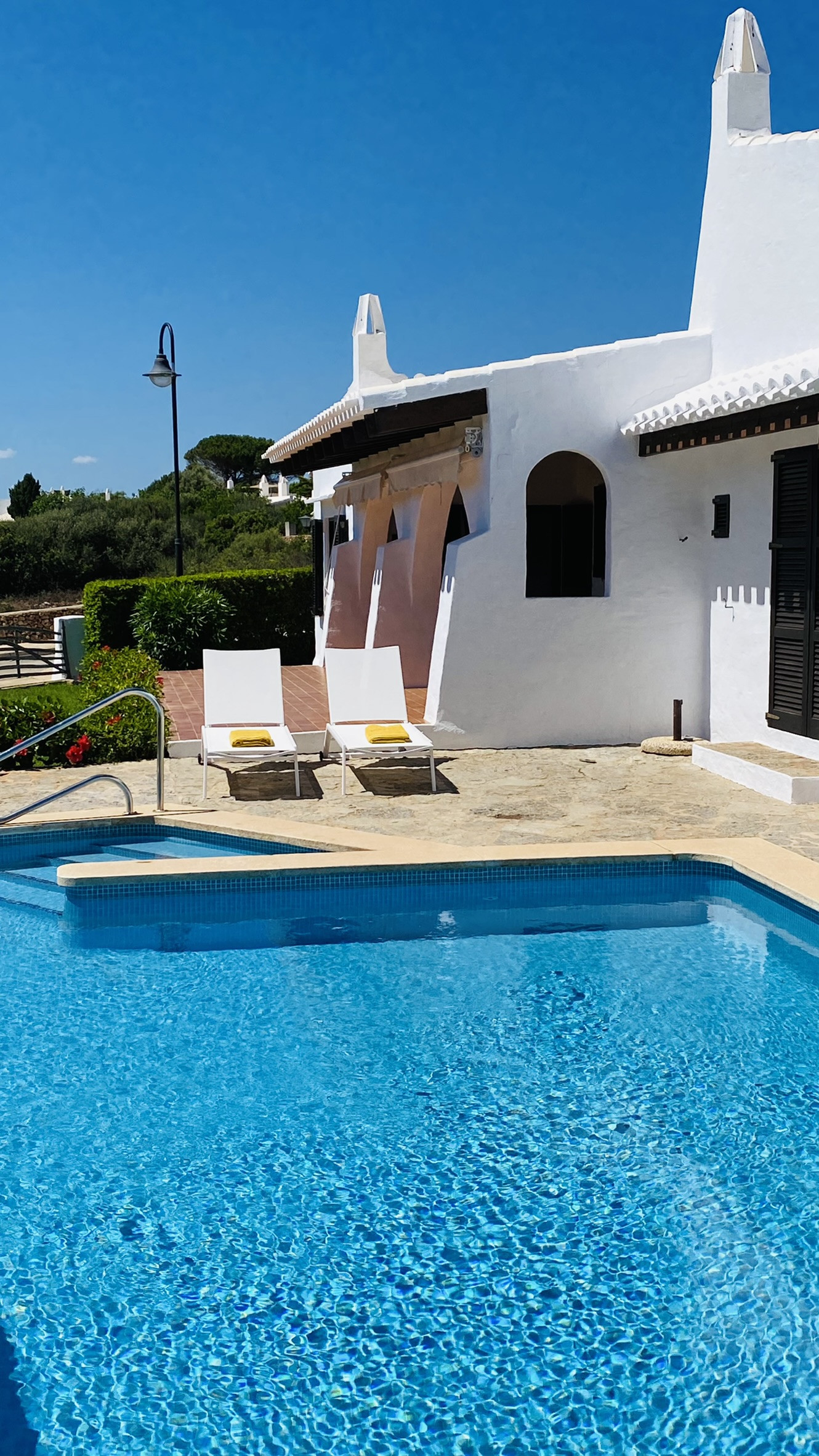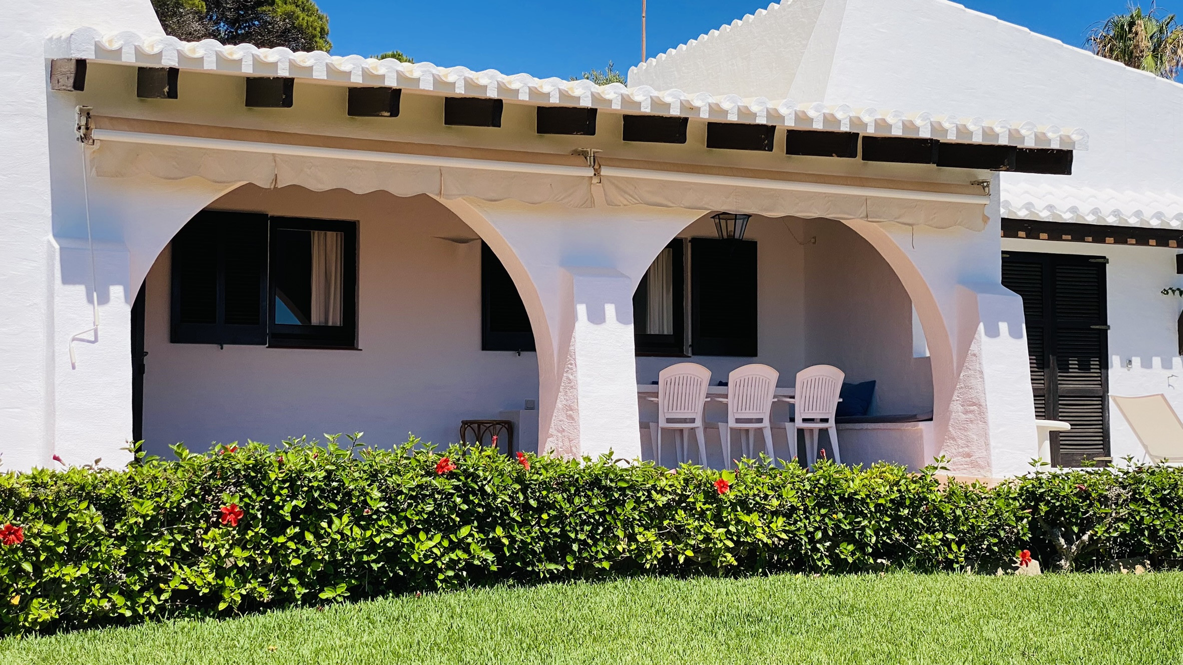 Bonito y original chalet en Binibeca, situado en una zona muy tranquila, a tan solo 2 minutos caminando del pueblo de pescadores y a 10 minutos de la bonita playa de Binibeca. Los bares, restaurantes y tiendas de souvenir se encuentran muy cerca. El pueblo de Sant Lluís se encuentra a unos 7 minutos conduciendo y hay línea de autobús a Mahón.