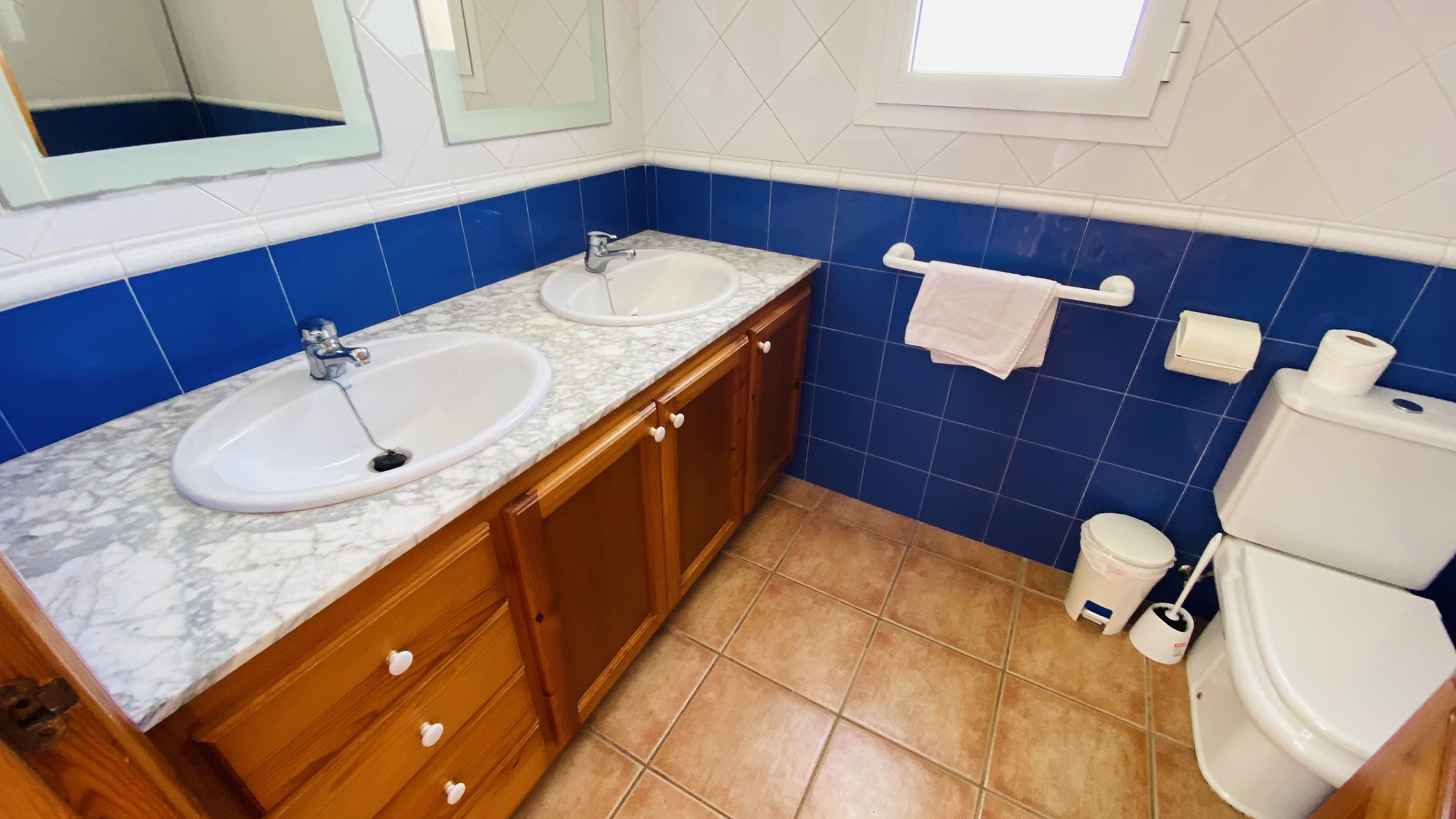 La villa cuenta con 3 dormitorios completamente equipados: un dormitorio principal con cama doble y dos dormitorios adicionales con camas individuales, garantizando un descanso reparador para todos los huéspedes. Dispone de 3 cuartos de baño, dos con bañera y uno con ducha, lo que facilita la rutina diaria de los visitantes.