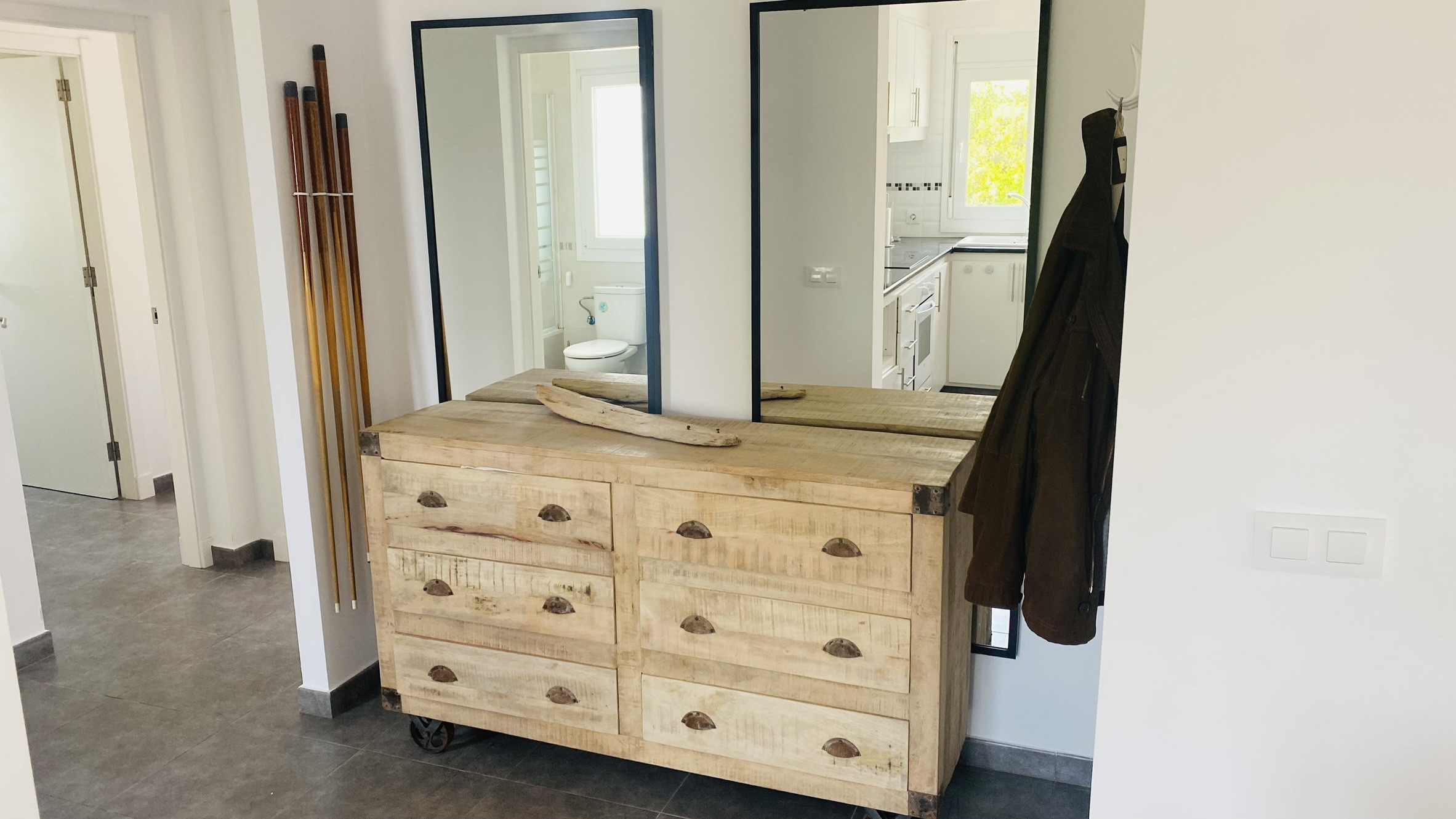La cocina americana está totalmente equipada con electrodomésticos de última generación, incluyendo lavadora, lavavajillas, horno, microondas, cafetera y una amplia variedad de menaje. Además, cuenta con aire acondicionado y bomba de calor para mantener una temperatura perfecta durante todo el año.