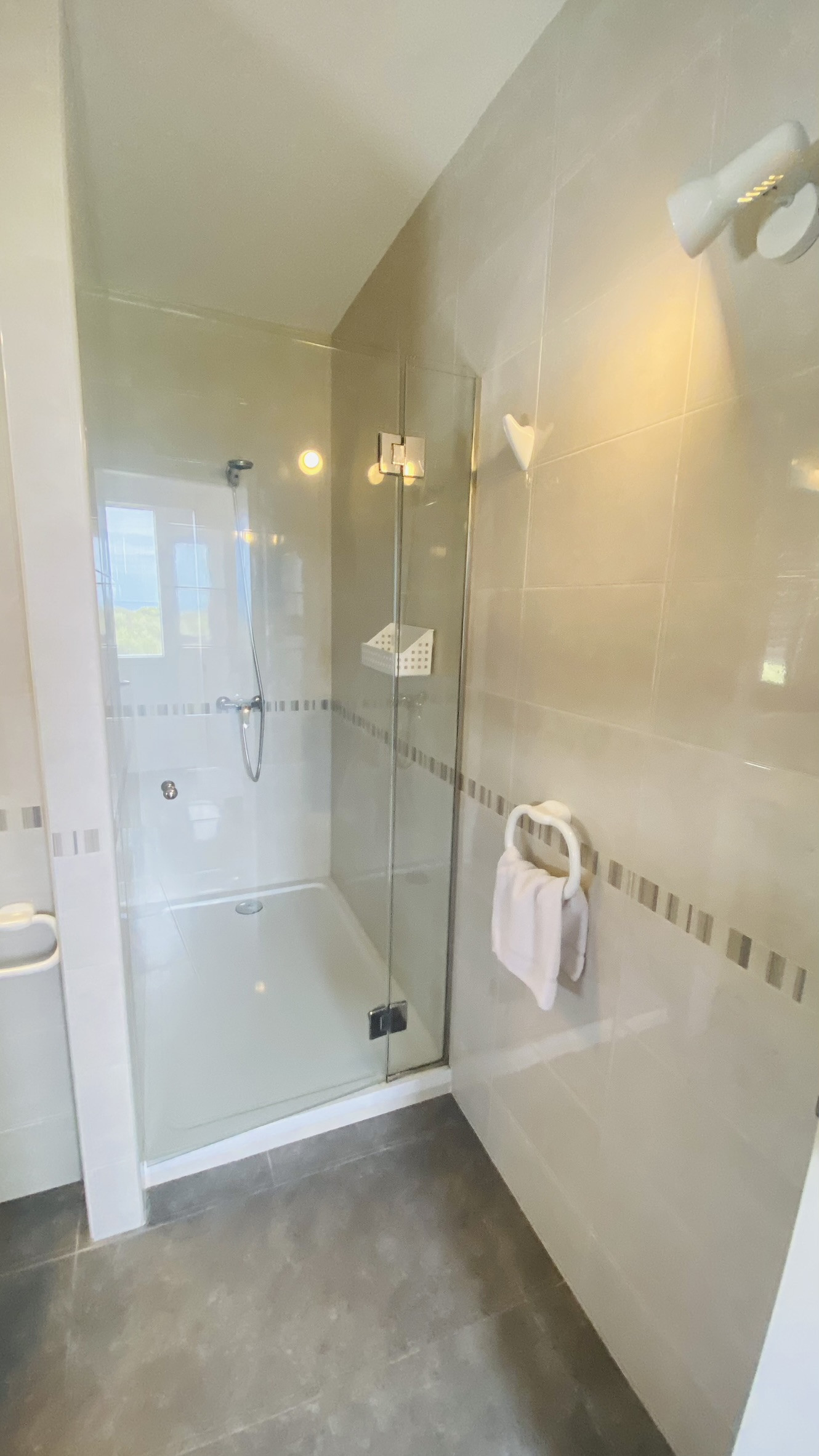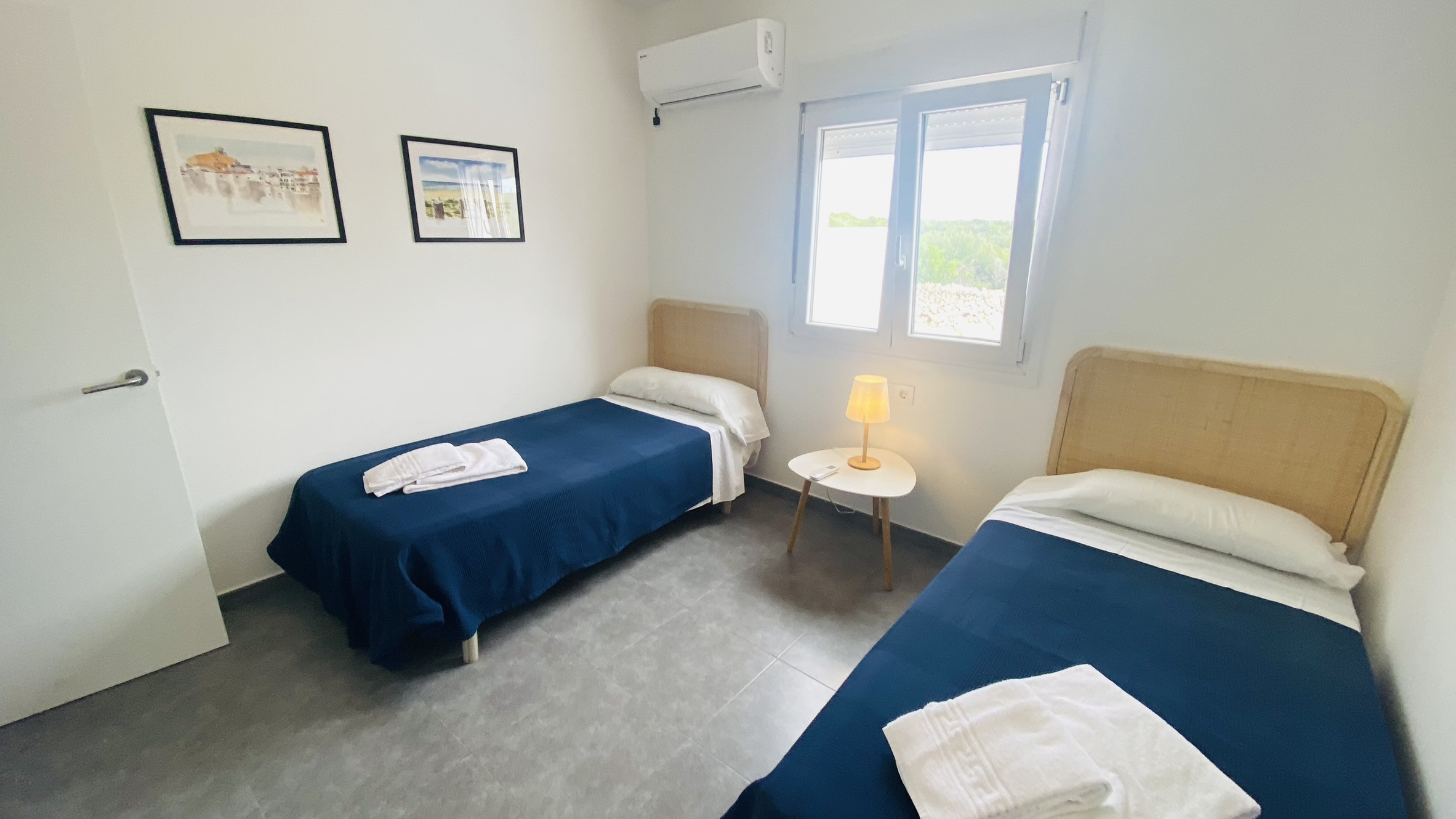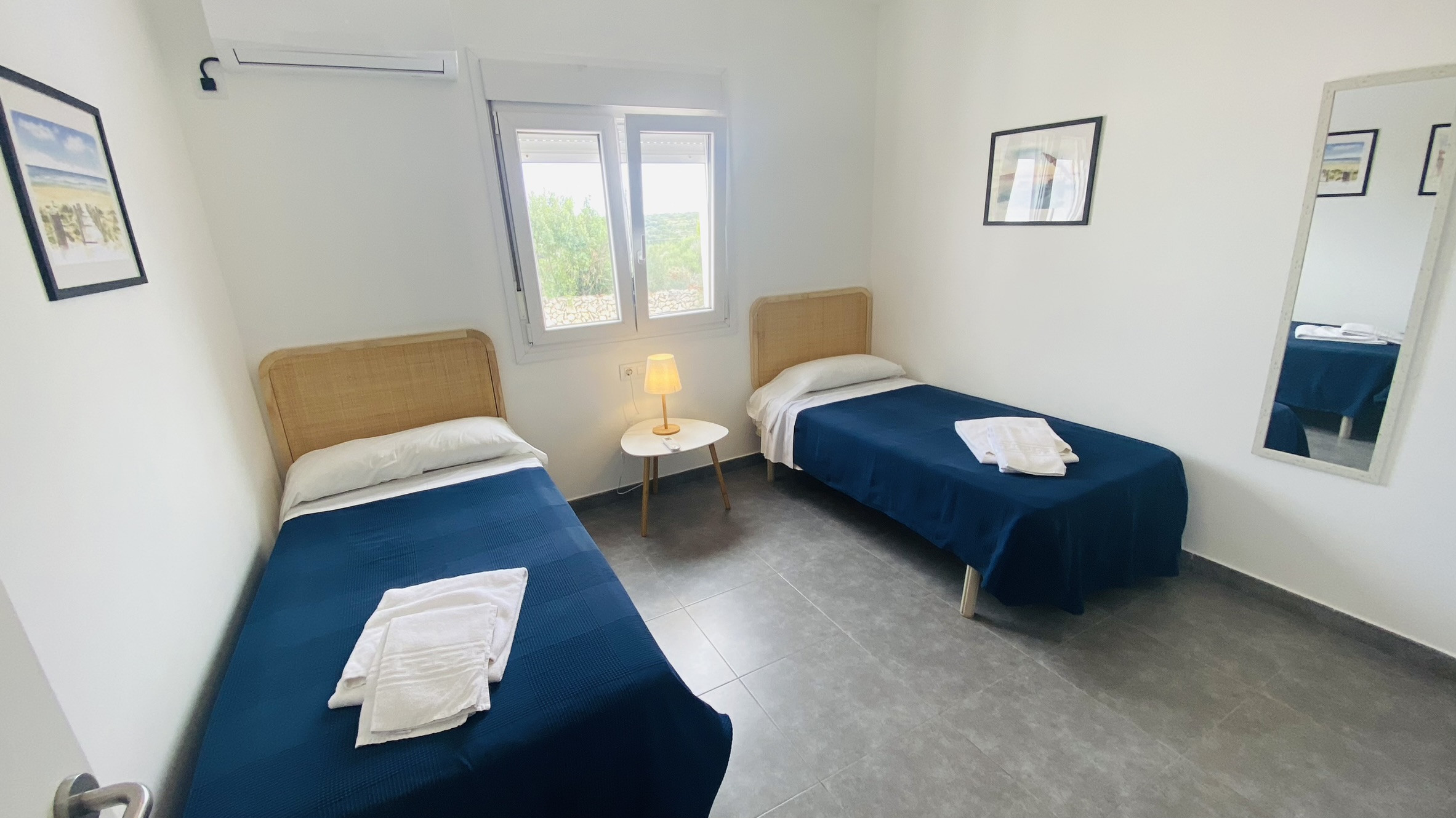 La villa cuenta con 3 dormitorios completamente equipados: un dormitorio principal con cama doble y dos dormitorios adicionales con camas individuales, garantizando un descanso reparador para todos los huéspedes. Dispone de 3 cuartos de baño, dos con bañera y uno con ducha, lo que facilita la rutina diaria de los visitantes.