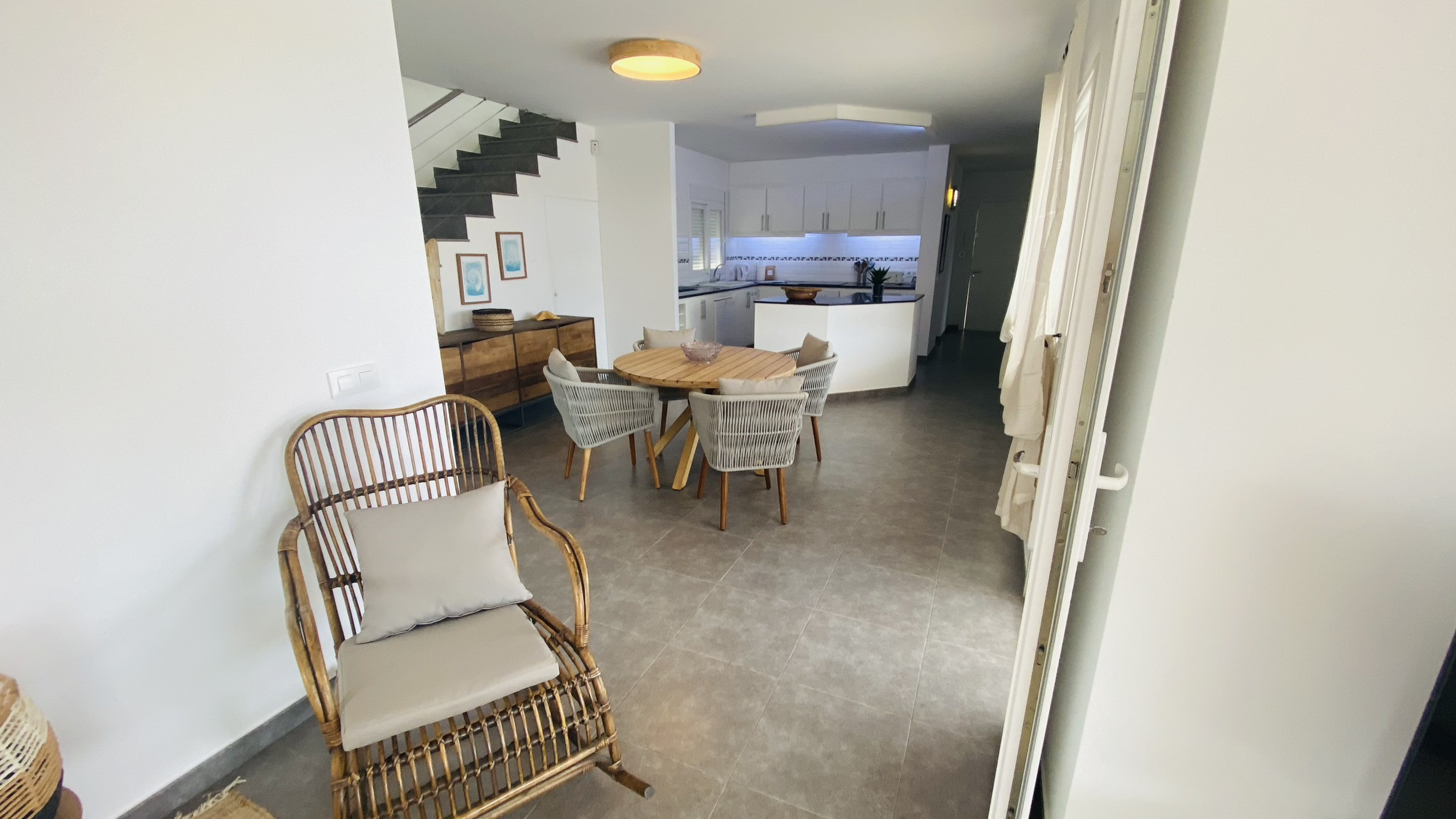 Descubre un refugio moderno y elegantemente amueblado en Binibeca, una villa que combina confort y estilo en un entorno tranquilo junto al mar. Esta acogedora propiedad de 180 metros cuadrados está diseñada para albergar hasta 6 personas, ofreciendo un espacio perfecto para unas vacaciones en familia o con amigos.