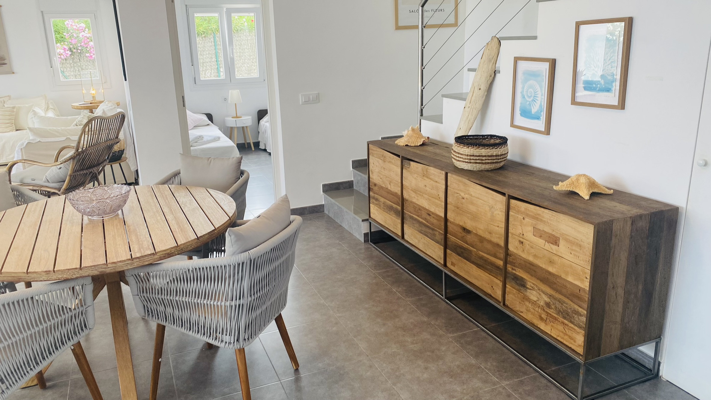 La villa admite mascotas (máximo 1) y está preparada para que disfrutes de unas vacaciones únicas en Menorca. Cuenta con parking privado para 2 vehículos y WiFi para mantenerte conectado. ¡Tu hogar perfecto te espera en Binibeca!
