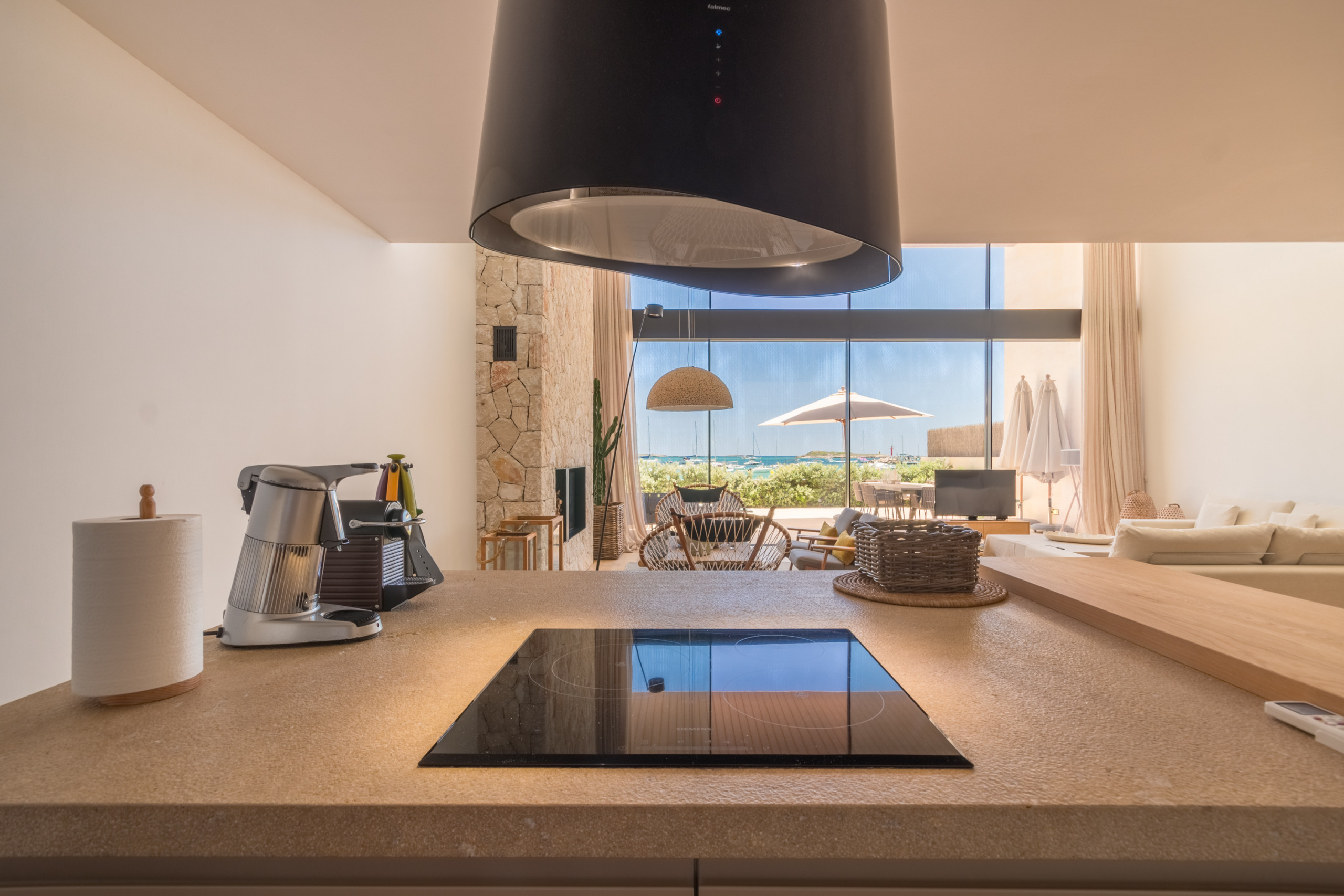 Alojando hasta 8 huéspedes, incluido 1 bebé, la villa cuenta con 4 amplias habitaciones dobles, cada una con su propio baño en suite para una privacidad completa. Distribuida en 2 plantas, los interiores se definen por tonos neutros, materiales naturales y abundante luz, creando una atmósfera cálida y sofisticada. La zona de estar de planta abierta se conecta con una cocina moderna totalmente equipada y se extiende hacia una terraza luminosa amueblada con vistas al mar. La habitación principal destaca por una bañera exenta con vistas al Mediterráneo, mientras que el resto de las habitaciones ofrecen comodidad e individualidad. Las comodidades incluyen aire acondicionado, calefacción por suelo radiante, chimenea, televisión internacional, WiFi, caja fuerte e instalaciones de lavandería. En el exterior, los huéspedes disfrutan de una terraza privada vallada, un balcón y acceso directo a la playa.