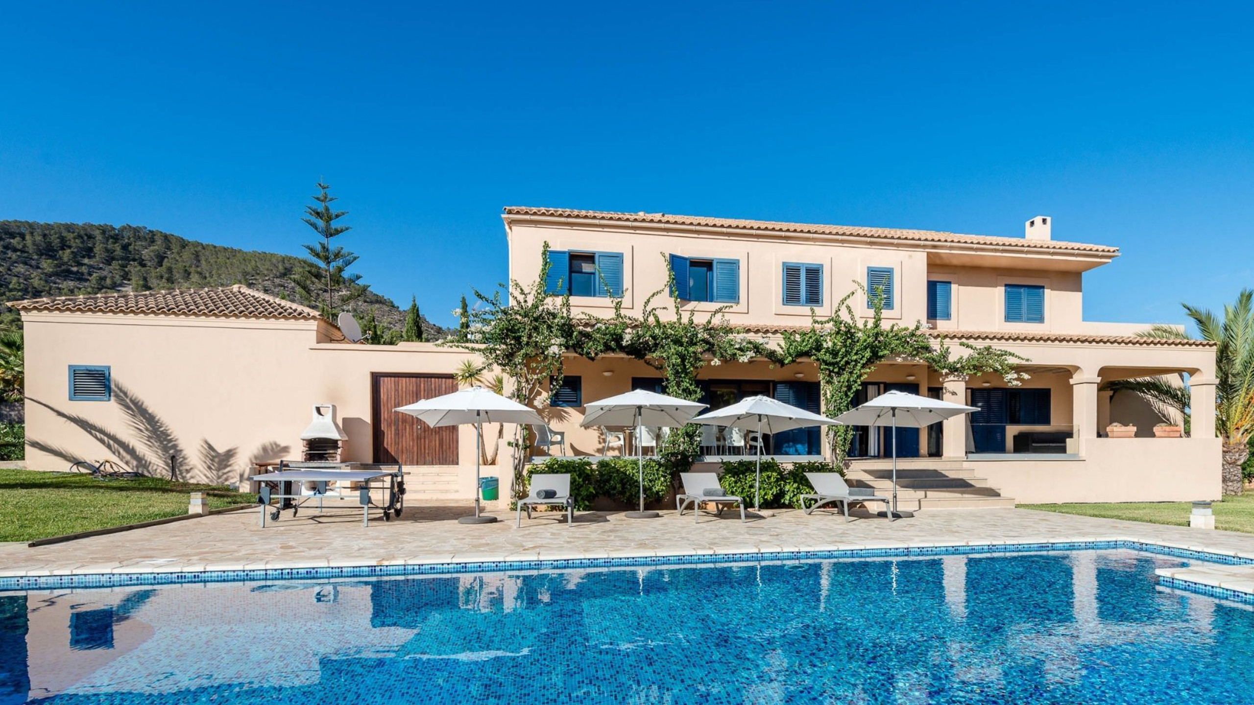 El solárium exterior te ofrece otra opción irresistible para disfrutar al aire libre, ya sea con un cóctel al atardecer o una cena junto a tu piscina privada. Y lo mejor de todo, esta villa única está a un paso de la emocionante ciudad de Ibiza y del mar.