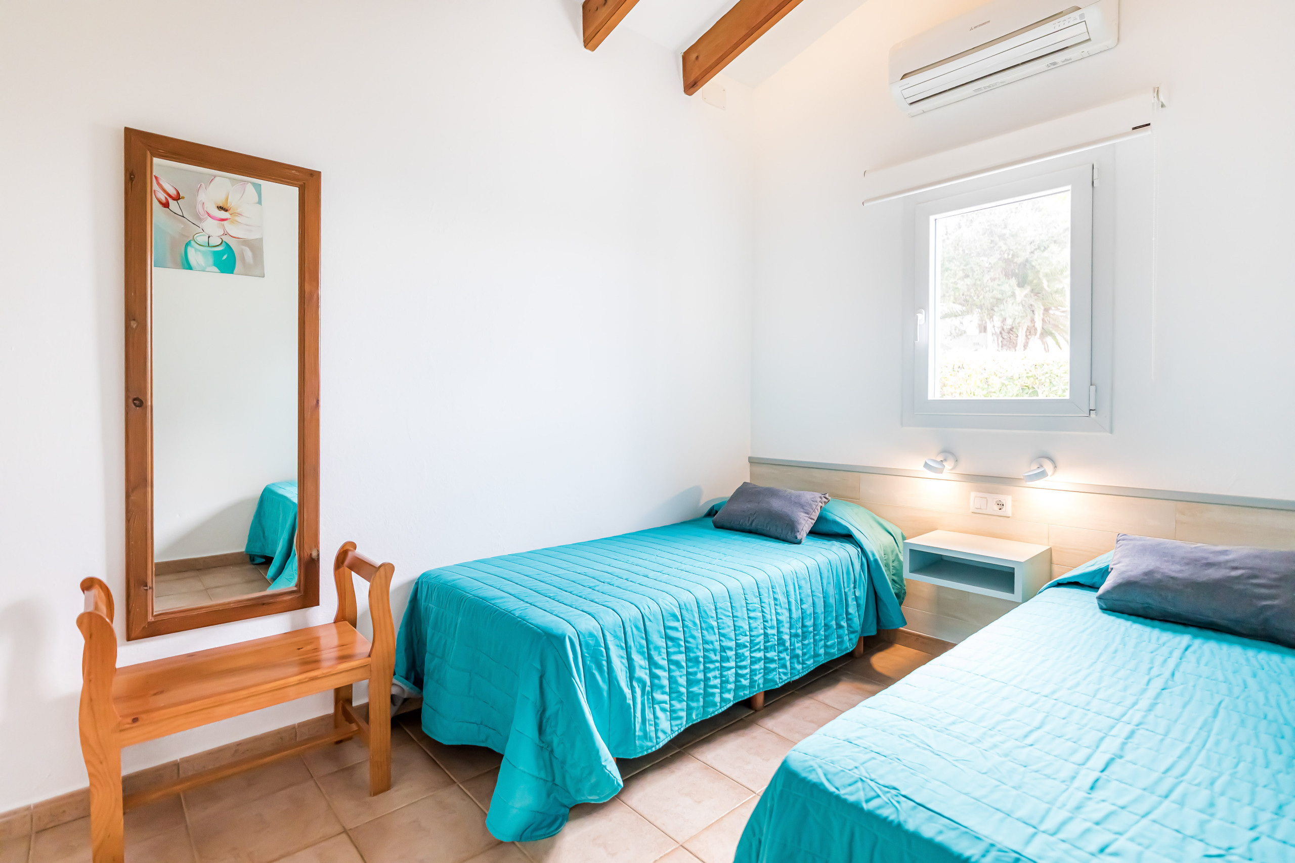 La villa dispone de 3 dormitorios con capacidad para 6 personas, distribuidos en 1 habitación doble y 4 camas individuales. Cuenta con 2 baños, uno con ducha y otro con bañera, lo que garantiza la comodidad de todos los huéspedes. La casa está totalmente equipada con aire acondicionado en los dormitorios, WiFi y una televisión con canales en varios idiomas.