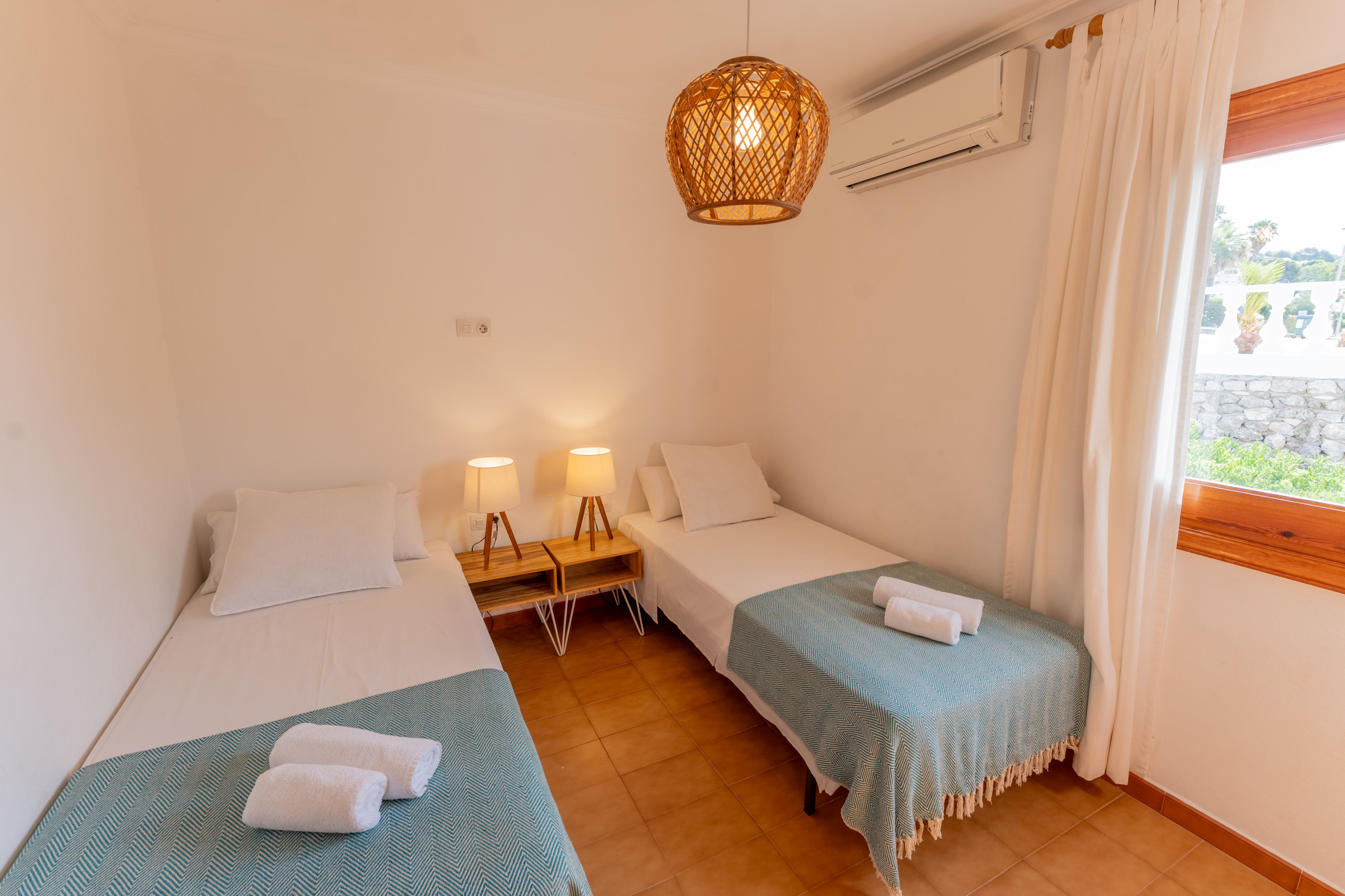 La villa dispone de 5 dormitorios con 7 camas (1 cama doble y 6 individuales), lo que permite una distribución cómoda para grupos familiares. Cada habitación está equipada con aire acondicionado para garantizar el máximo confort durante los días más calurosos.