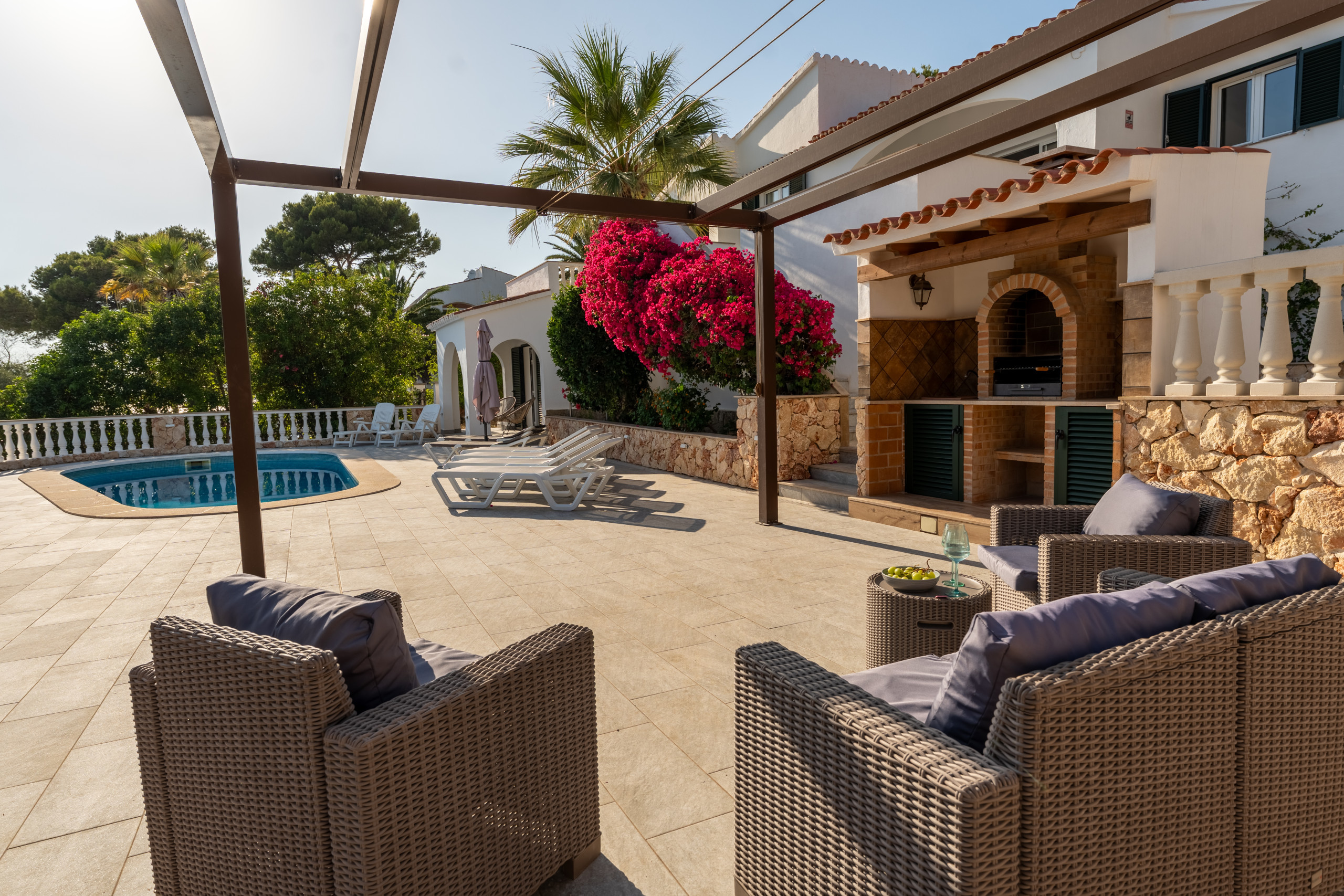 Villa Katarina es un alojamiento perfecto para familias y parejas que buscan unas vacaciones tranquilas cerca del mar en Son Bou, Menorca. Esta luminosa villa está ubicada a solo 1000 metros de la playa de arena, ofreciendo una experiencia incomparable.