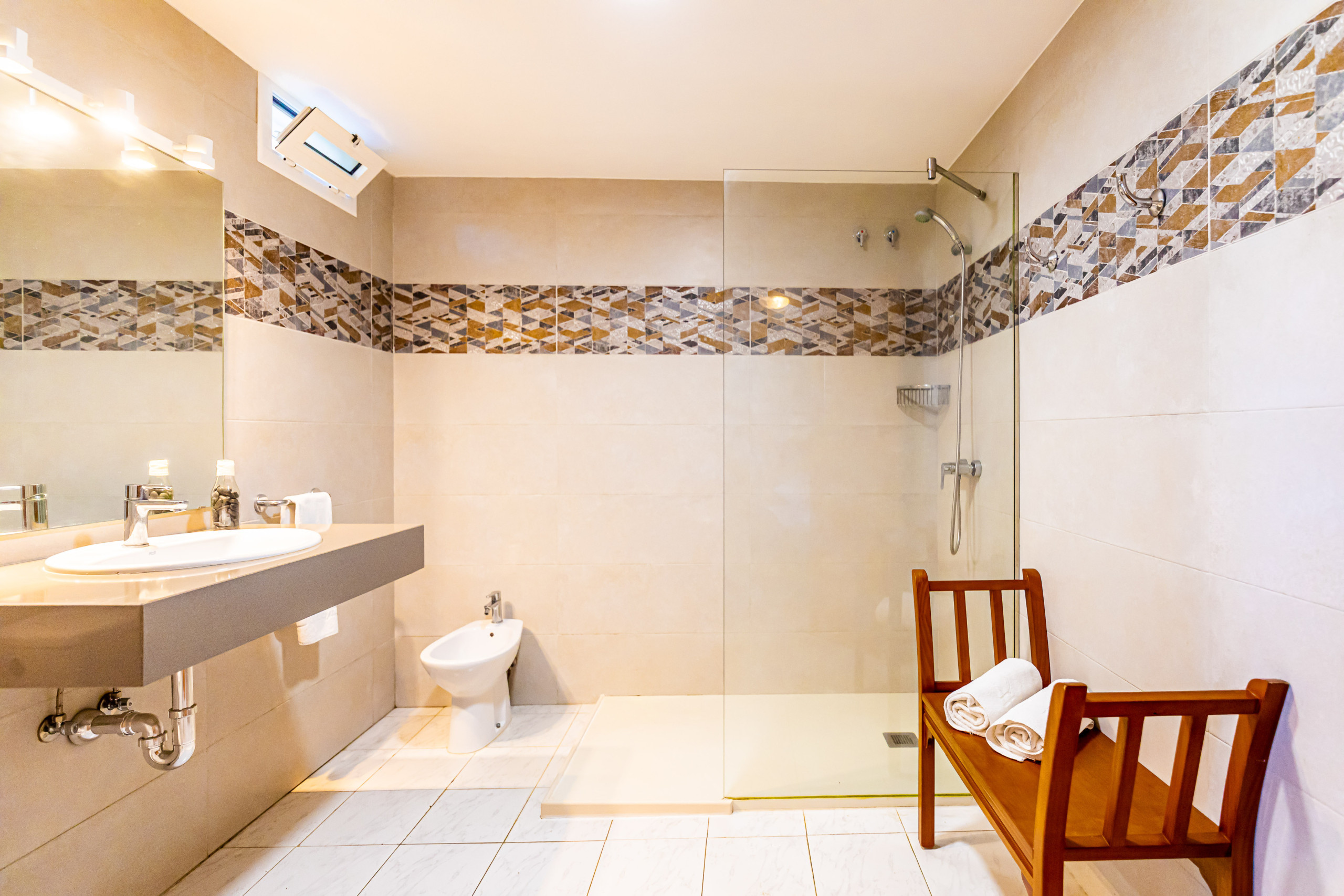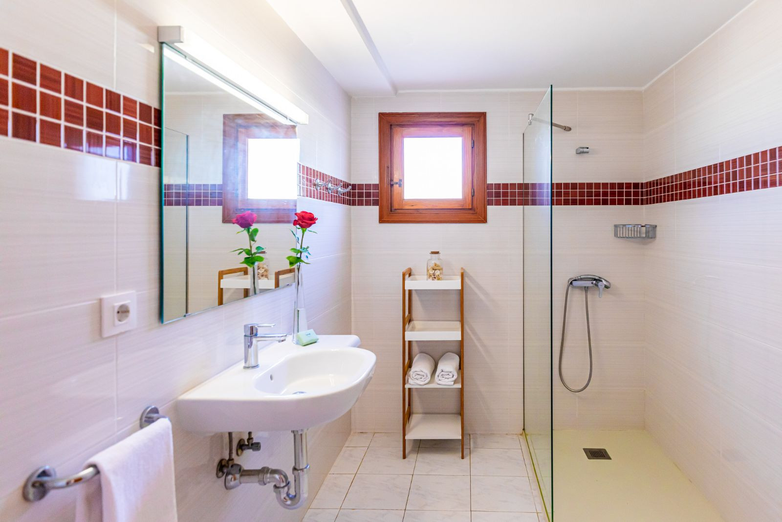 2. En la planta inferior hay un dormitorio doble y un dormitorio con dos camas individuales y un baño independiente (bañera y ducha independientes) compartido entre los dos dormitorios.