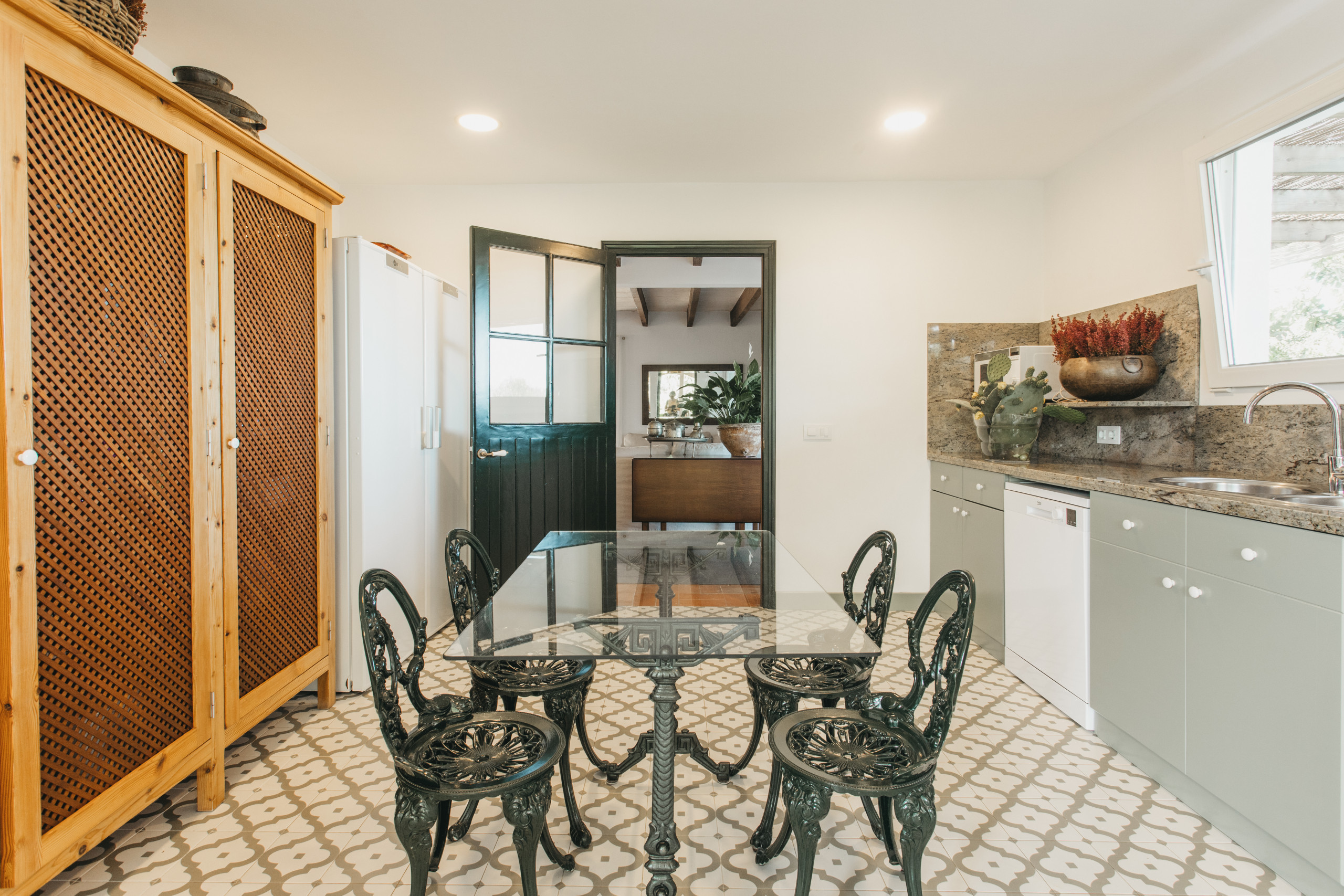 L'intérieur est équipé de tous les équipements modernes : WiFi haut débit, télévision, fer à repasser, cheminée pour les soirées fraîches et une cuisine entièrement équipée avec des appareils dernier cri. On y trouve notamment un lave-linge, un sèche-linge, un four, un micro-ondes, une cafetière et une large variété d'ustensiles de cuisine qui faciliteront la préparation de délicieux repas.