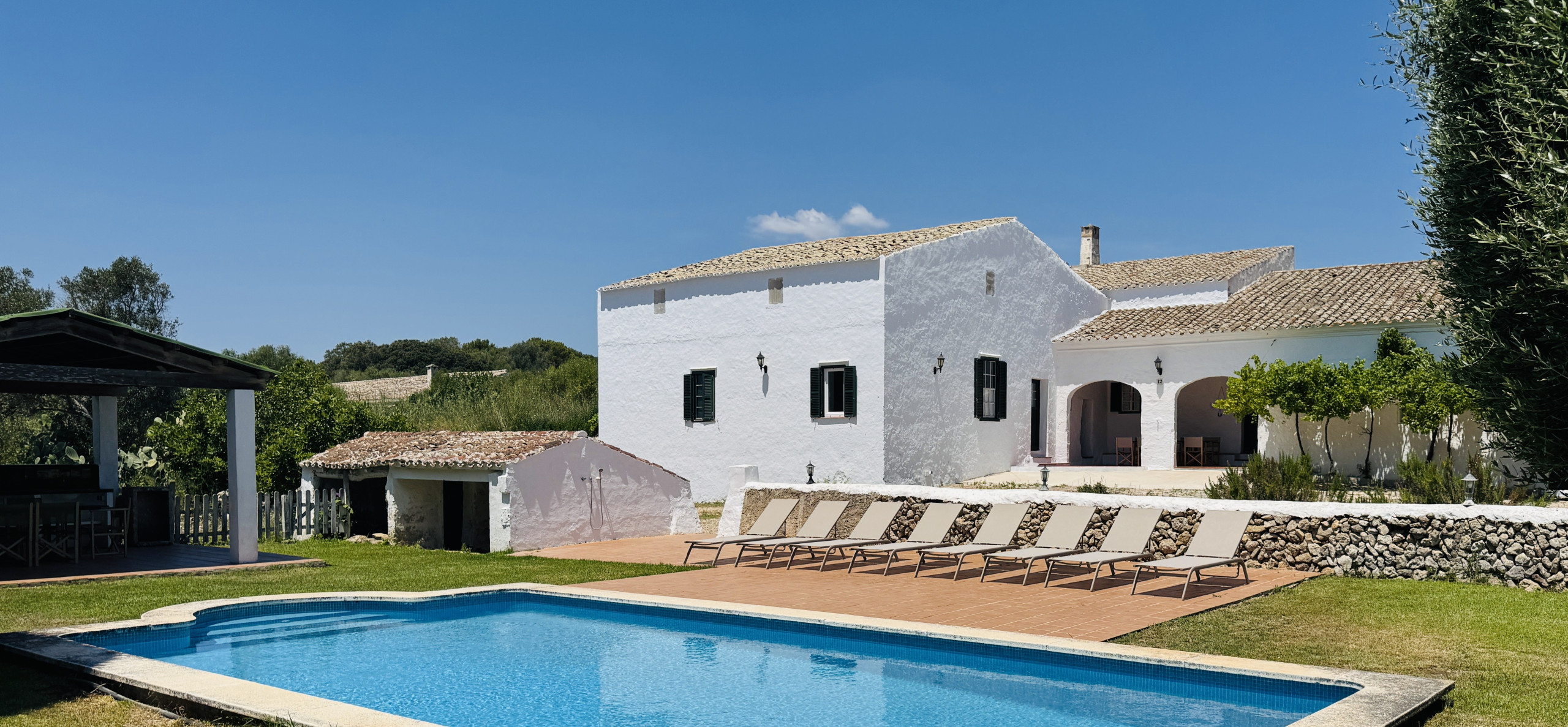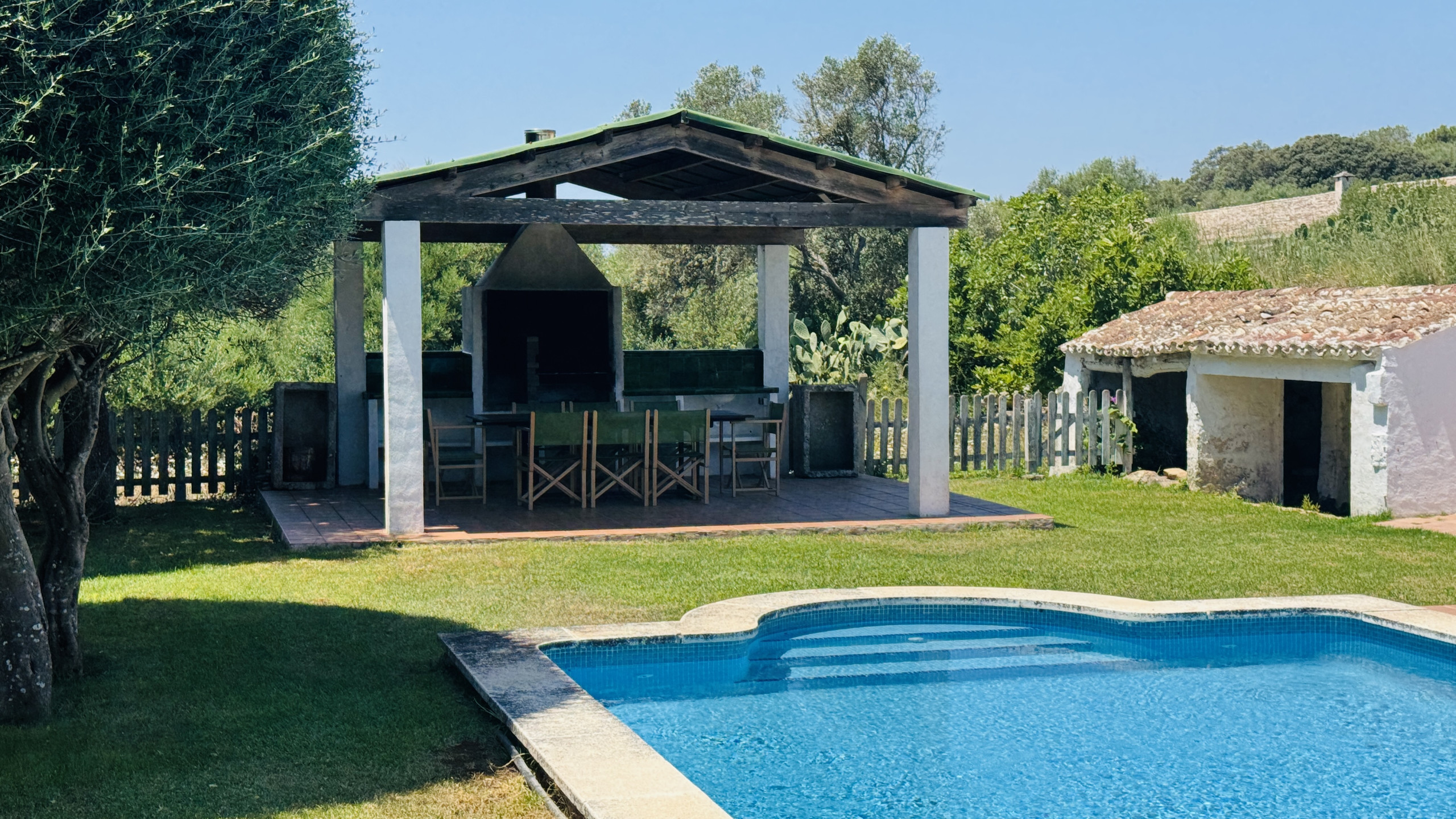 Les maisons de la propriété ont été rénovées en conservant les caractéristiques typiques (sols en "terre", poutres apparentes, murs anciens, etc.) et en intégrant les commodités nécessaires à la vie moderne. On accède à la maison depuis la route par un chemin de terre de 200 m parfaitement praticable. Leur emplacement au sommet d'une colline permet de profiter d'une vue exceptionnelle sur la campagne minorquine et les forêts de pins. La propriété dispose d'une piscine (9m x 4m et escaliers romains) entourée d'une zone clôturée avec pelouse où les enfants peuvent jouer. Il y a également une pergola avec barbecue en maçonnerie, table et chaises pour manger à l'ombre. Le silence, la confidentialité et la tranquillité de cette propriété sont garantis car il n'y a pas de voisins.
