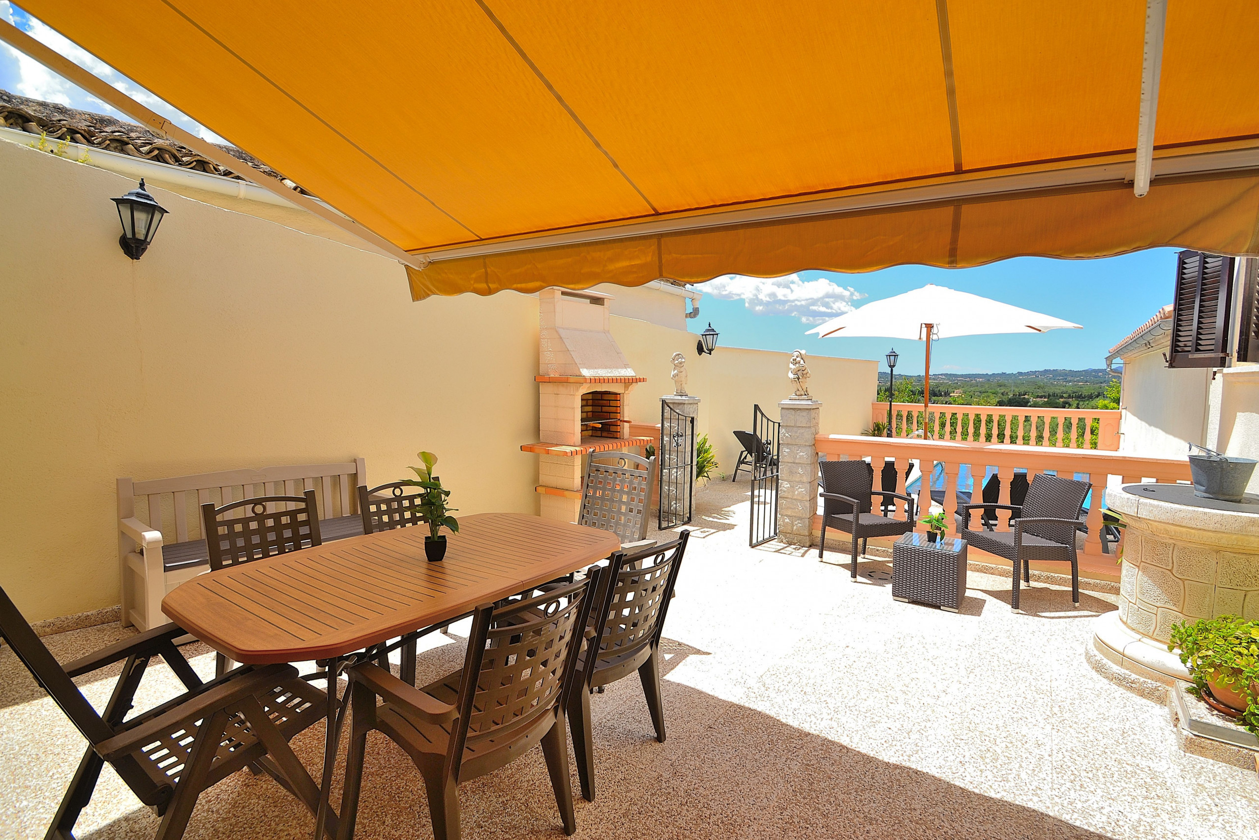 Il y a une salle de bain au rez-de-chaussée et depuis la salle à manger, on a un accès direct à la belle cour. Ici, vous trouverez une autre zone de repas et un barbecue pour les soirées sociales. De plus, vous accédez à la piscine de 10 mètres carrés, des transats sont déjà prêts pour vous. Profitez de la vue spectaculaire sur la campagne jusqu'à la Sierra de Tramuntana. Pour les familles avec de jeunes enfants, il est à noter que la zone de la piscine peut être fermée.
