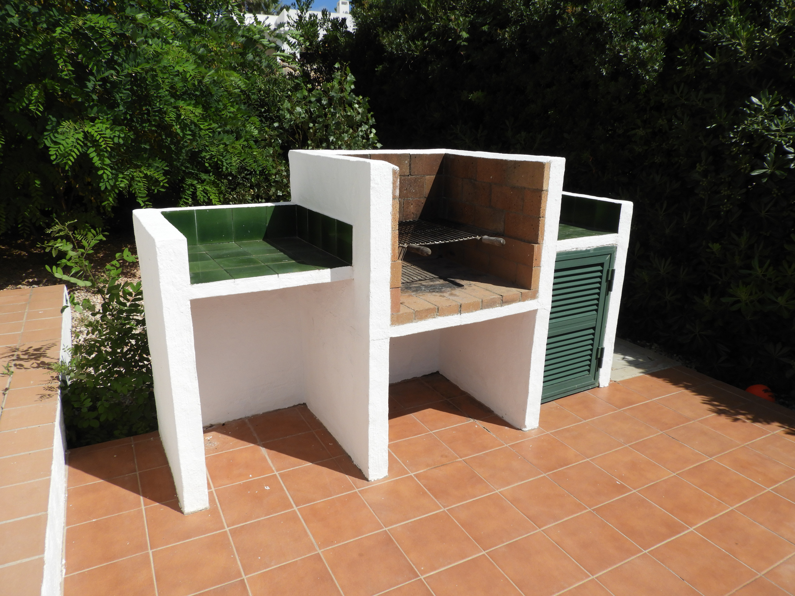 La maison dispose d'une terrasse avec une table et des chaises pour manger en plein air et des canapés pour se détendre à l'ombre. Elle possède une zone d'herbe artificielle avec de la végétation locale et la piscine, de 7m x 3m, est entourée d'un sol de terrasse. Il y a un barbecue en maçonnerie et un porche pour se garer à l'ombre.