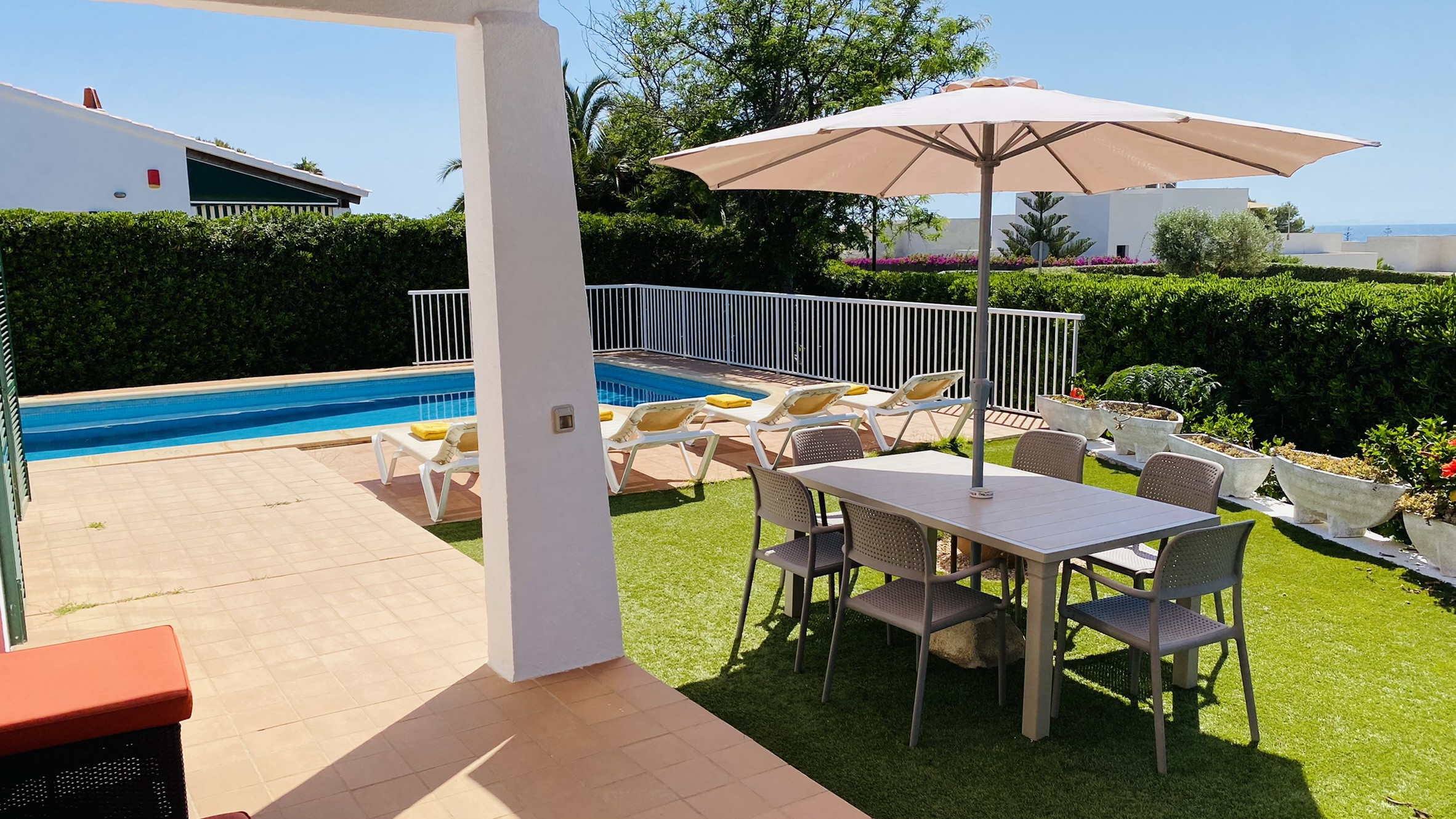 La villa admet les animaux de compagnie (maximum 1) et est préparée pour que vous profitiez de vacances uniques à Minorque. Elle dispose d'un parking privé pour 2 véhicules et du WiFi pour vous maintenir connecté. Votre maison parfaite vous attend à Binibeca !