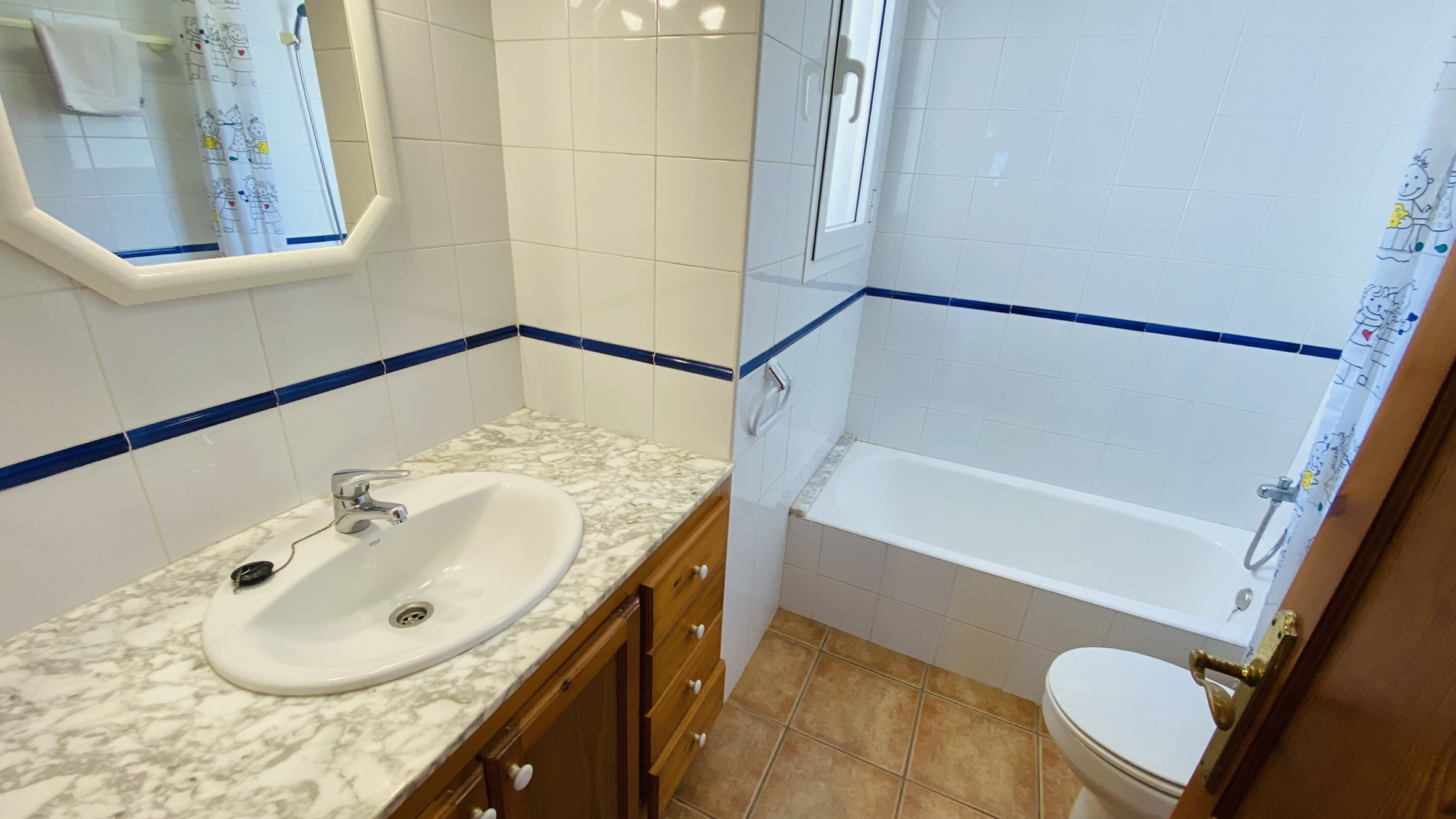 La villa dispose de 3 chambres entièrement équipées : une chambre principale avec un lit double et deux chambres supplémentaires avec des lits individuels, garantissant un repos réparateur pour tous les invités. Elle comprend 3 salles de bains, deux avec baignoire et une avec douche, ce qui facilite la routine quotidienne des visiteurs.