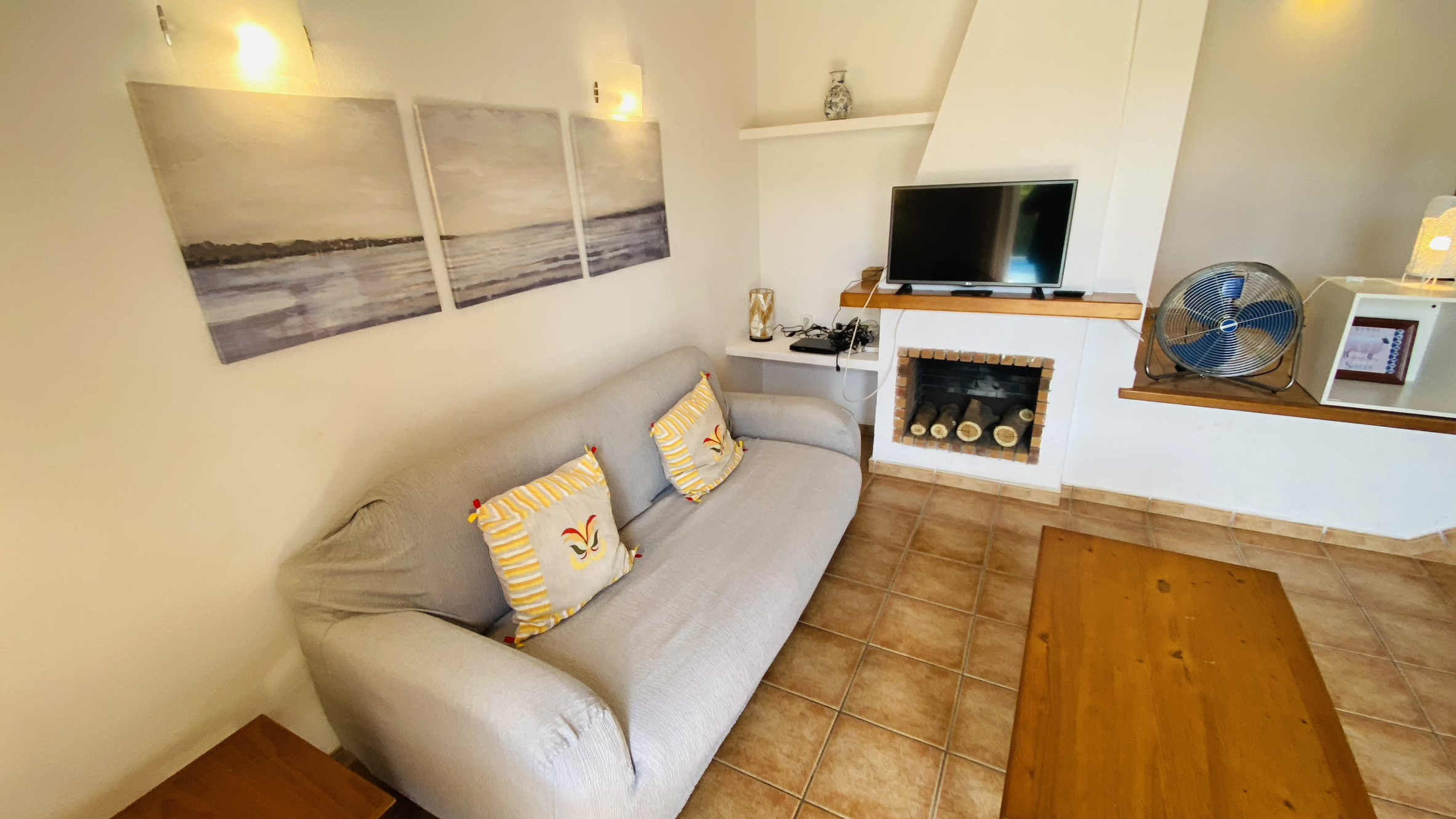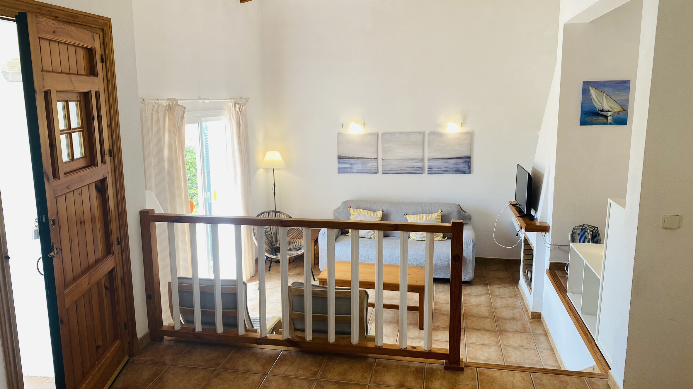 La maison a été décorée avec des meubles confortables en bois de pin et toutes les pièces se trouvent sur un seul niveau : salon/salle à manger, cuisine, buanderie, 1 chambre principale avec salle de bain complète attenante, 2 chambres doubles et 1 salle de bain complète.