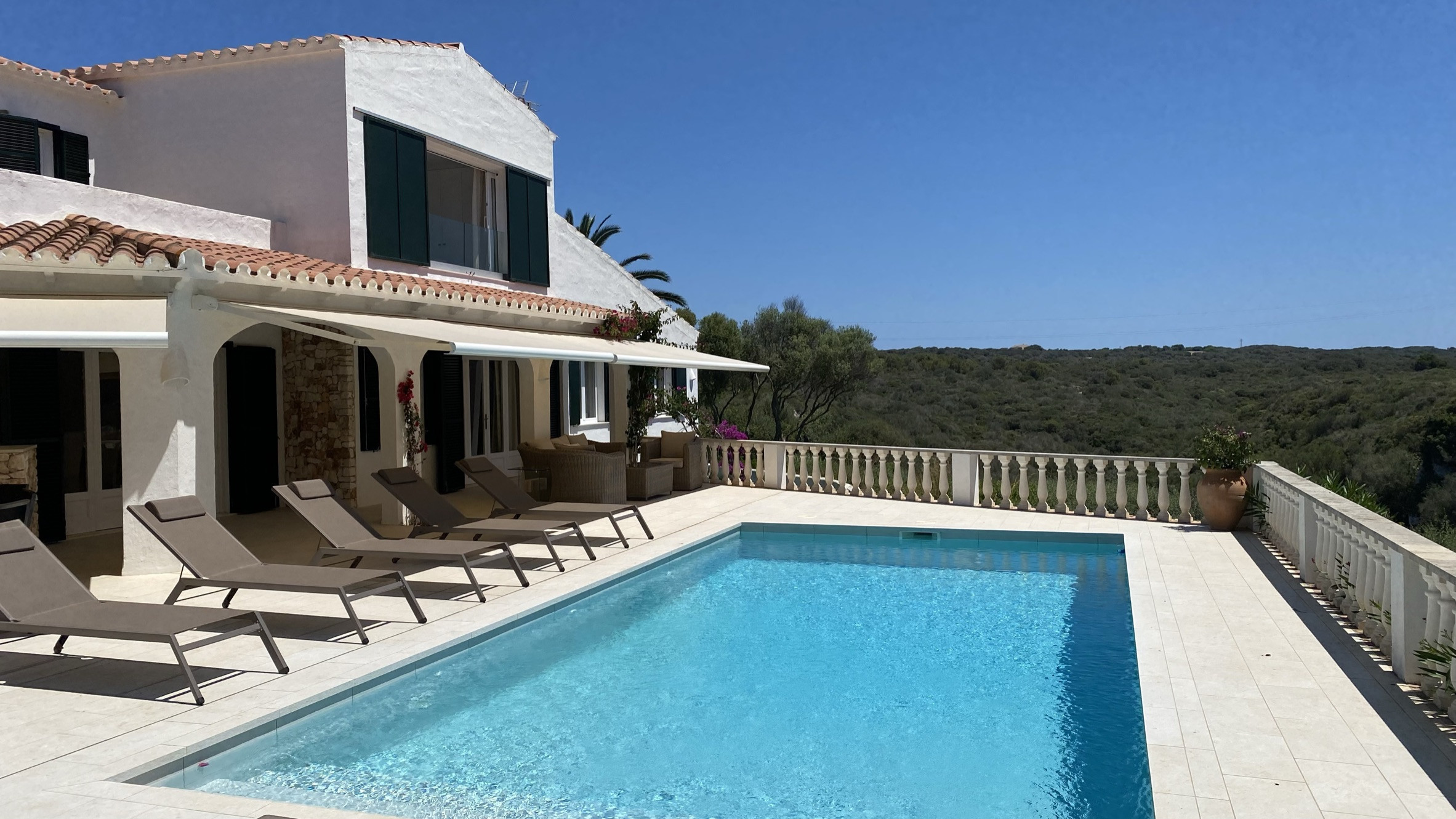 Villa Hermitage se trouve dans l'urbanisation de Binissafuller, à 2 minutes à pied de la plage, où vous trouverez également deux bars/restaurants. Les autres plages du sud-est (Binidalí, Binibeca, Punta Prima, Alcaufar) ainsi que la localité de San Luis, où vous trouverez tous types de services, sont à environ 10 minutes en voiture. La capitale, Mahón, avec son port naturel, est à moins de 15 minutes de route.