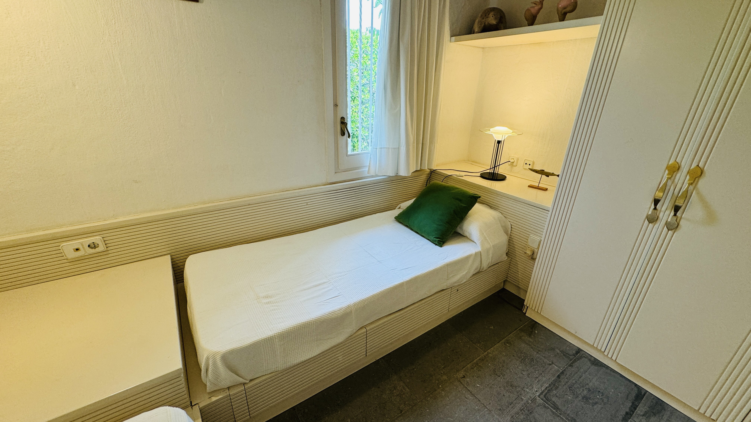Le niveau inférieur ou sous-sol est doté d'1 chambre double avec salle de bain et douche. Cette chambre est appropriée pour le service ou pour des enfants, car cet espace n'est pas au niveau de qualité des espaces du niveau principal. Cette chambre n'a pas de climatisation mais dispose d'un ventilateur portable.