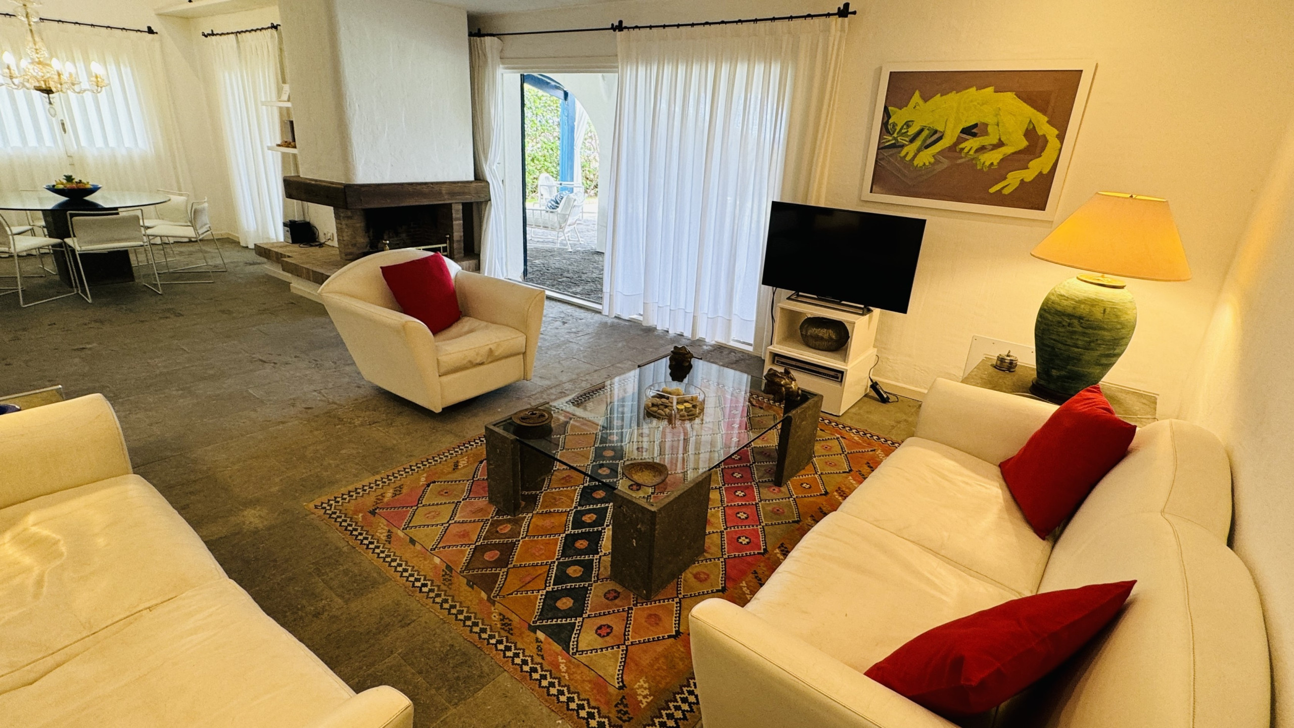 Profitez des espaces communs entièrement équipés, comprenant une cuisine indépendante avec des appareils électroménagers modernes tels que lave-vaisselle, four, micro-ondes et machine à café. La villa dispose du WiFi, de la télévision et de détails spéciaux comme une cheminée et un fer à repasser pour rendre votre séjour plus agréable.
