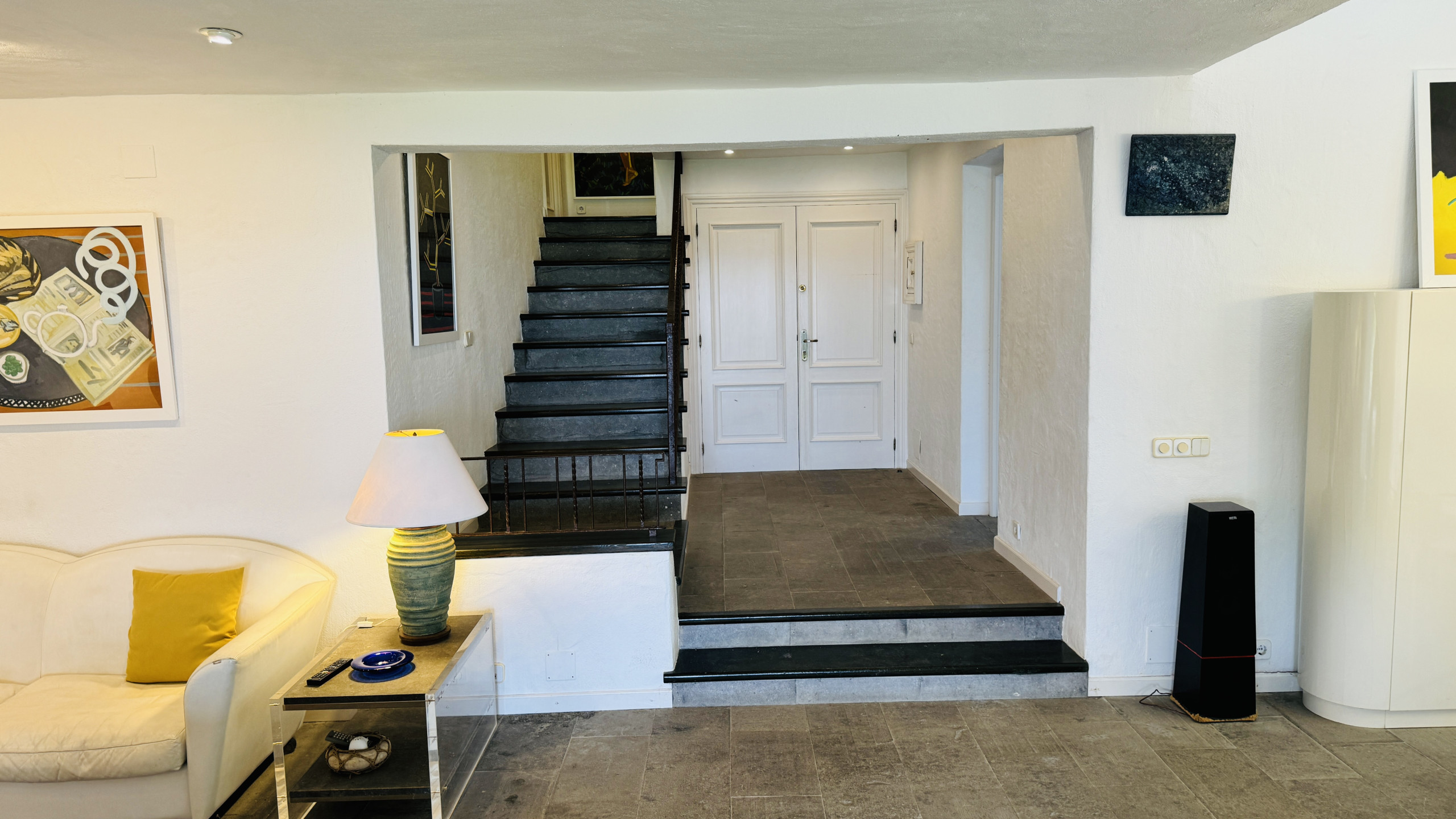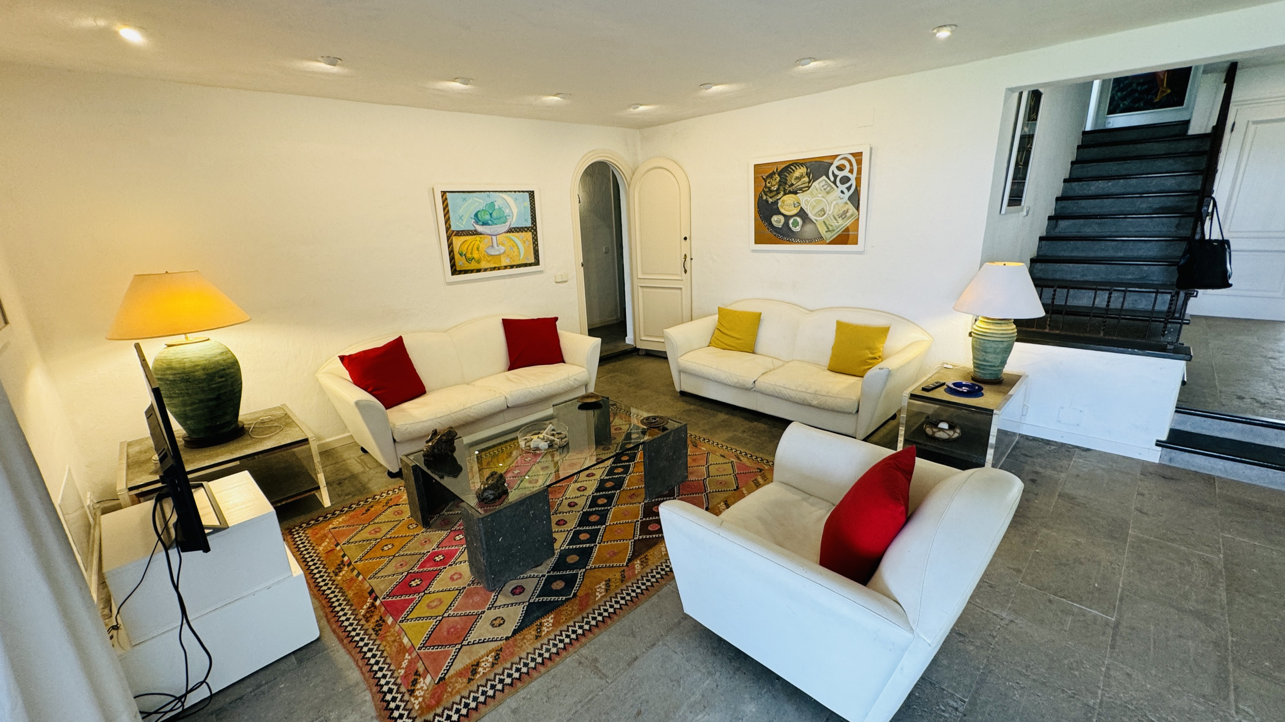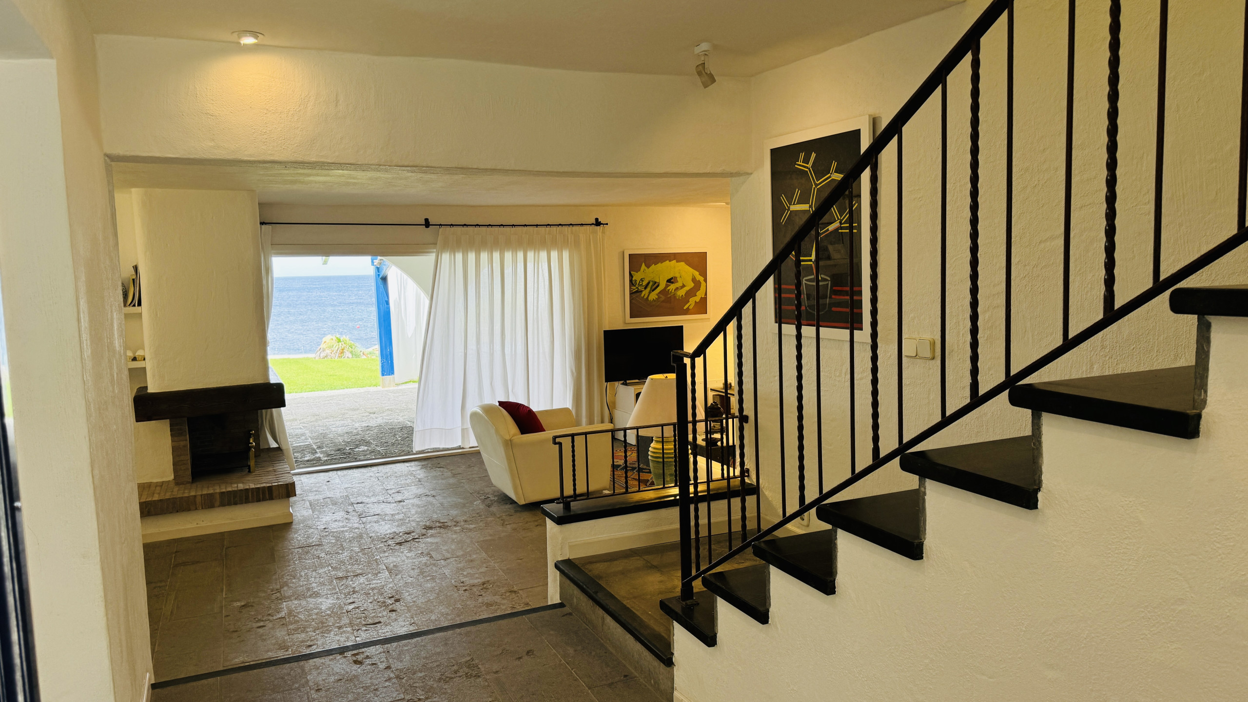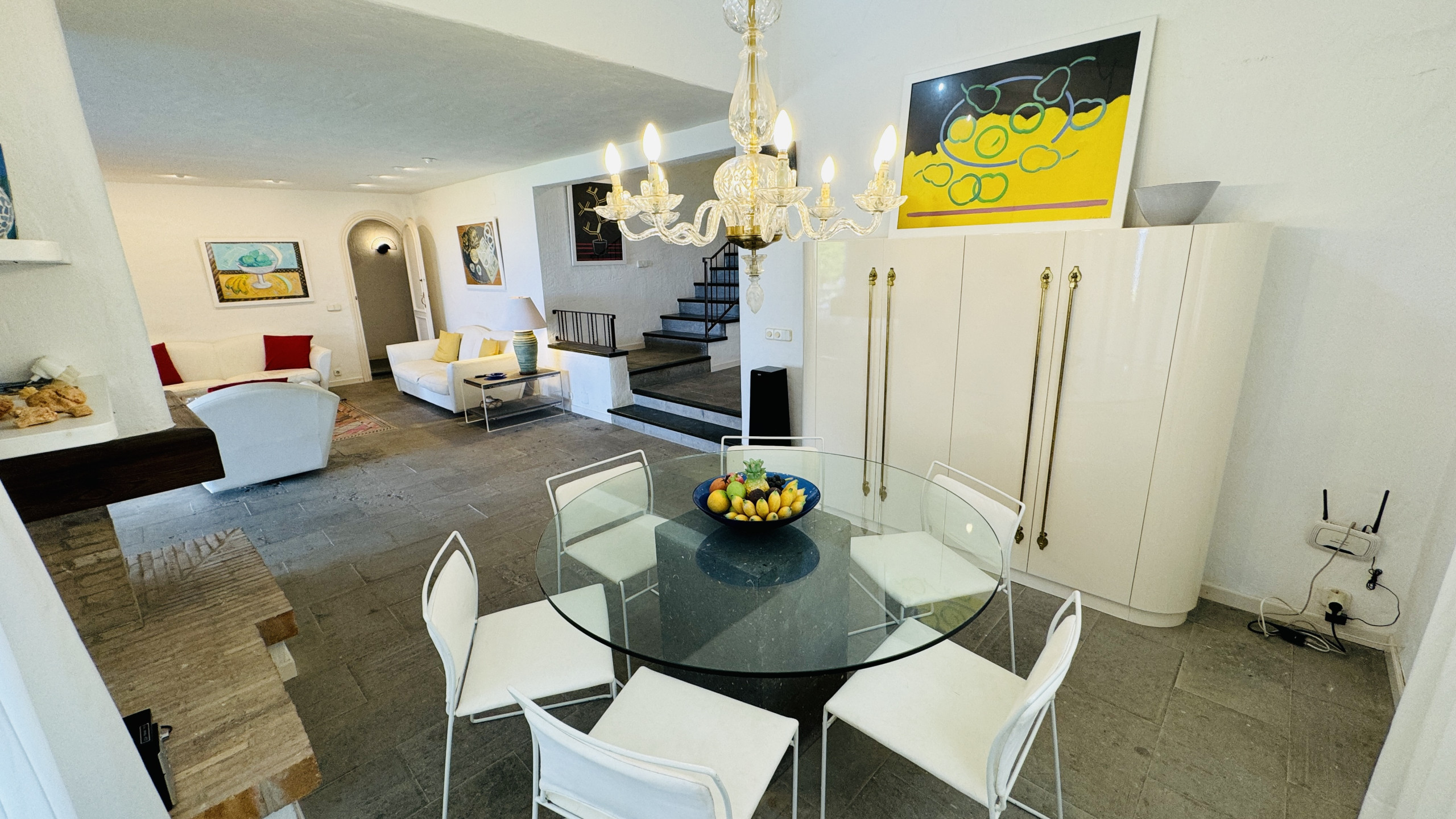 Pratiquement toute la maison se trouve sur un seul niveau avec vue sur la mer, lumière naturelle et dispose de la climatisation dans toutes les pièces du niveau principal. Depuis le salon/salle à manger, ouvert sur la cuisine, on accède d'un côté à 1 grande chambre principale de mariage avec dressing et salle de bain attenante avec baignoire de design indépendant et douche. De l'autre côté de la maison se trouvent 2 chambres doubles et 2 salles de bain avec douche.