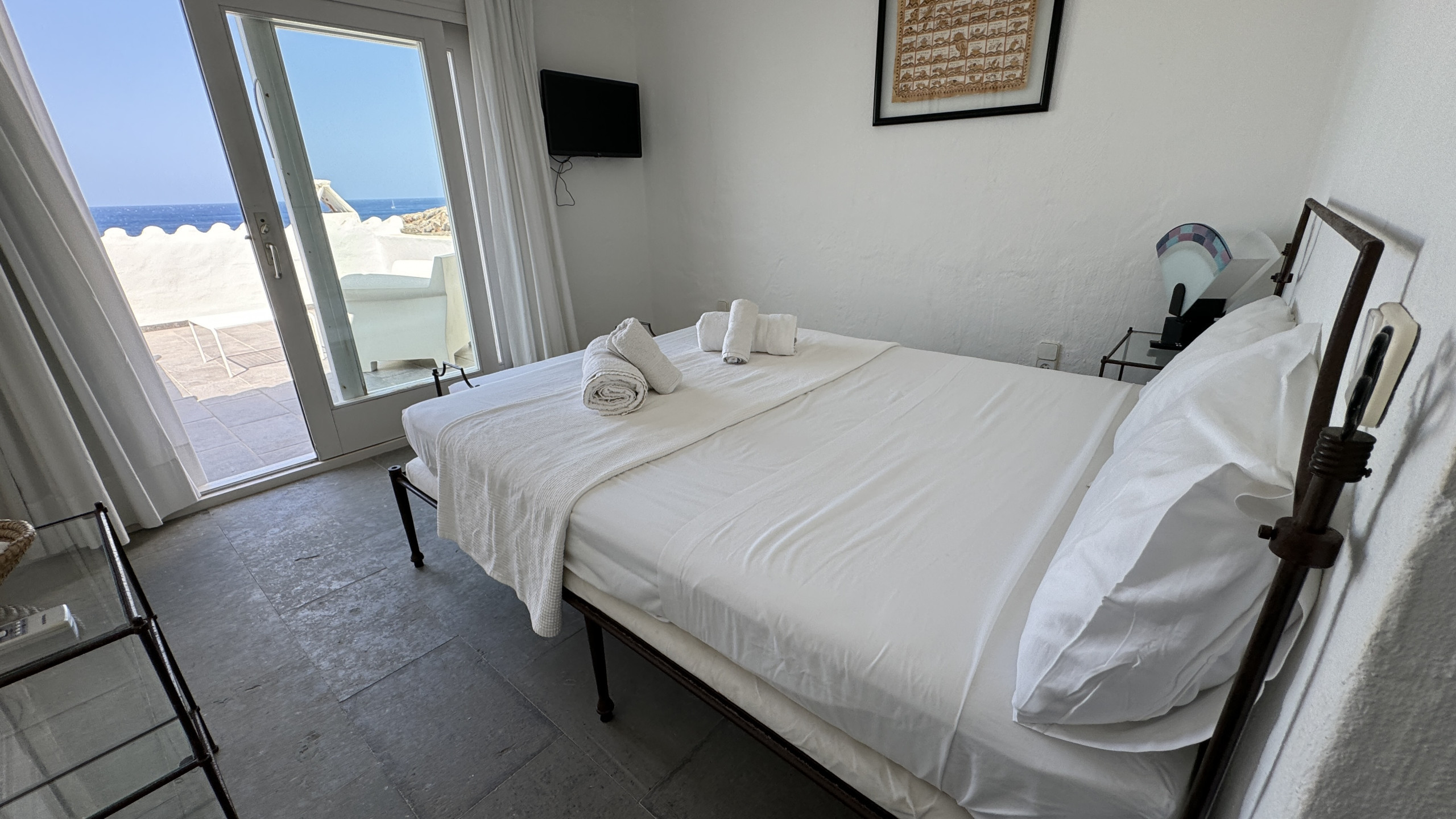 Premier étage : 1 chambre principale avec climatisation et de magnifiques vues sur la mer avec lit double, 1 salle de bain attenante avec douche et terrasse avec vue sur la mer.
